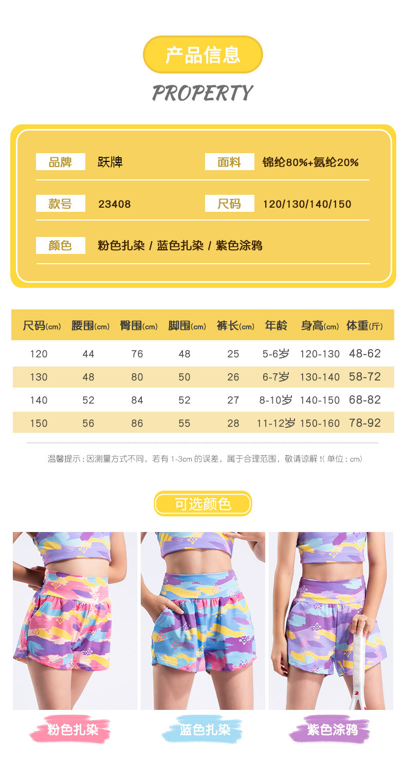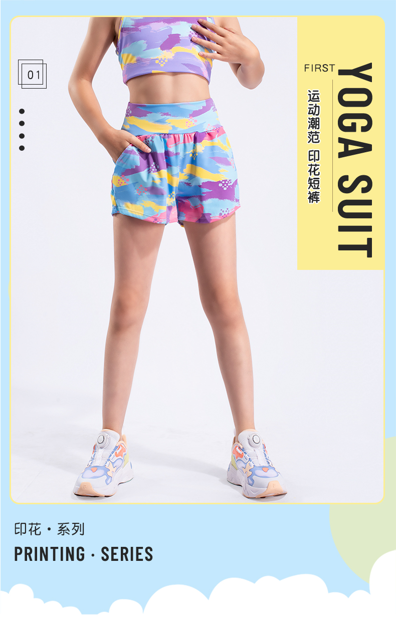 跃牌【欲动春风】儿童系列 新品瑜伽运动休闲健身舞蹈带口袋短裤23408