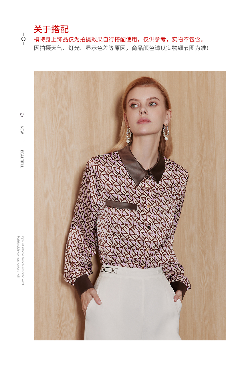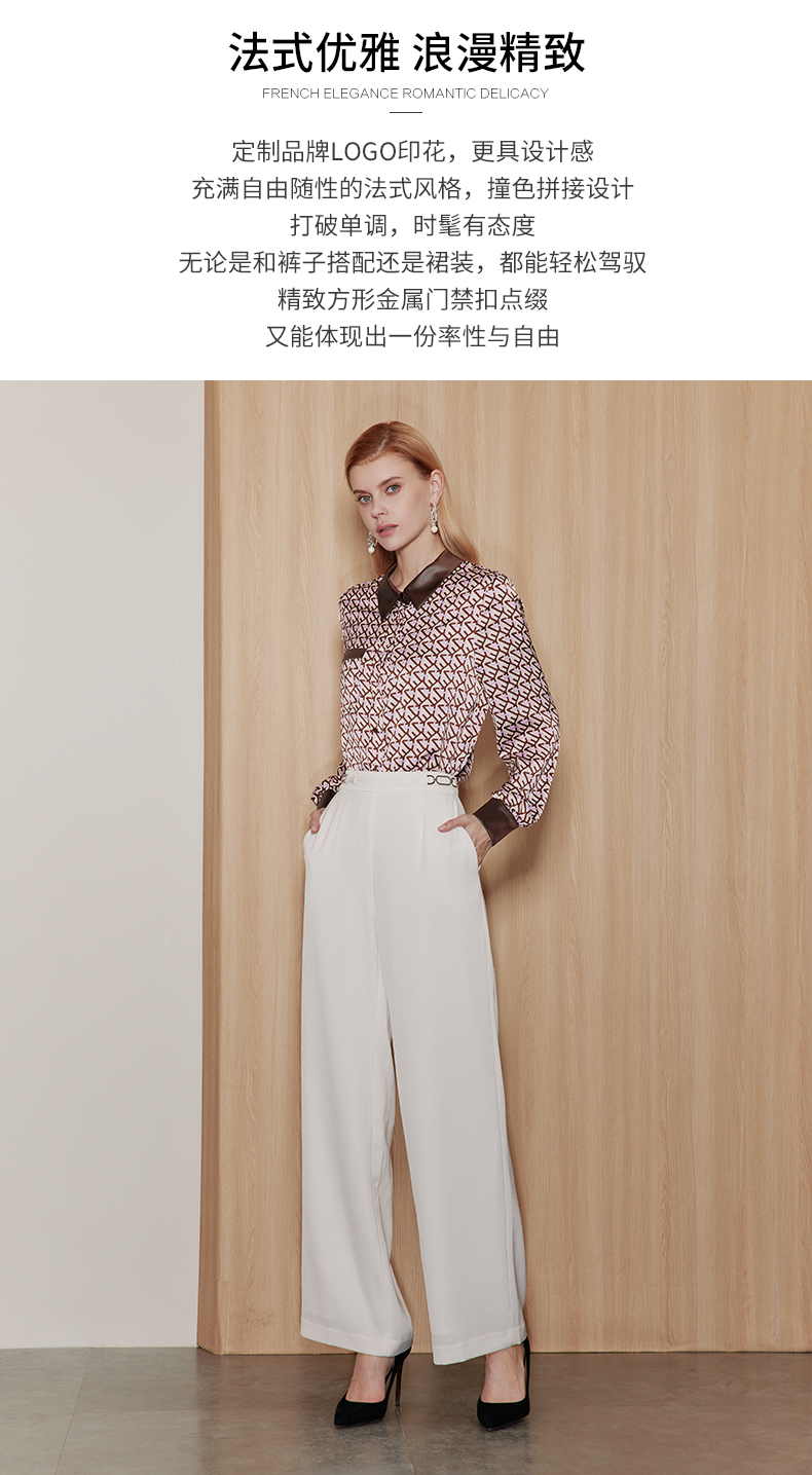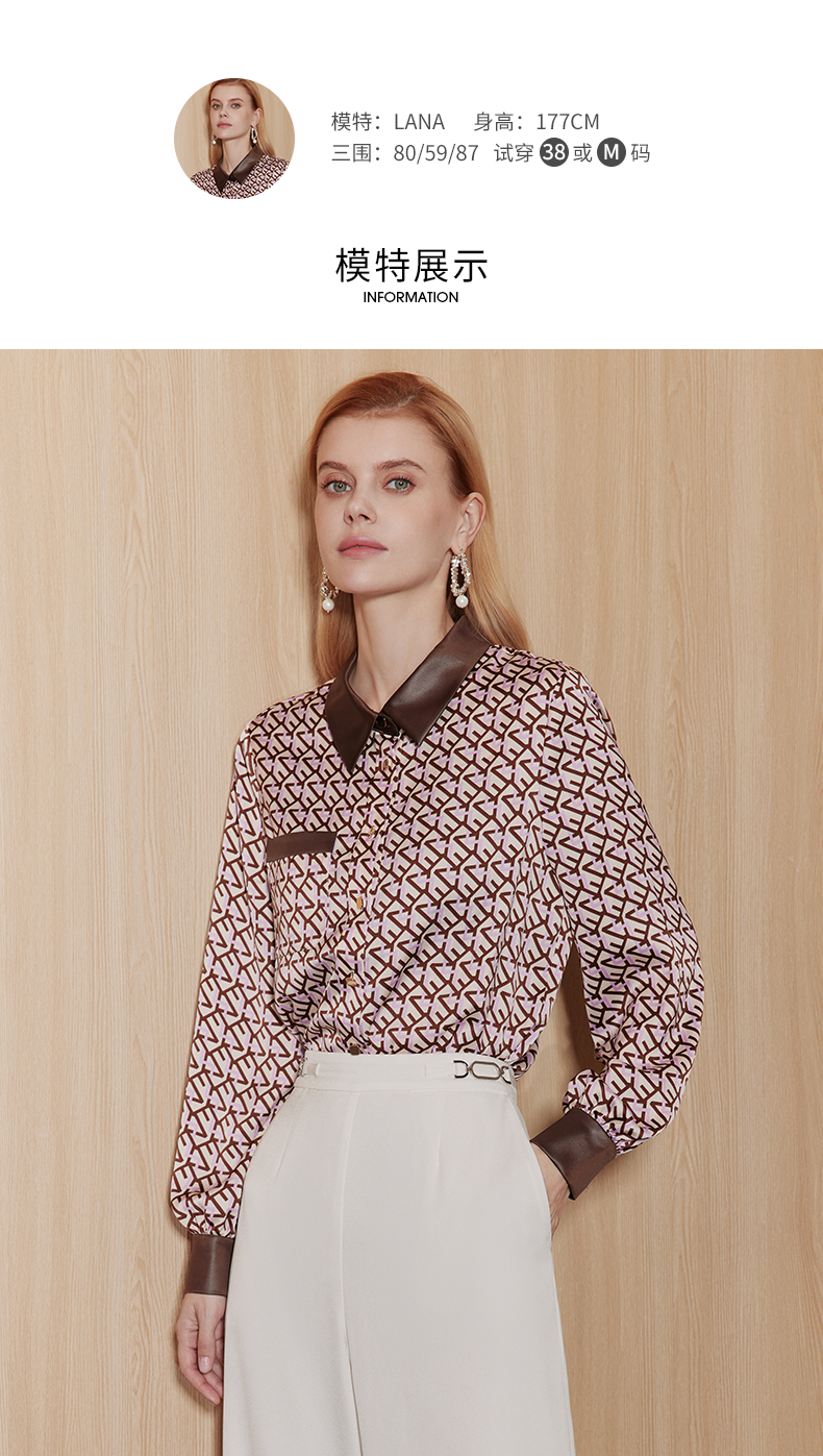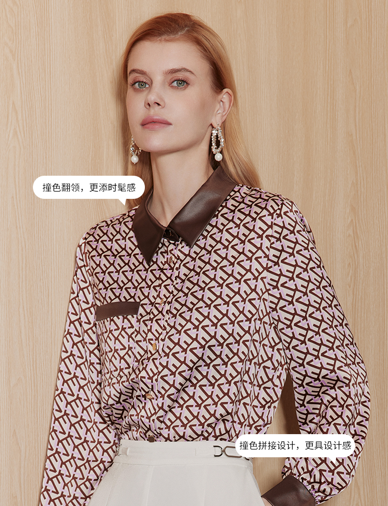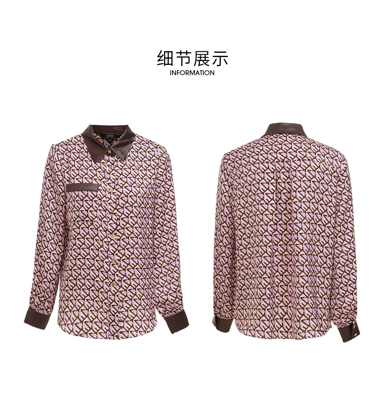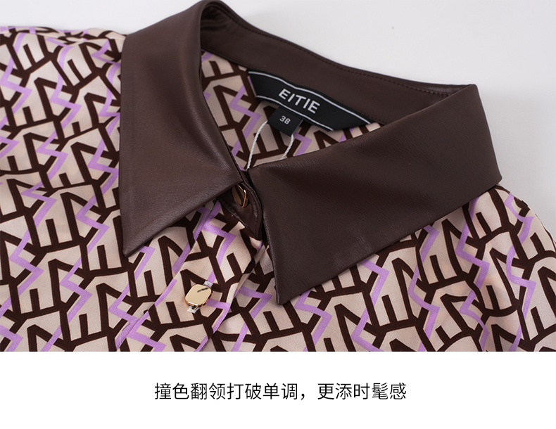 EITIE爱特爱秋季新款修身显瘦百搭印花衬衣上衣7109814