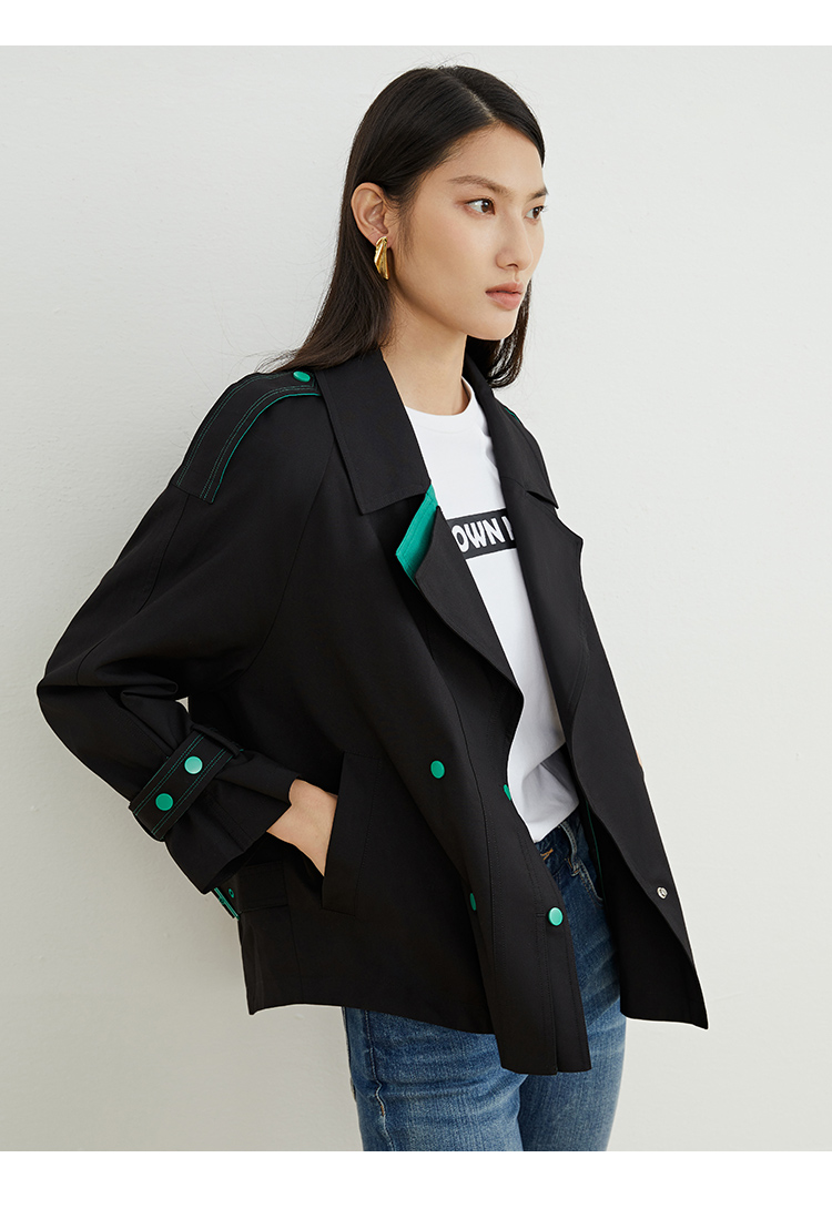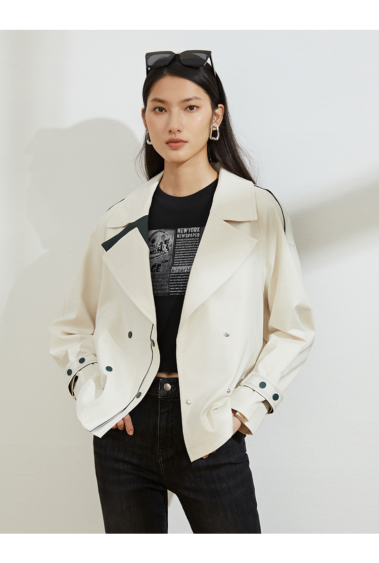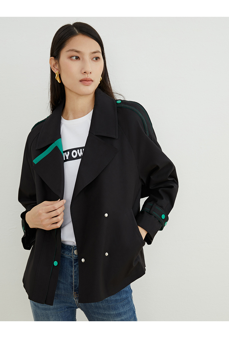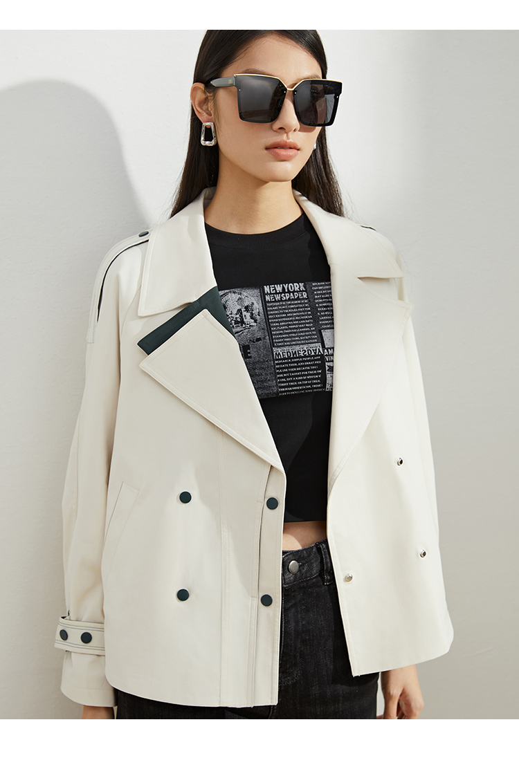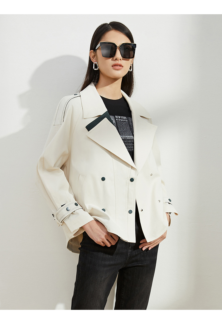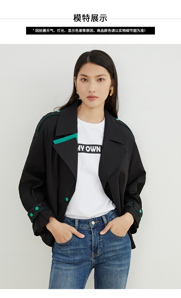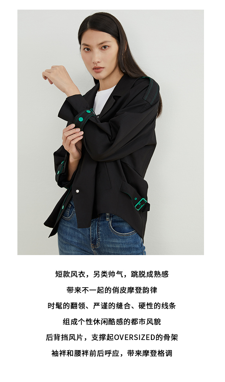 VIMAGE/纬漫纪秋款新款翻领宽松风衣外套VC2204008