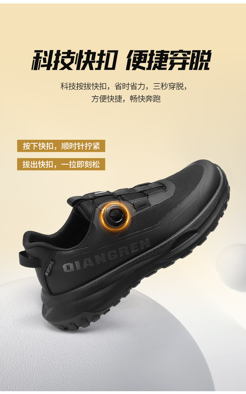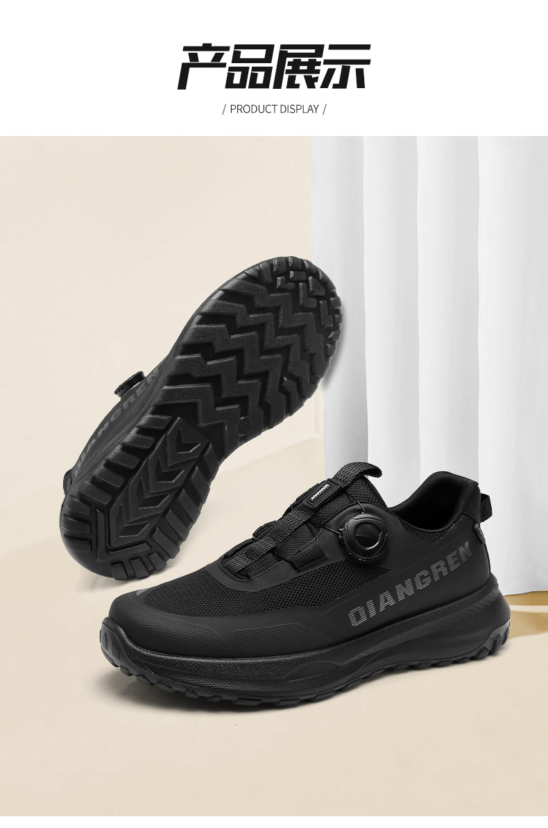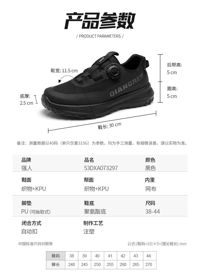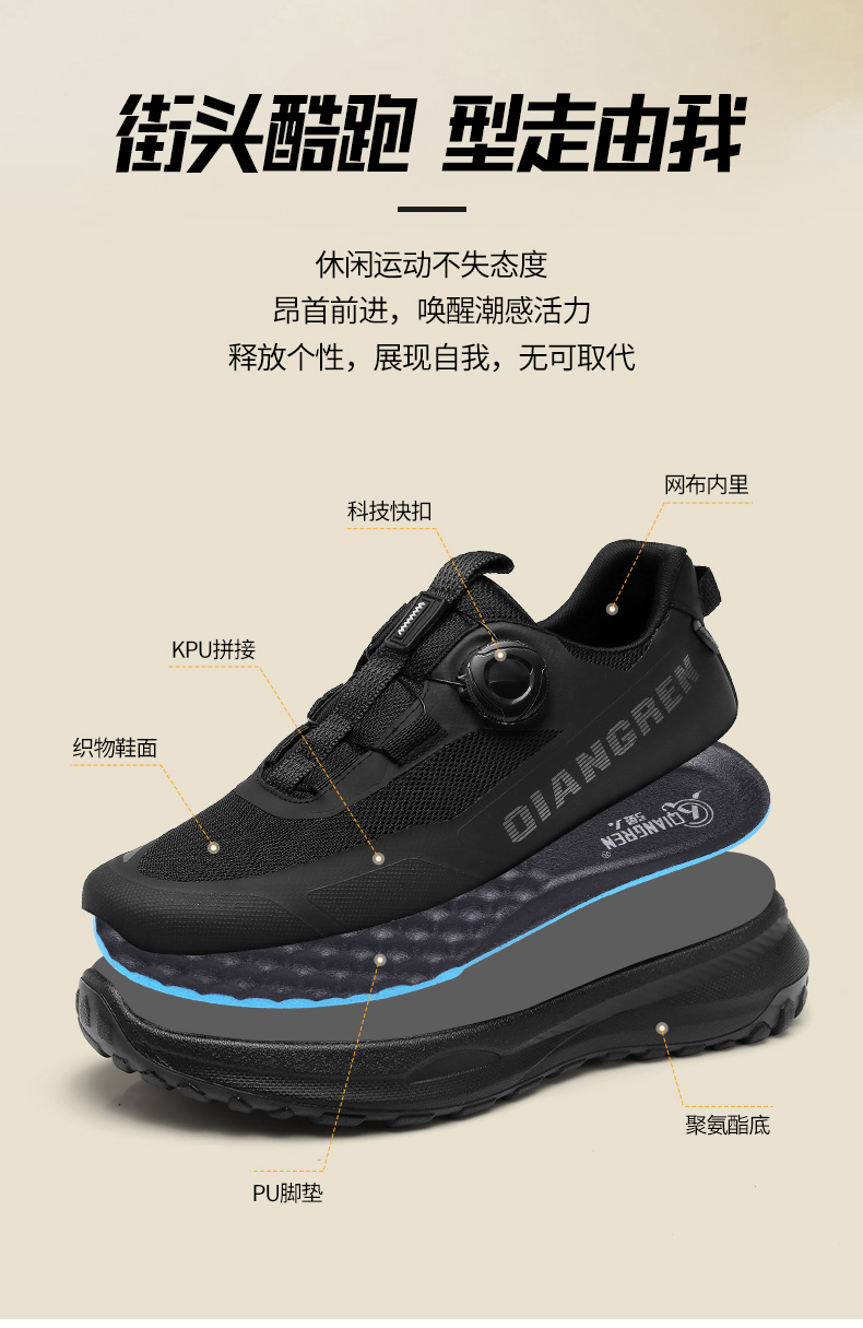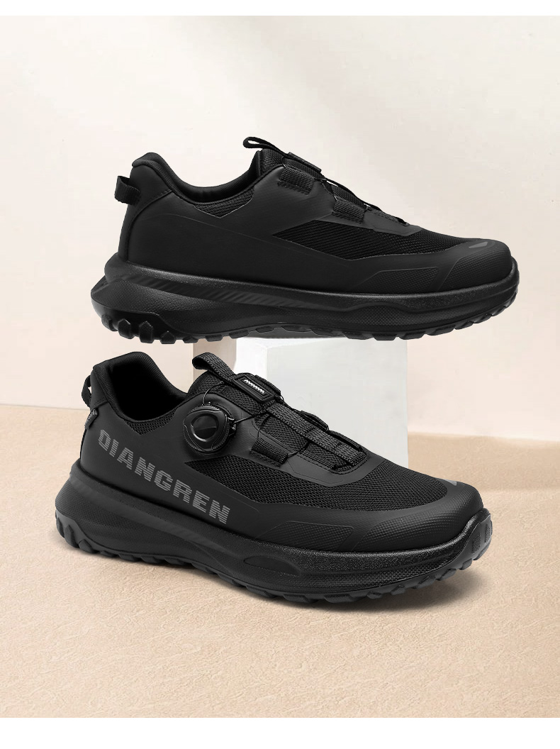 强人3515运动休闲鞋男款户外登山鞋黑色通勤鞋厚底百搭潮流旋转扣
