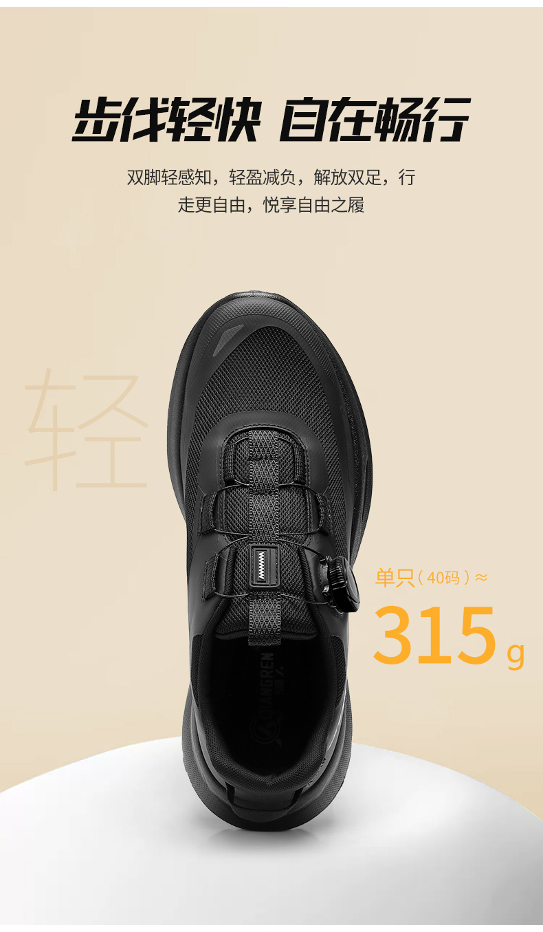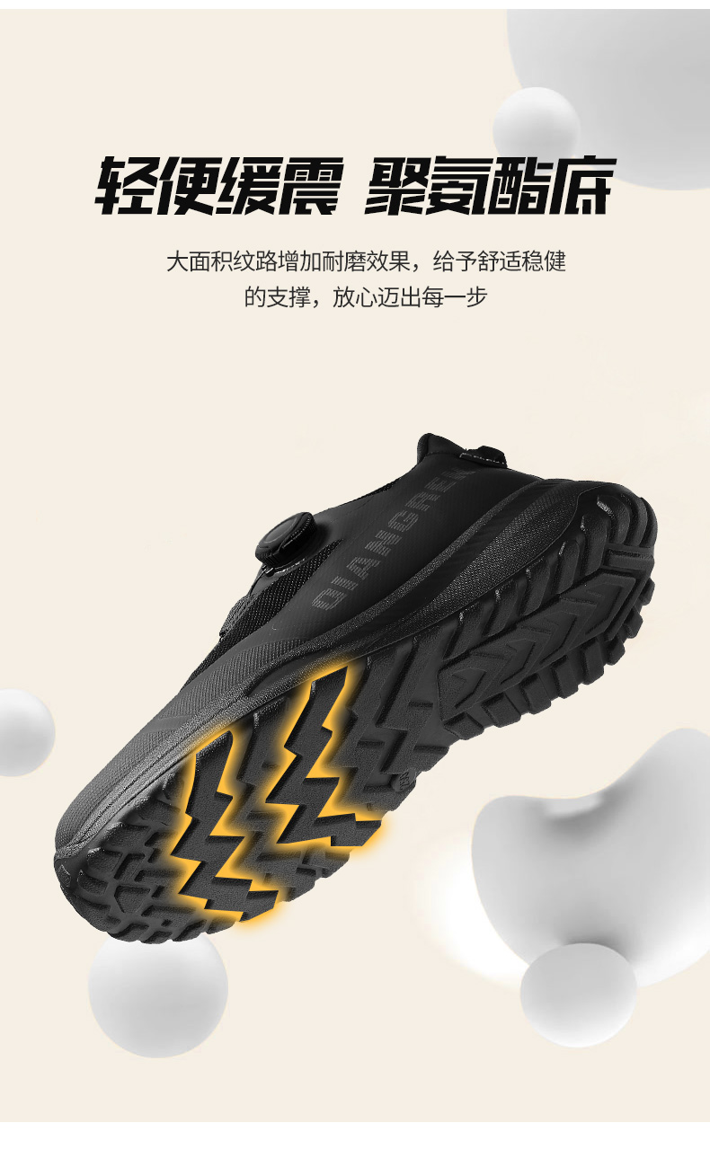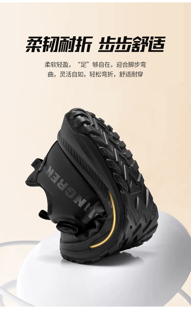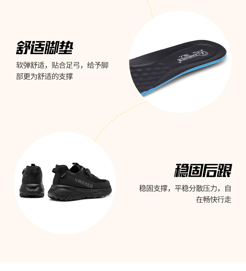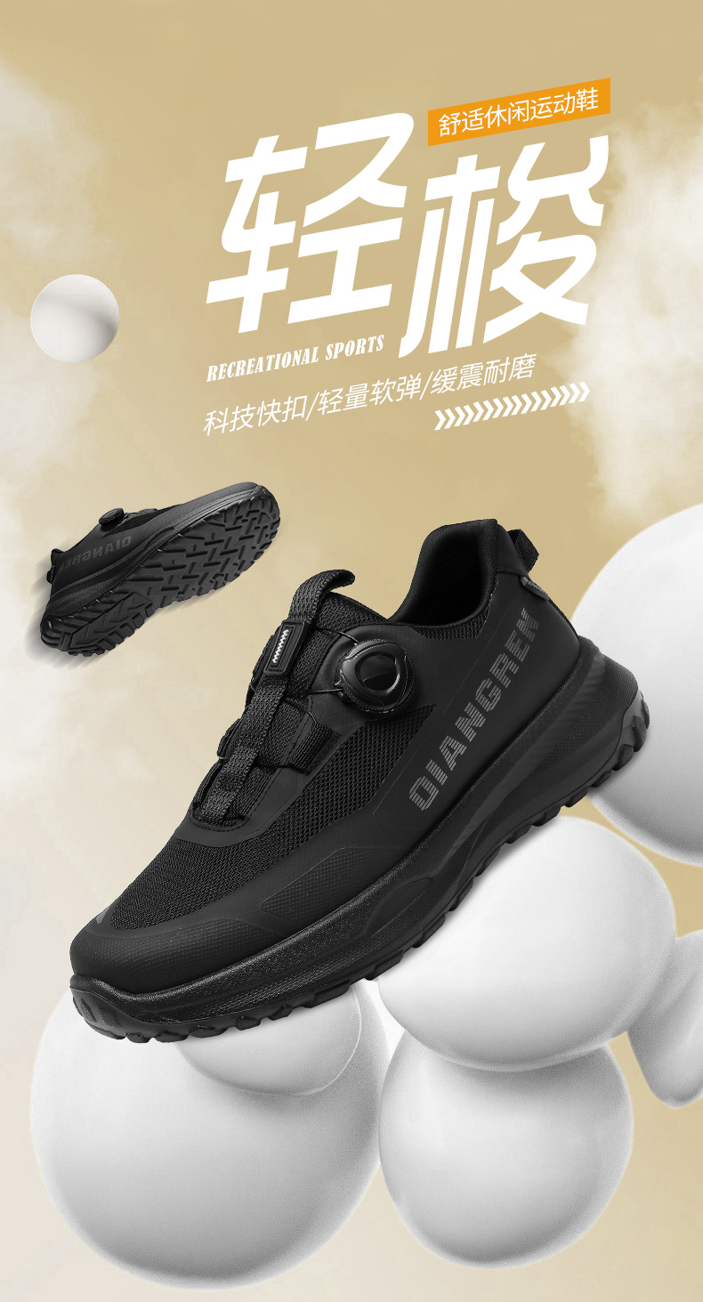 强人3515运动休闲鞋男款户外登山鞋黑色通勤鞋厚底百搭潮流旋转扣
