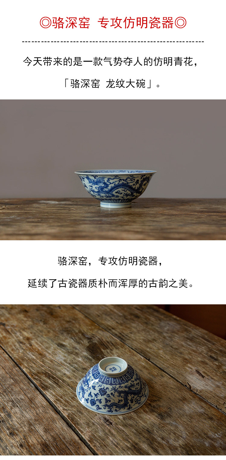 茶香记 骆深窑 龙纹大碗 仿明器 青花精绘主人杯 功夫茶具