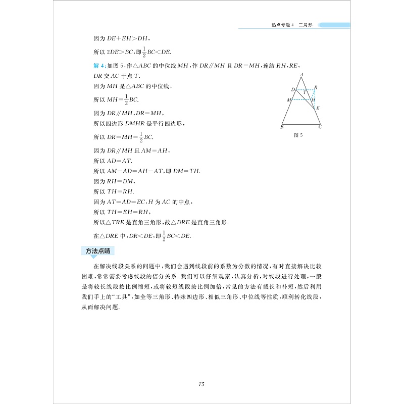 本书是以《义务教育数学课程标准(2022年版)》为指导,通过“每日一题,一题多解”的形式,精选例题,精讲方法,纵横交错,形成完整的知识网格和多样的方法体系。本书按初中数学基础知识的先后顺序分成八个章节,每个章节选择一个经典例题或中考热点问题为其中的一讲,每讲内容包括“问题呈现”、“解法展示”、“方法点睛”及“配套练习”四个环节,在章前安排知识引导,在章末进行方法总结,并提供拓展提高题。本书极具综合性和实用性,在“解法展示”环节提供丰富多样的解题方法,在“方法点睛”环节,归纳出解决问题的一般思路,给出有用的基本方法和基本结论,全方位落实核心知识,手把手教授解题经验。不仅适用于初中数学教师、浙江省新中考考生,也适用于全国各地中考生培优。