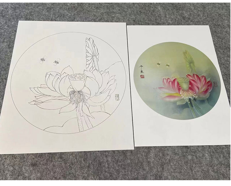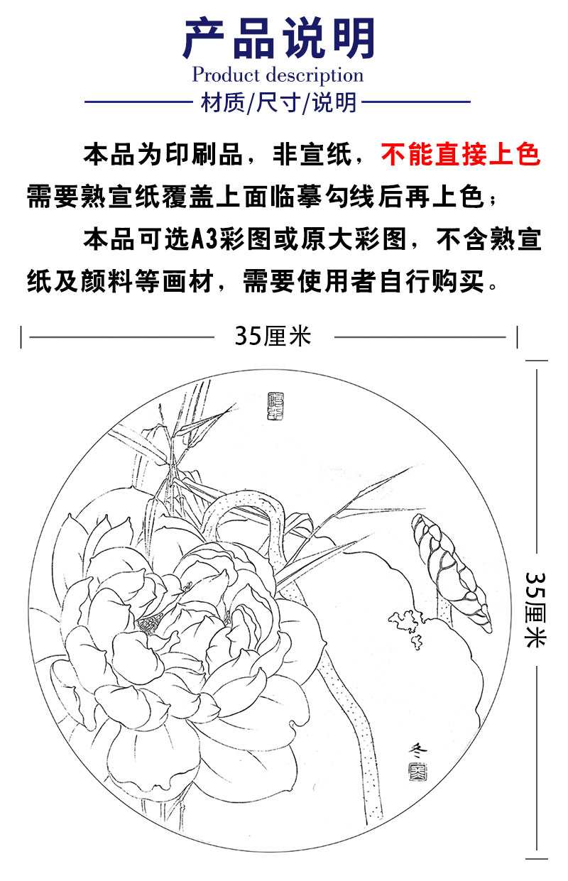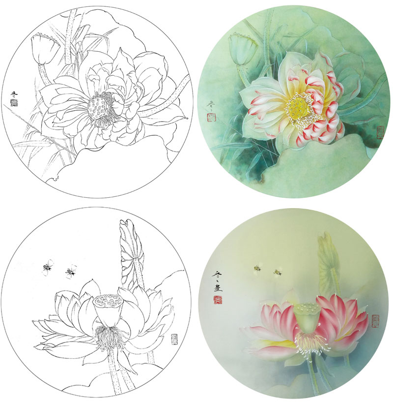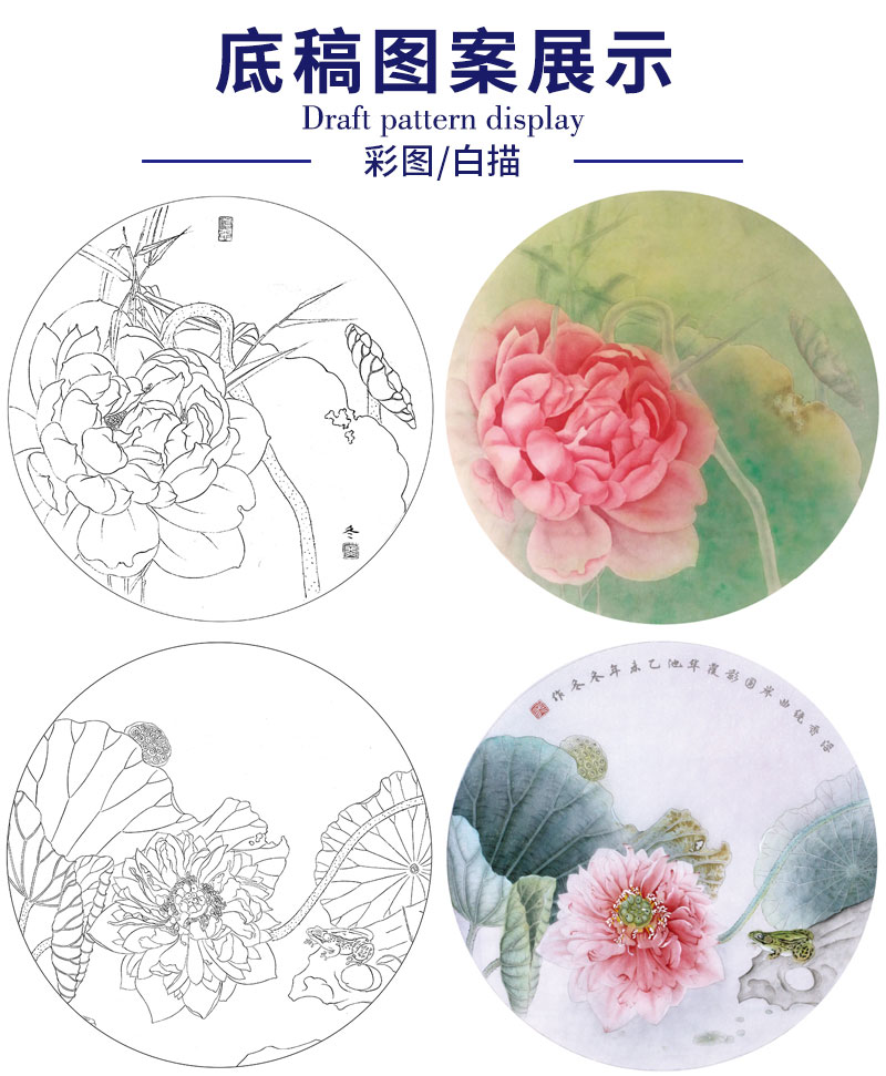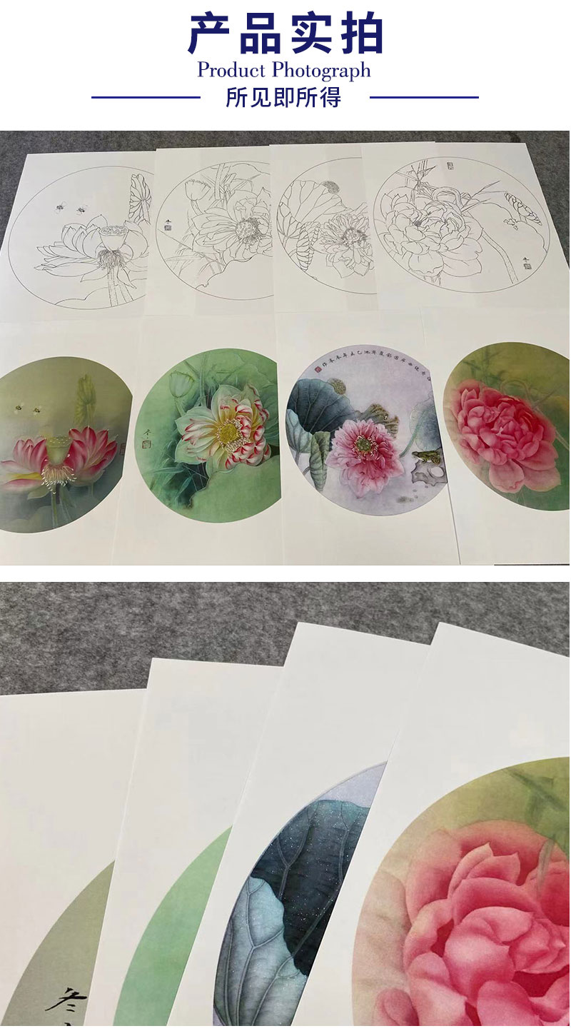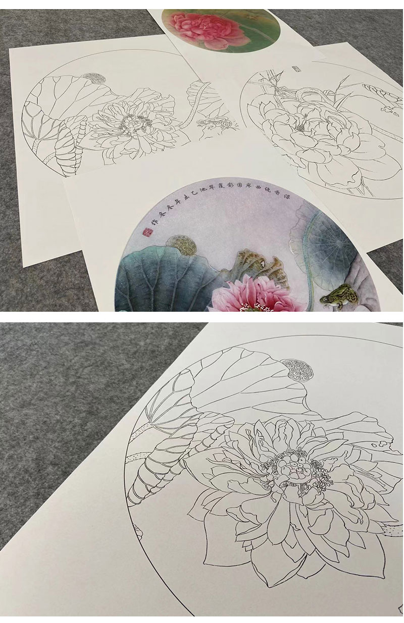 杨冬冬工笔画白描底稿荷花一套四幅初学者尺寸35*35厘米TY04