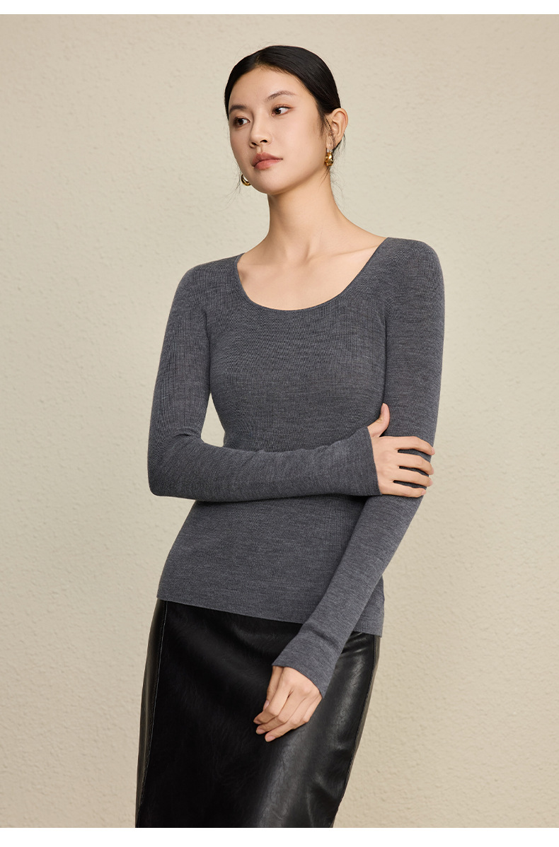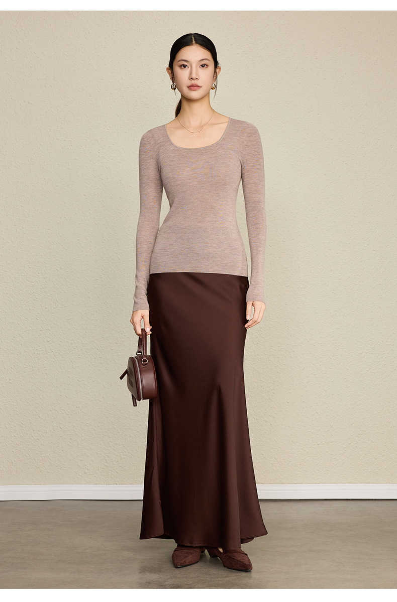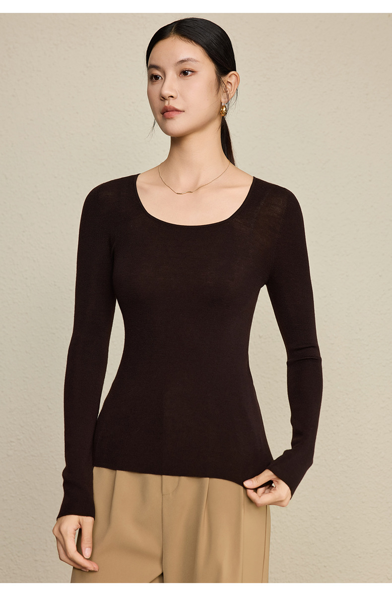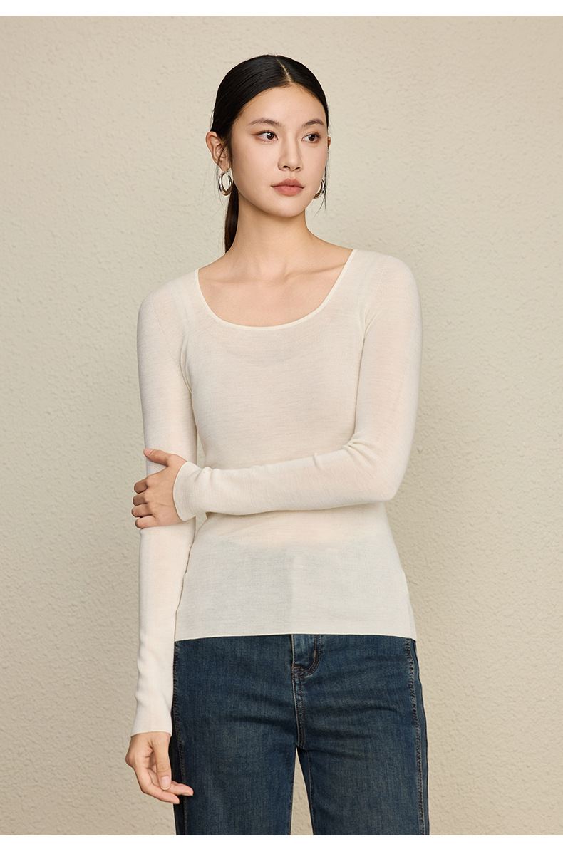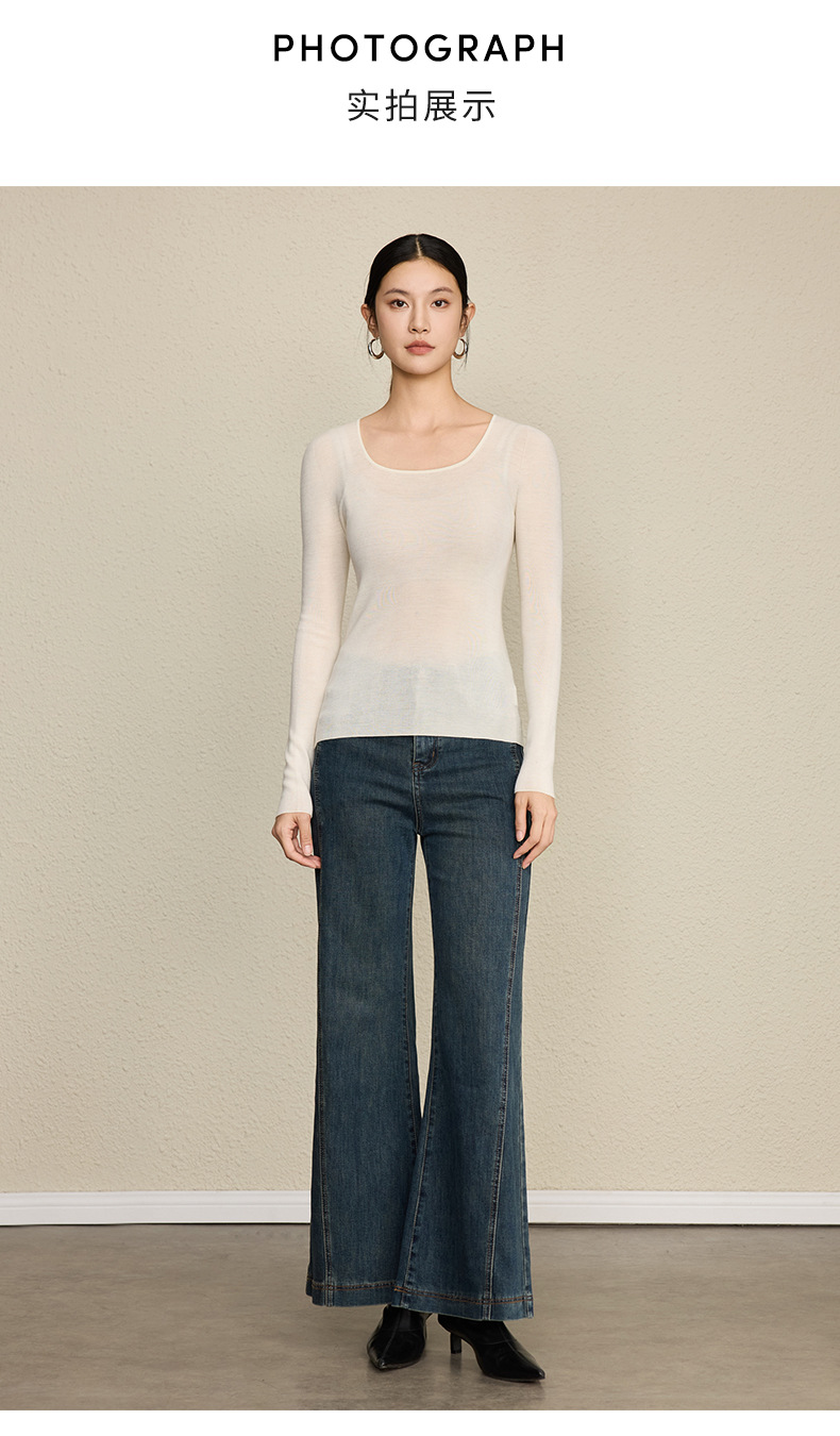 「自」全新升级【铂金会员266/天猫359/差价93】(92131)洛诗琳无缝扬子纱方领针织衫2025秋季修身显瘦百搭打底上衣