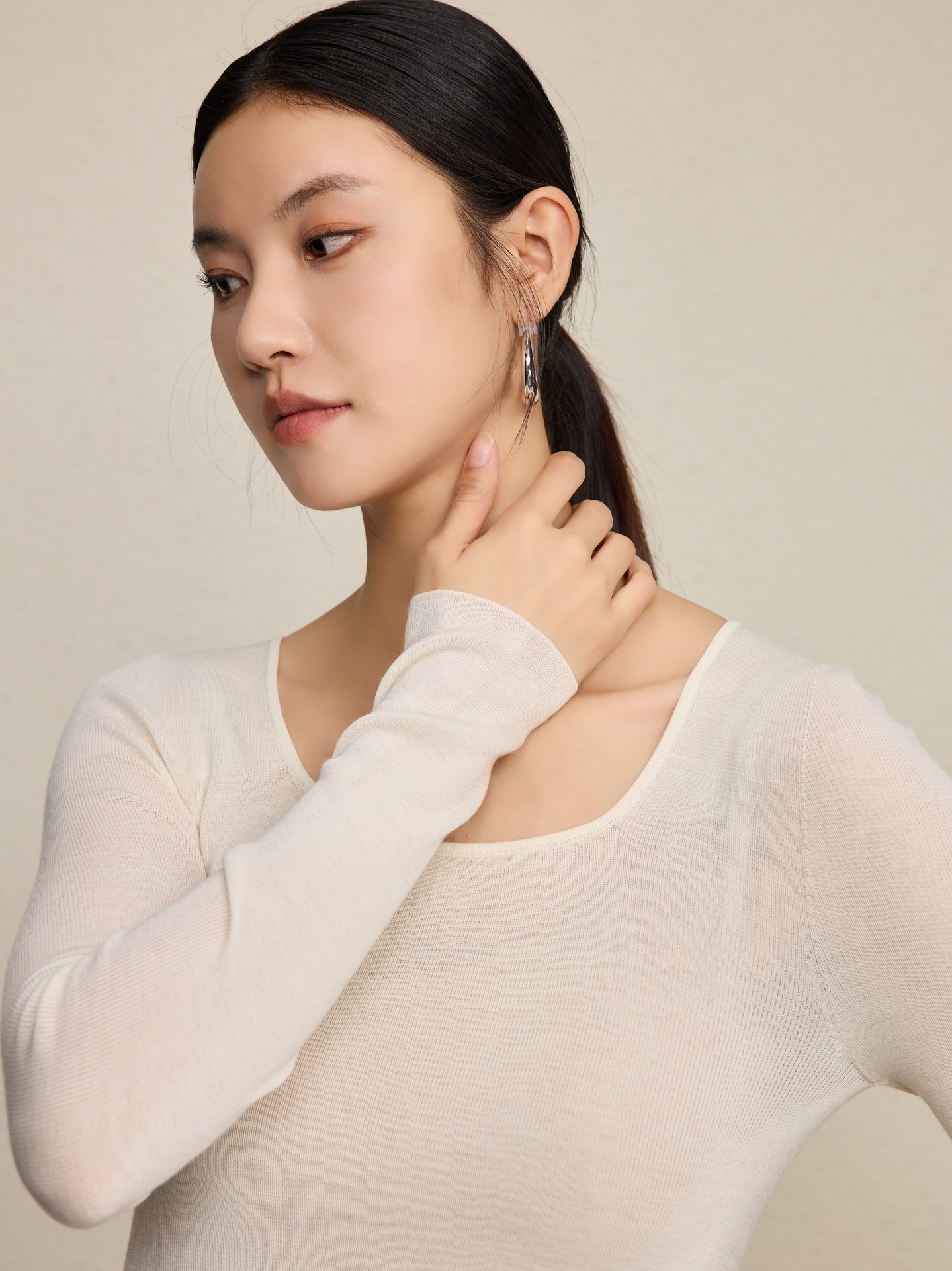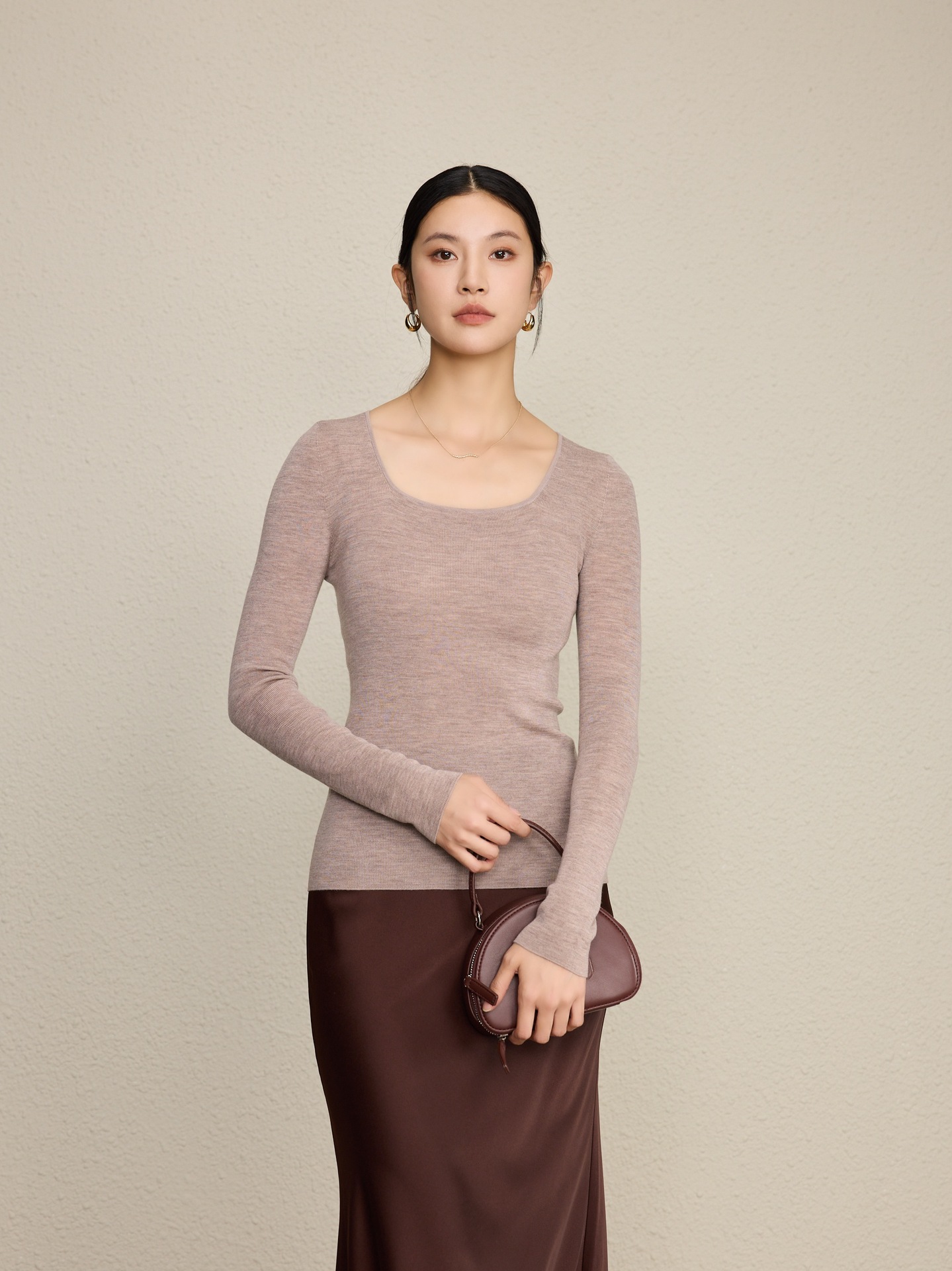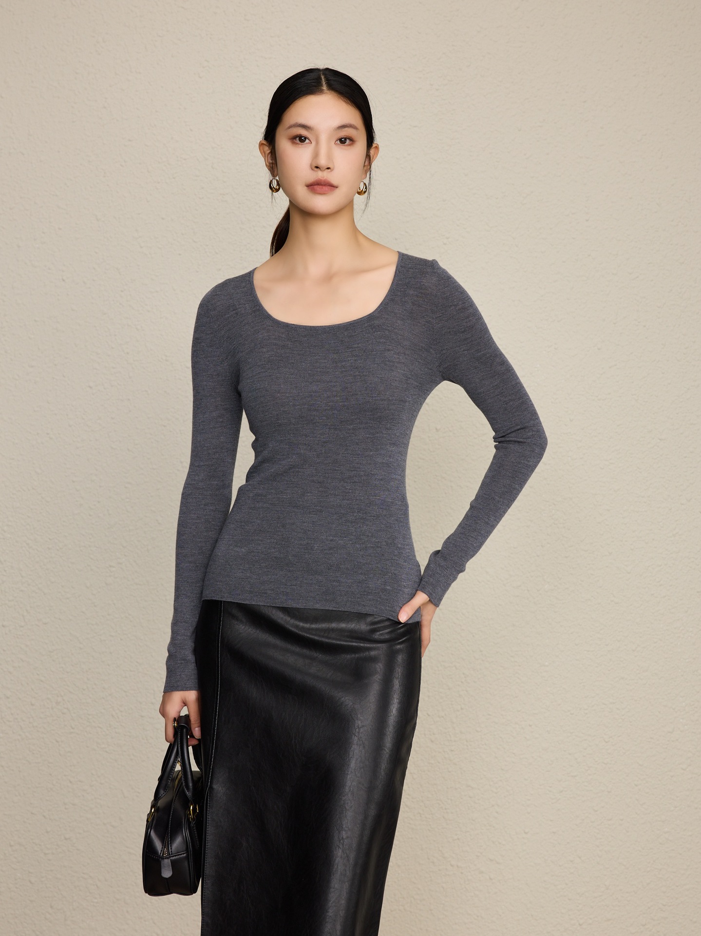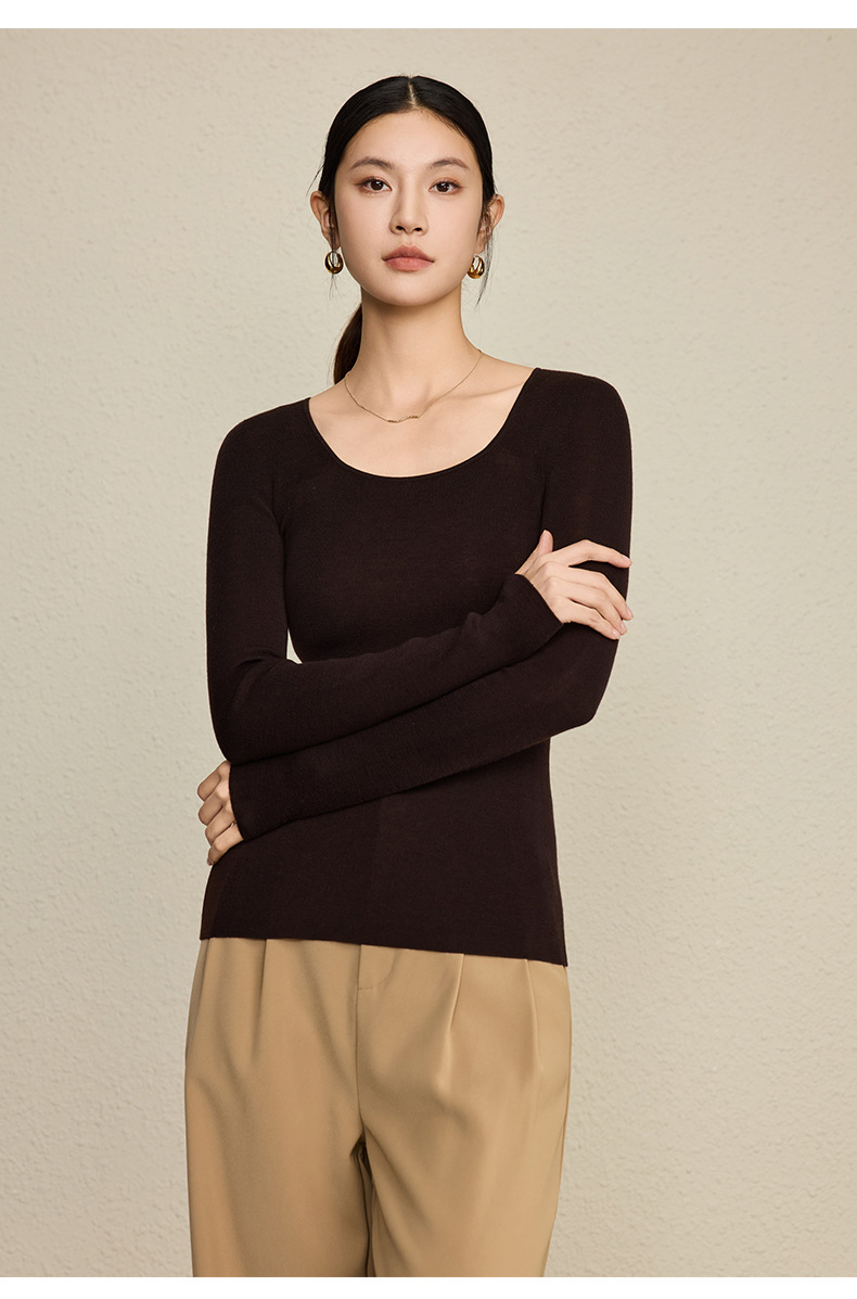 「自」全新升级【铂金会员266/天猫359/差价93】(92131)洛诗琳无缝扬子纱方领针织衫2025秋季修身显瘦百搭打底上衣