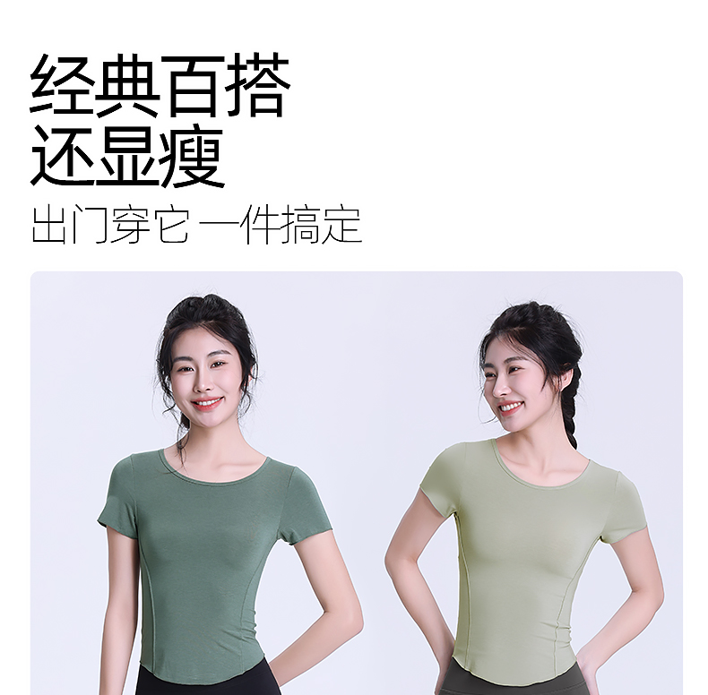 梵美人 F1225M 瑜伽短袖 带胸垫 醋酸莫代尔