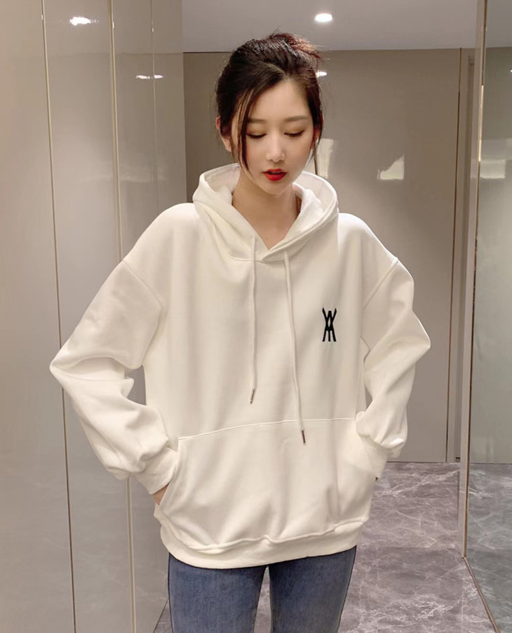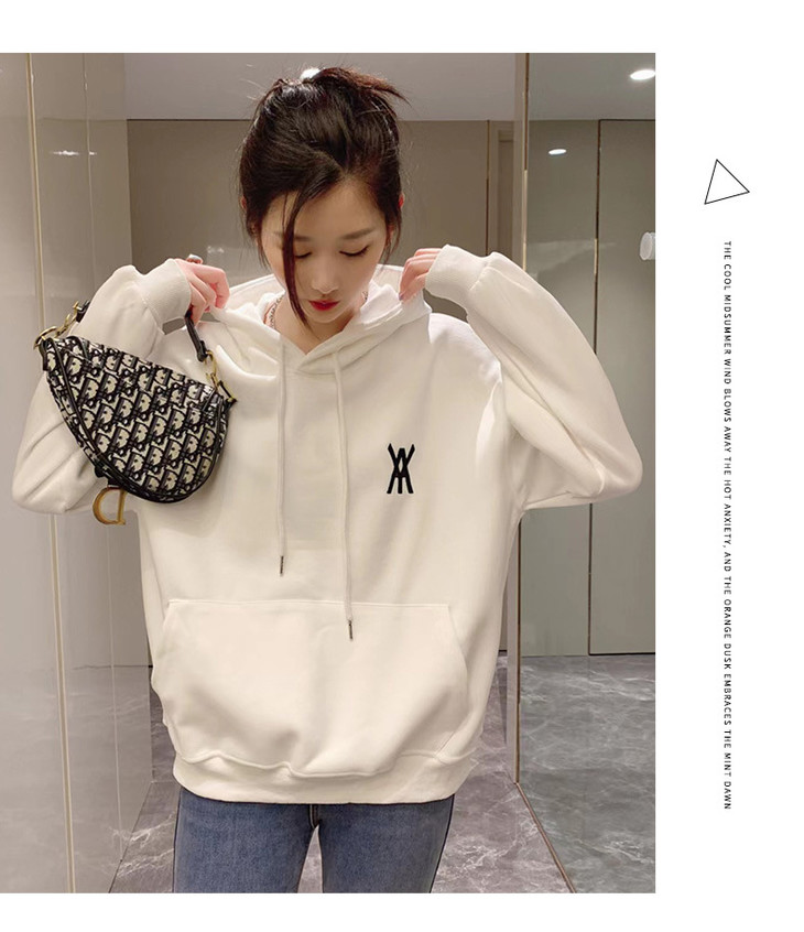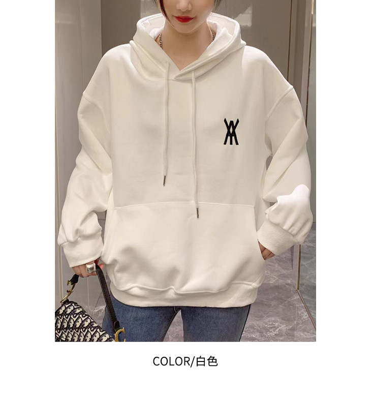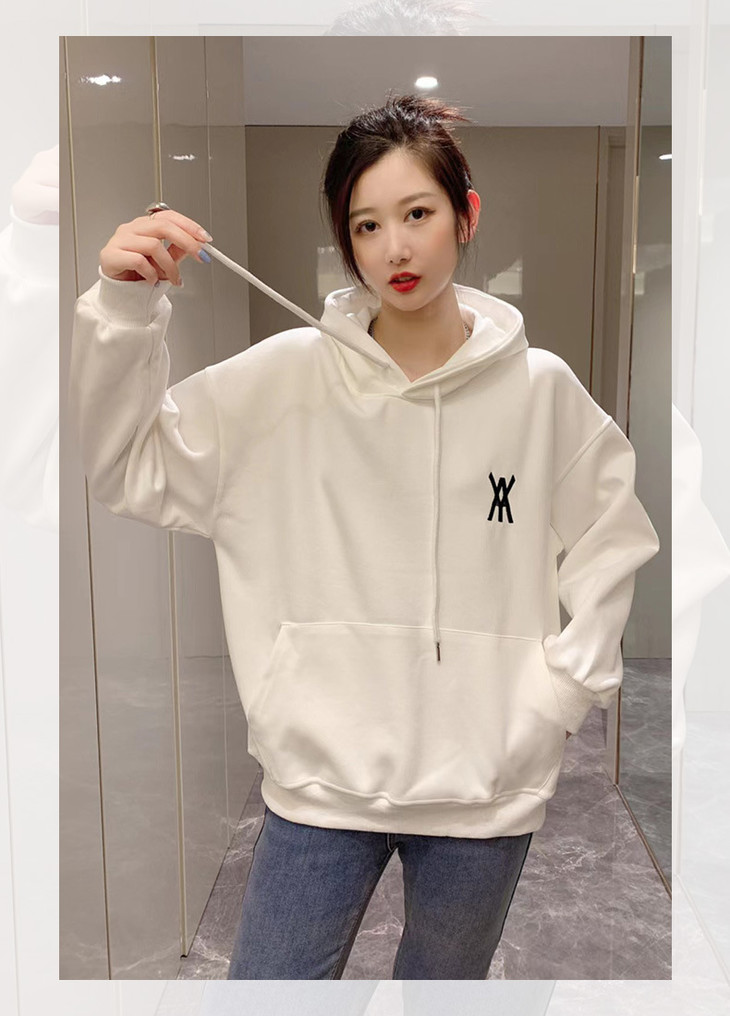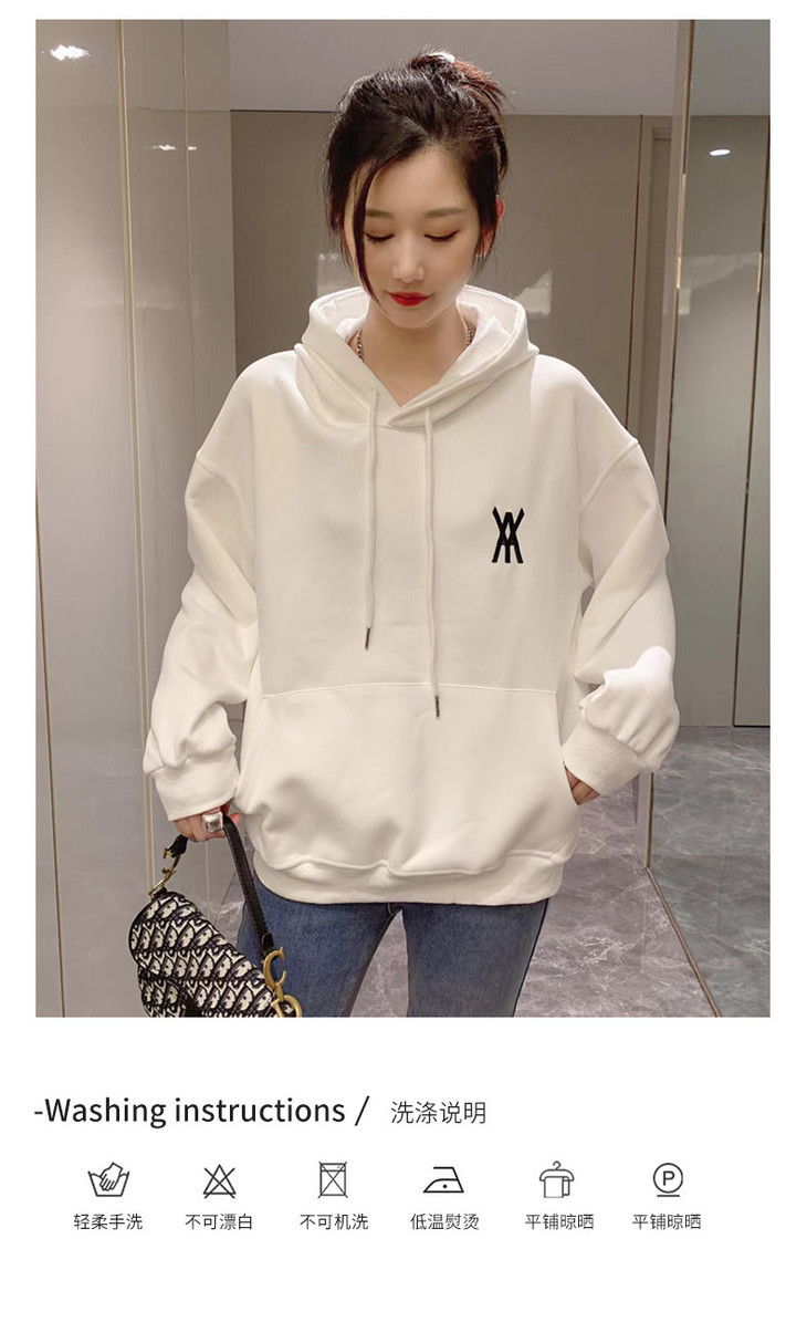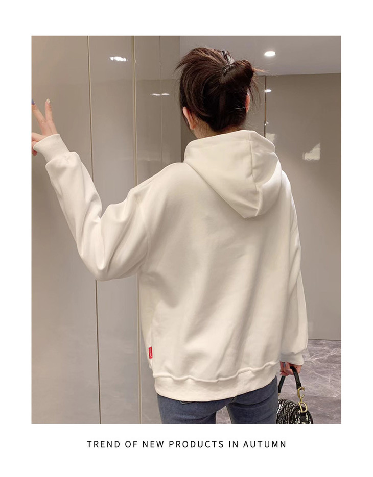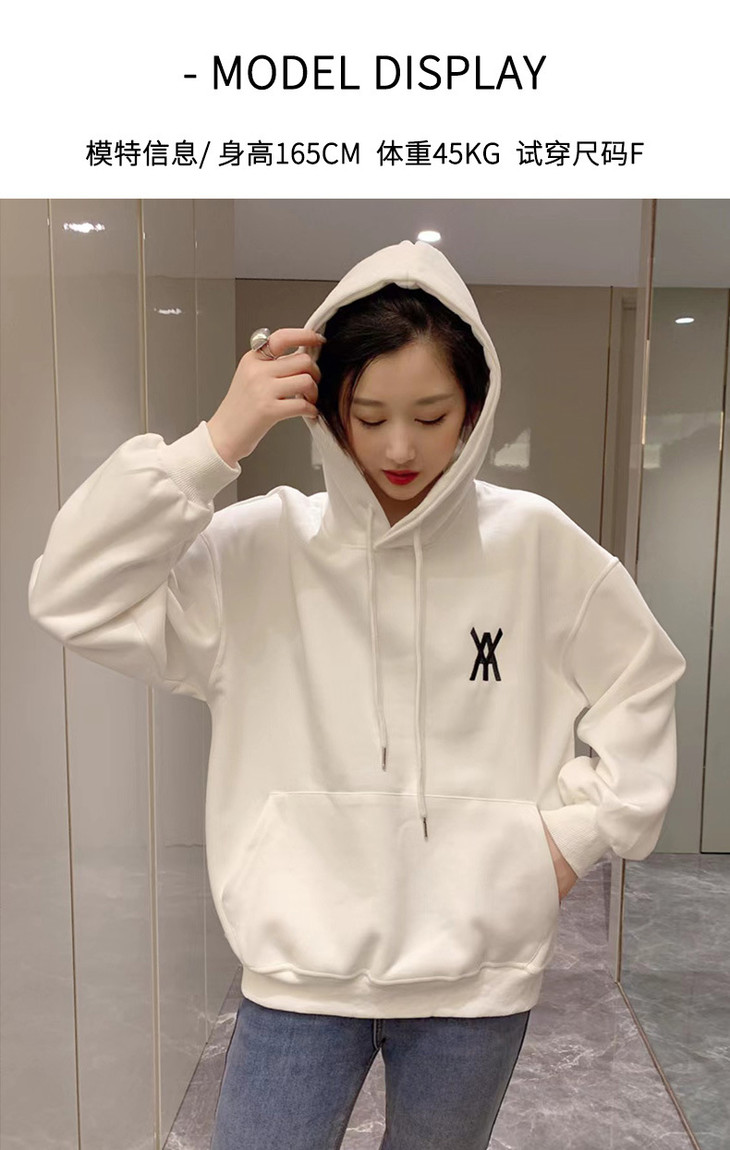 白色卫衣春秋女2022宽松百搭韩版上衣外套设计感小众连帽纯色卫衣FX-2237