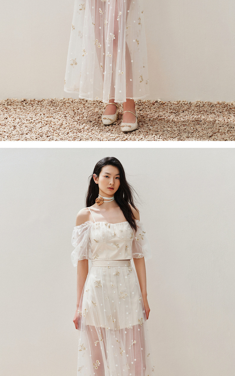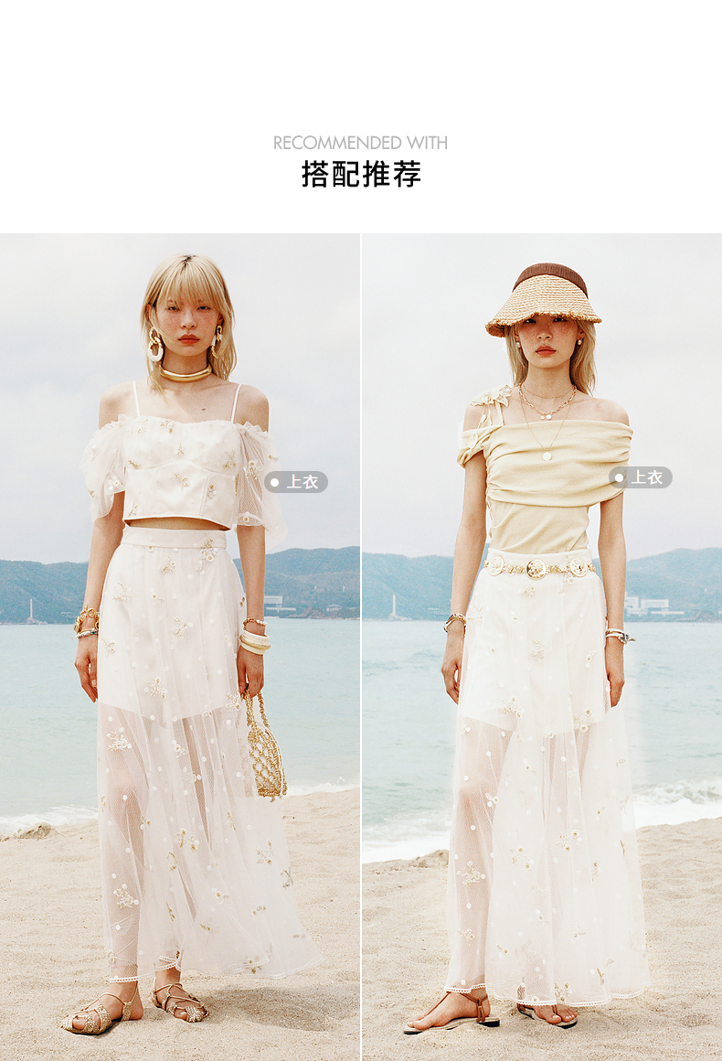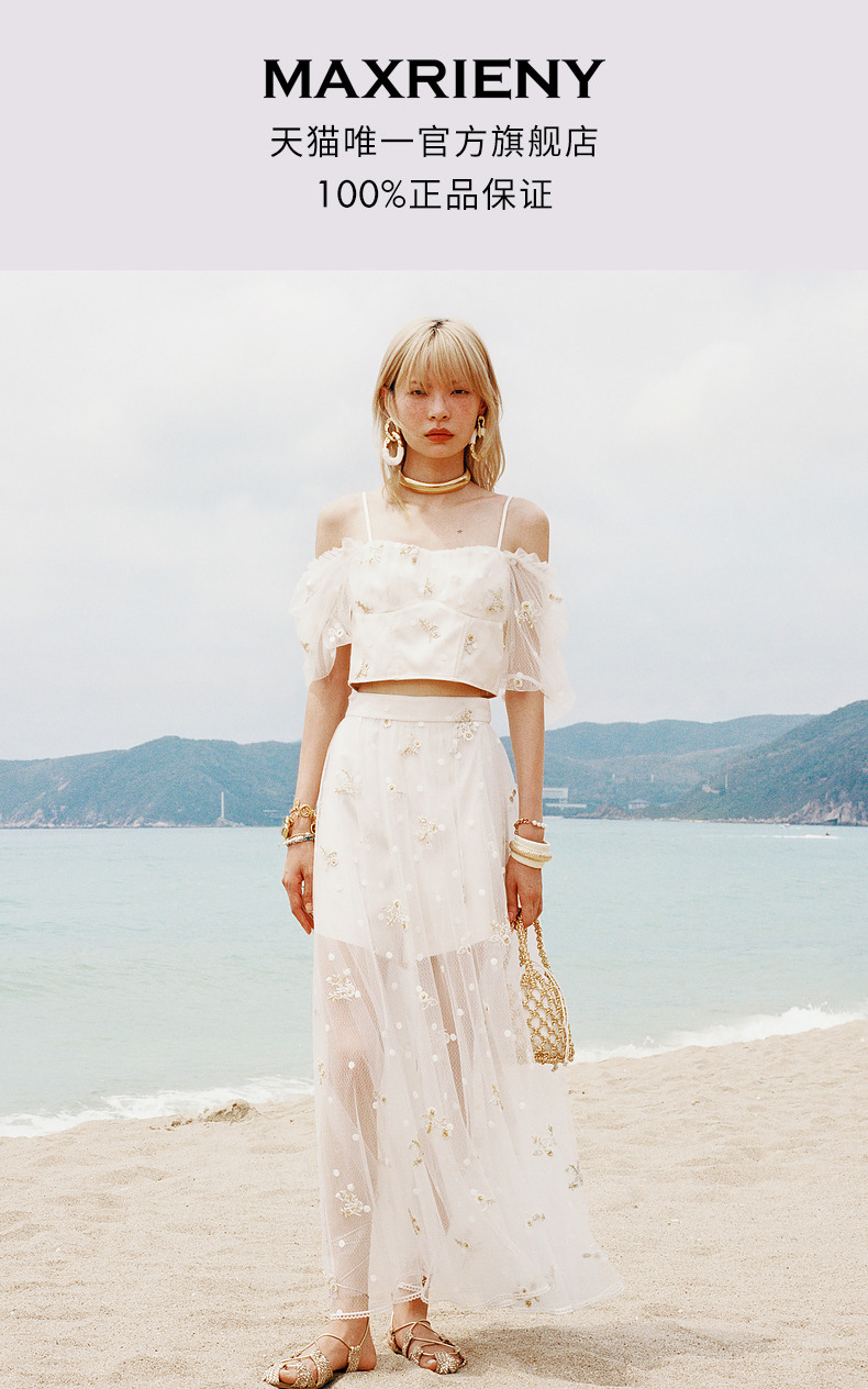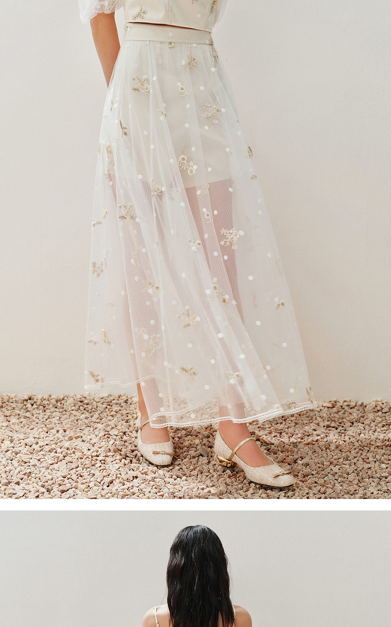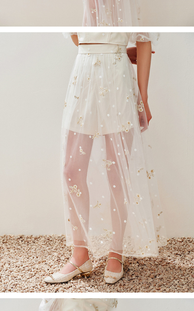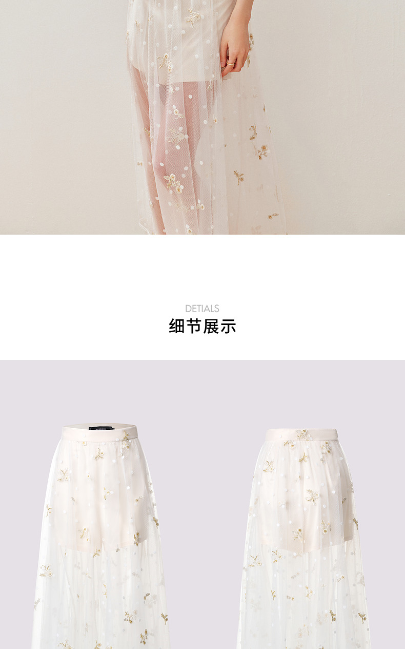 【静奢度假-商场同款】MAXRIENY甜美复古网纱绣花半裙24夏款长裙(货号:MC85SK263)