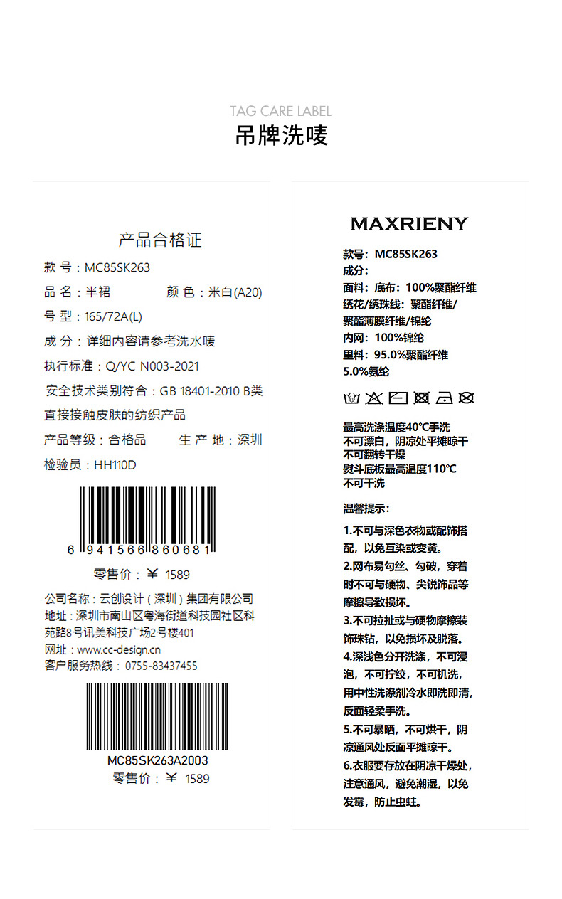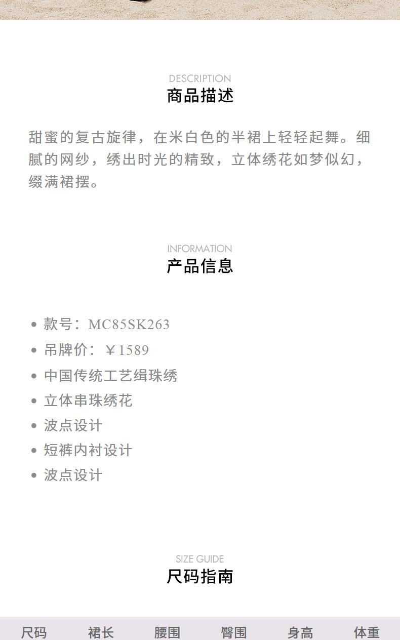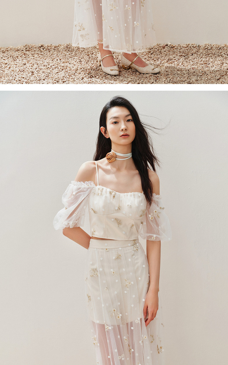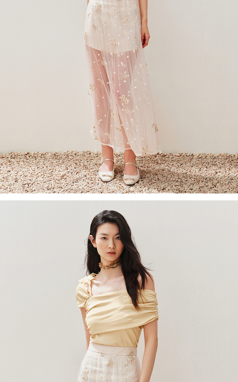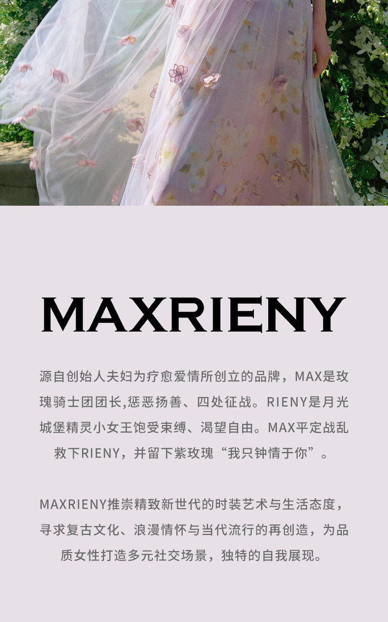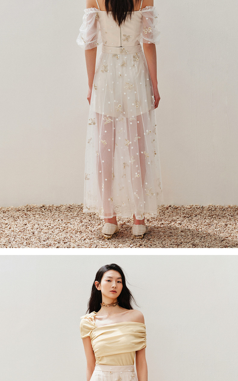 【静奢度假-商场同款】MAXRIENY甜美复古网纱绣花半裙24夏款长裙(货号:MC85SK263)