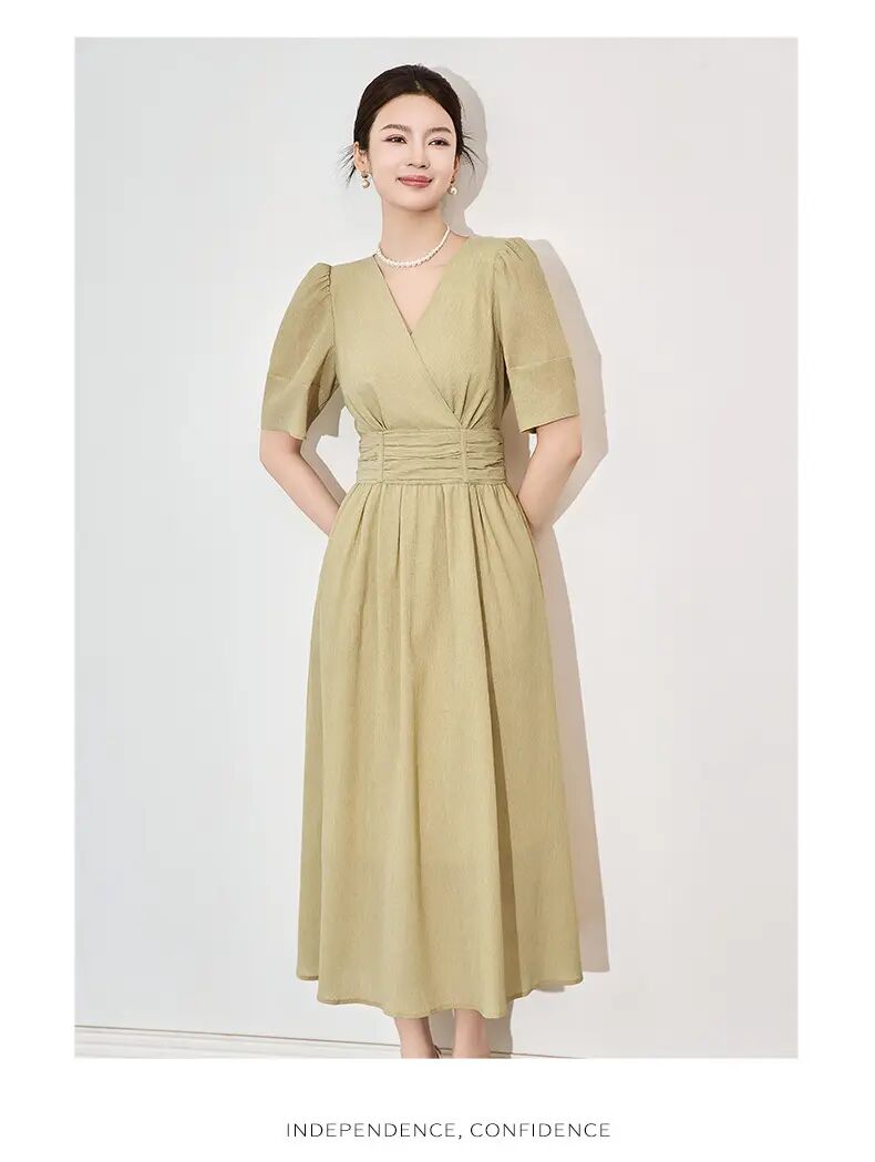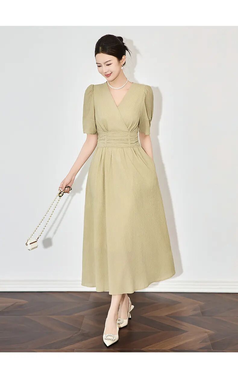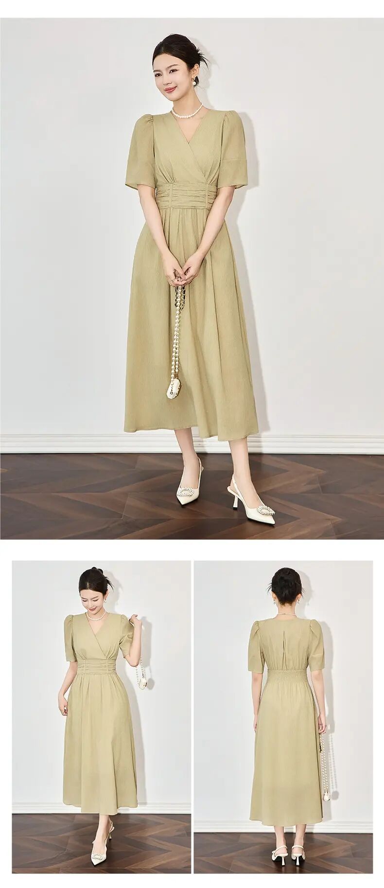 【高货wl】全新升级【铂金会员330/天猫439/差价109】(04224) 洛诗琳法式优雅轻熟气质收腰显瘦泡泡袖时尚女春连衣裙