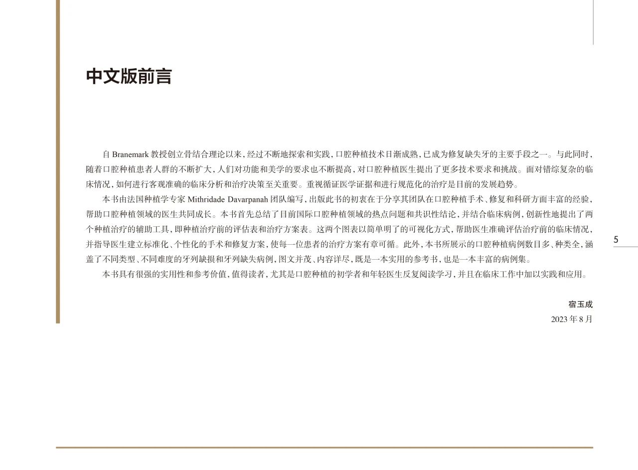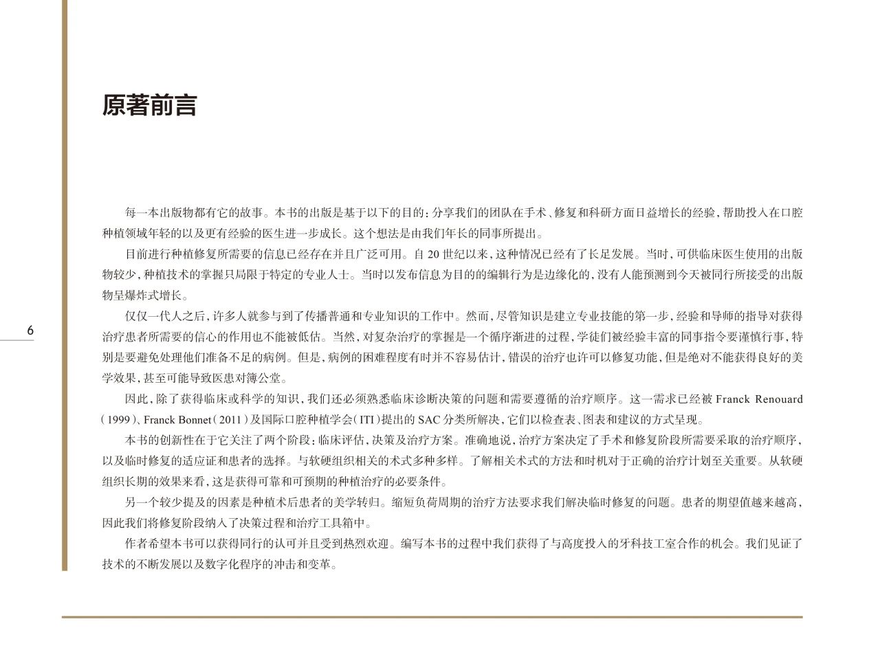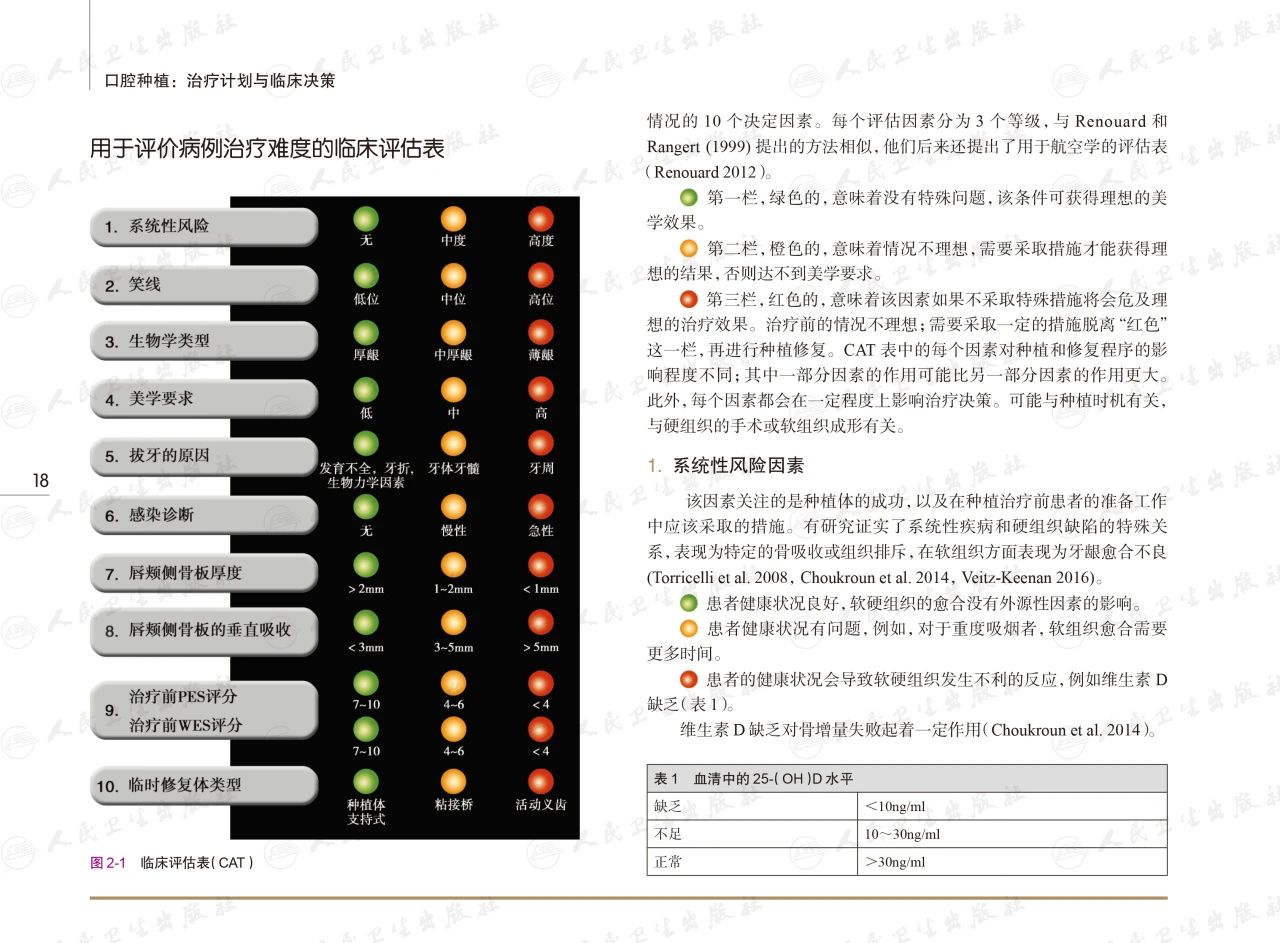 ❶. 总结了目前国际口腔种植领域的热点问题和共识性结论,并结合临床病例,创新性地提出了种植治疗的评估表和治疗方案模板这两个辅助工具。可以为医生的临床工作提供指导,具有很强的实用性和可操作性。