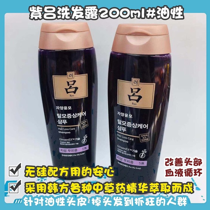 紫吕洗发露200ml#油性 👍大名鼎鼎的吕来了🤗~采用韩方各种中草药精华萃取而成🌿,养壮头苗👌🏻,改善头部血液循环从这里开始〰️紫吕油性发质这系列,是兼滋养型的哦💦,针对油性头皮、掉头发到抓狂的人群🙋🏻♀️!淡淡的药香味一点都不难闻🌬,洗完头发,觉得头皮很轻的感觉,出油的状况也会改善😘,无硅配方用的安心✅,囤它!