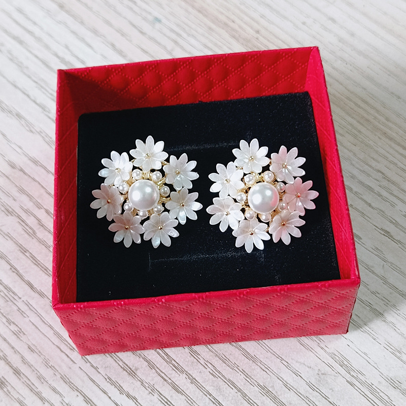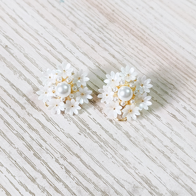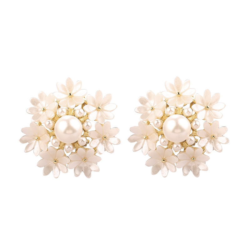 JU-AB-29新款个性时尚花朵夸张耳环女韩国气质甜美珍珠雪花耳扣耳钉