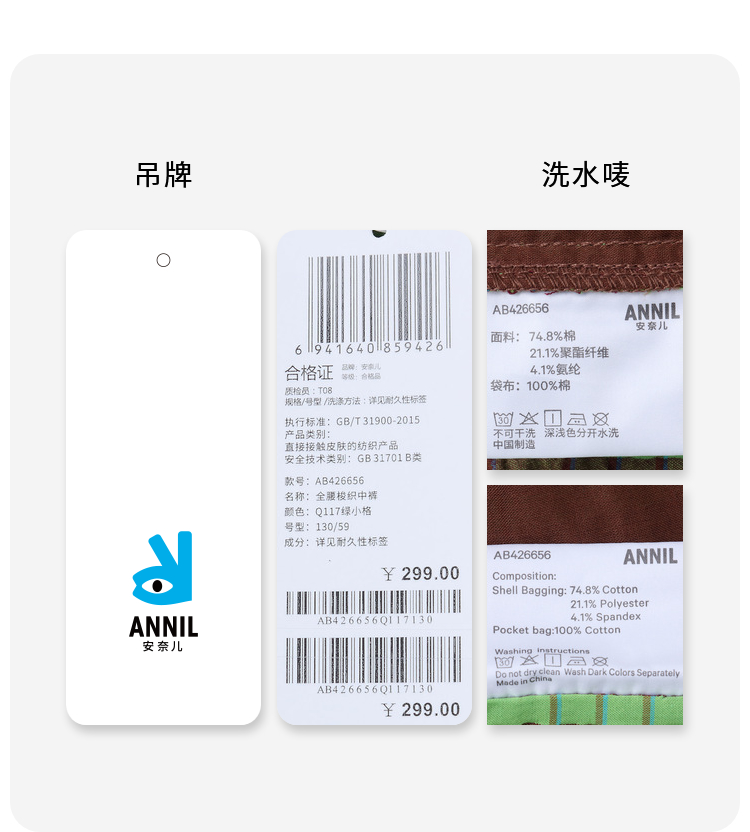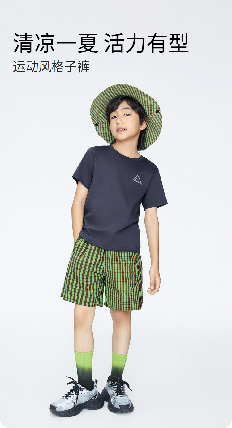 男童运动风格子中裤裤子夏季新款安奈儿童装实体店同款AB426656