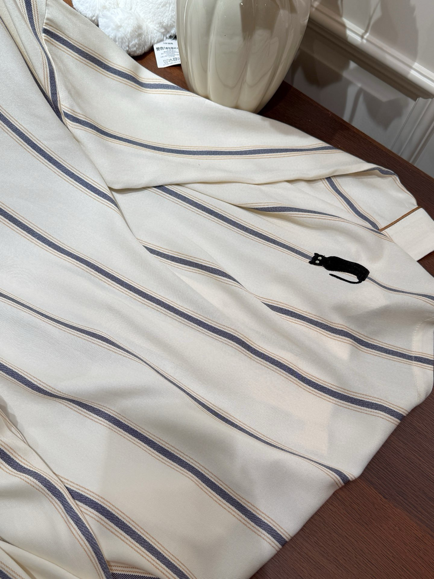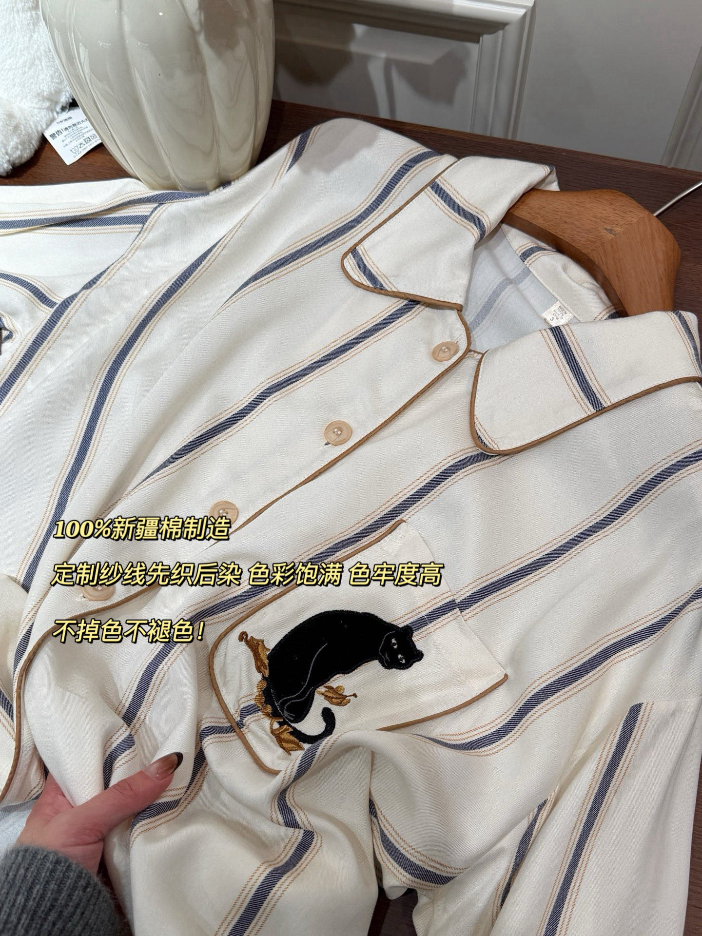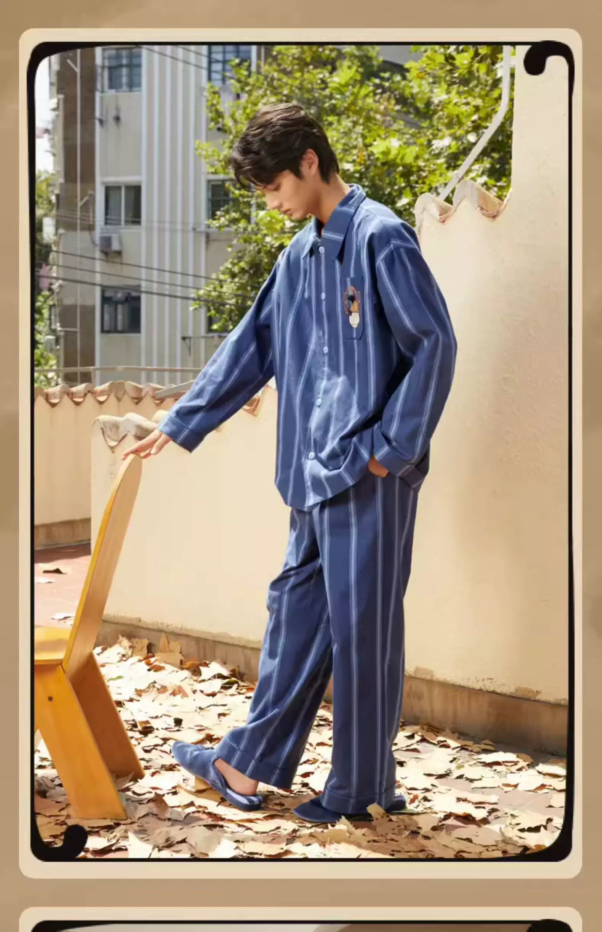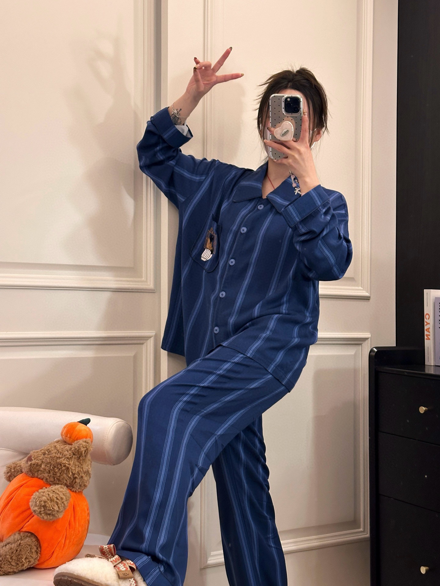 沉稳又优雅,给人一种宁静而深邃的感觉。当你穿上这套睡衣,仿佛融入了夜的怀抱,舒适与放松油然而生。
