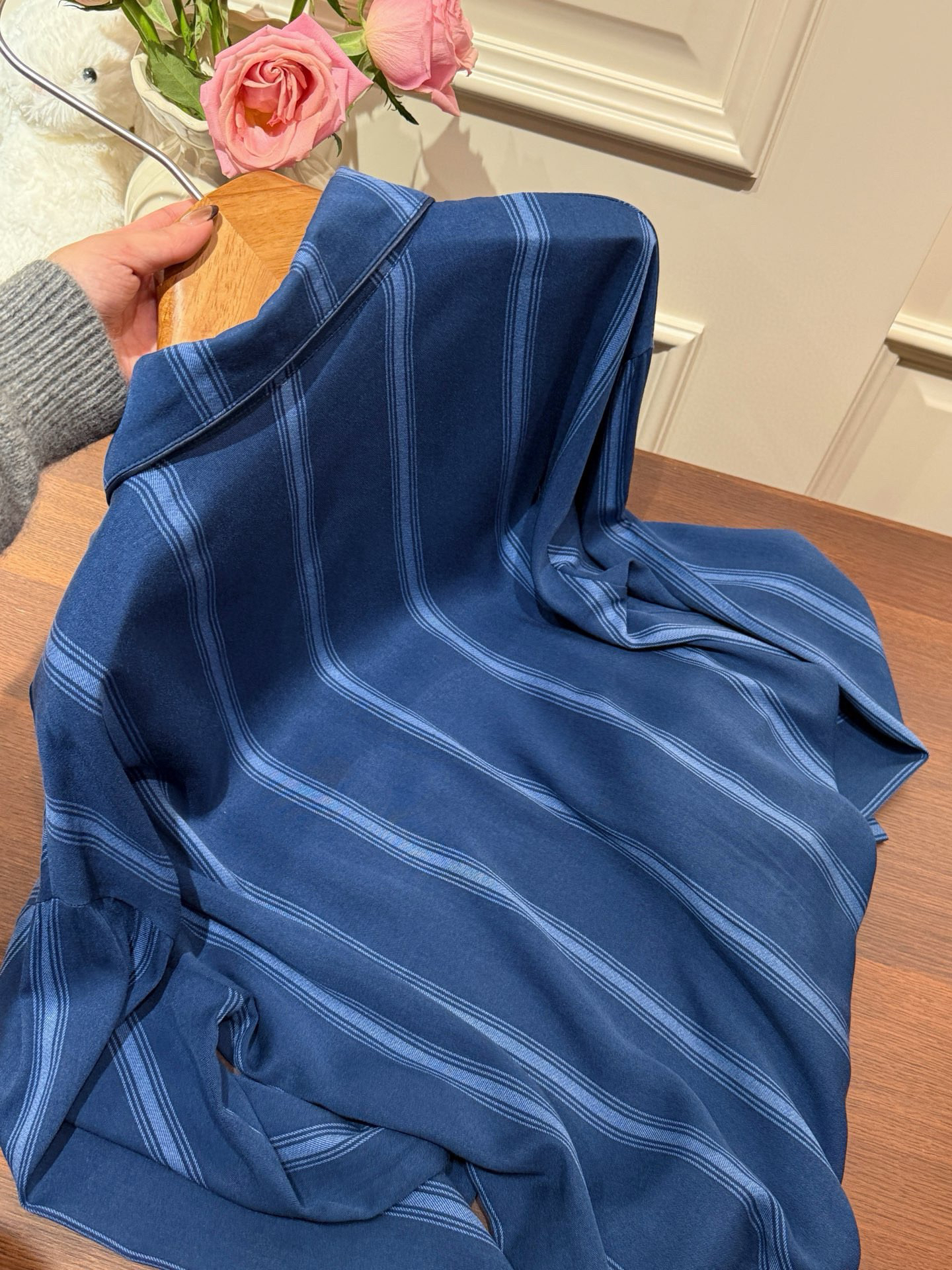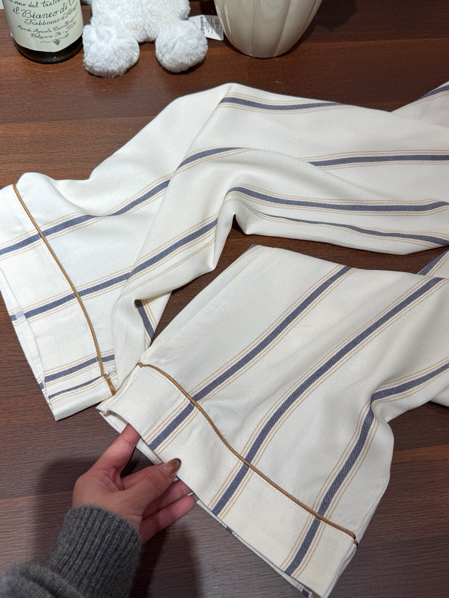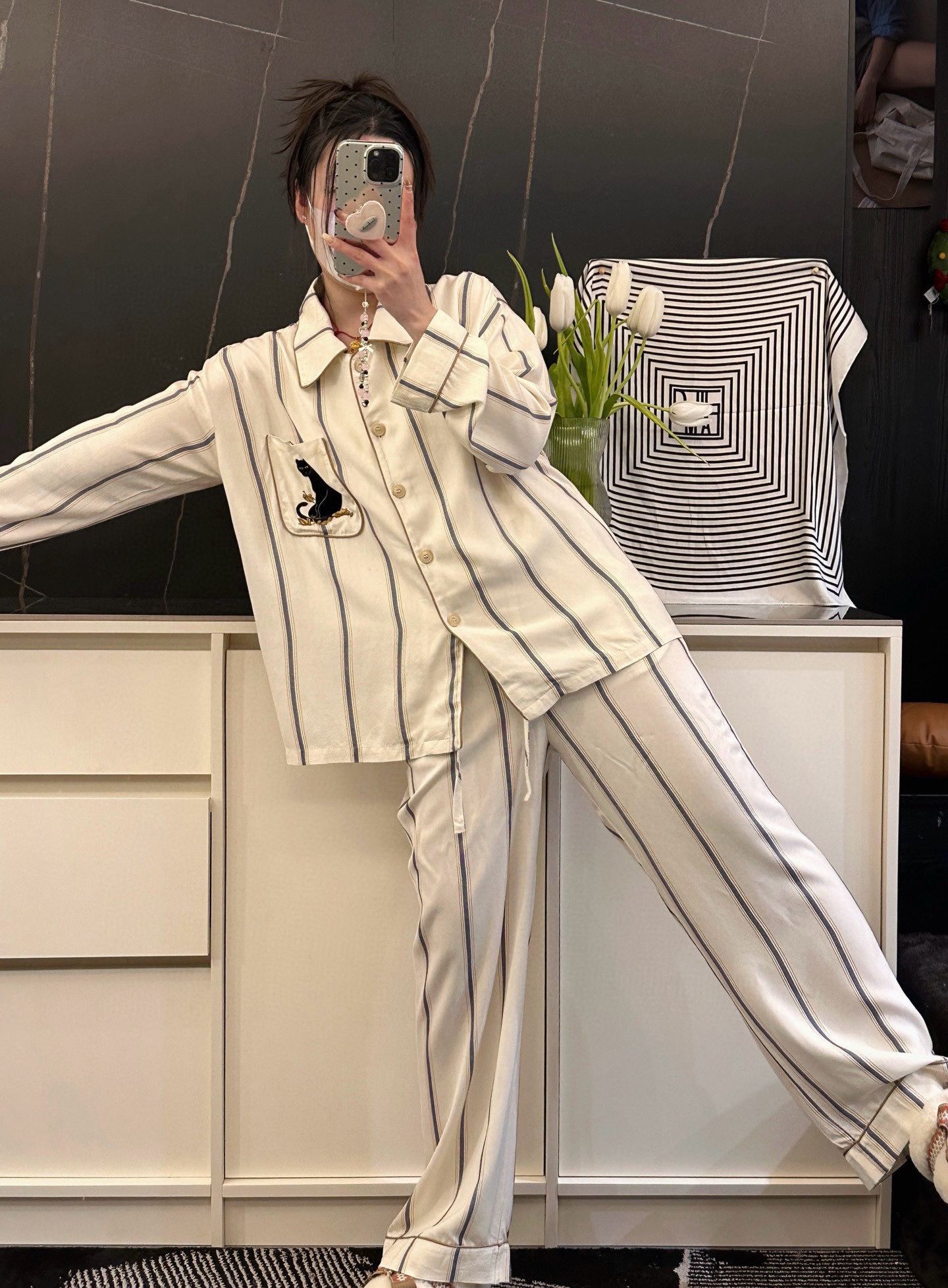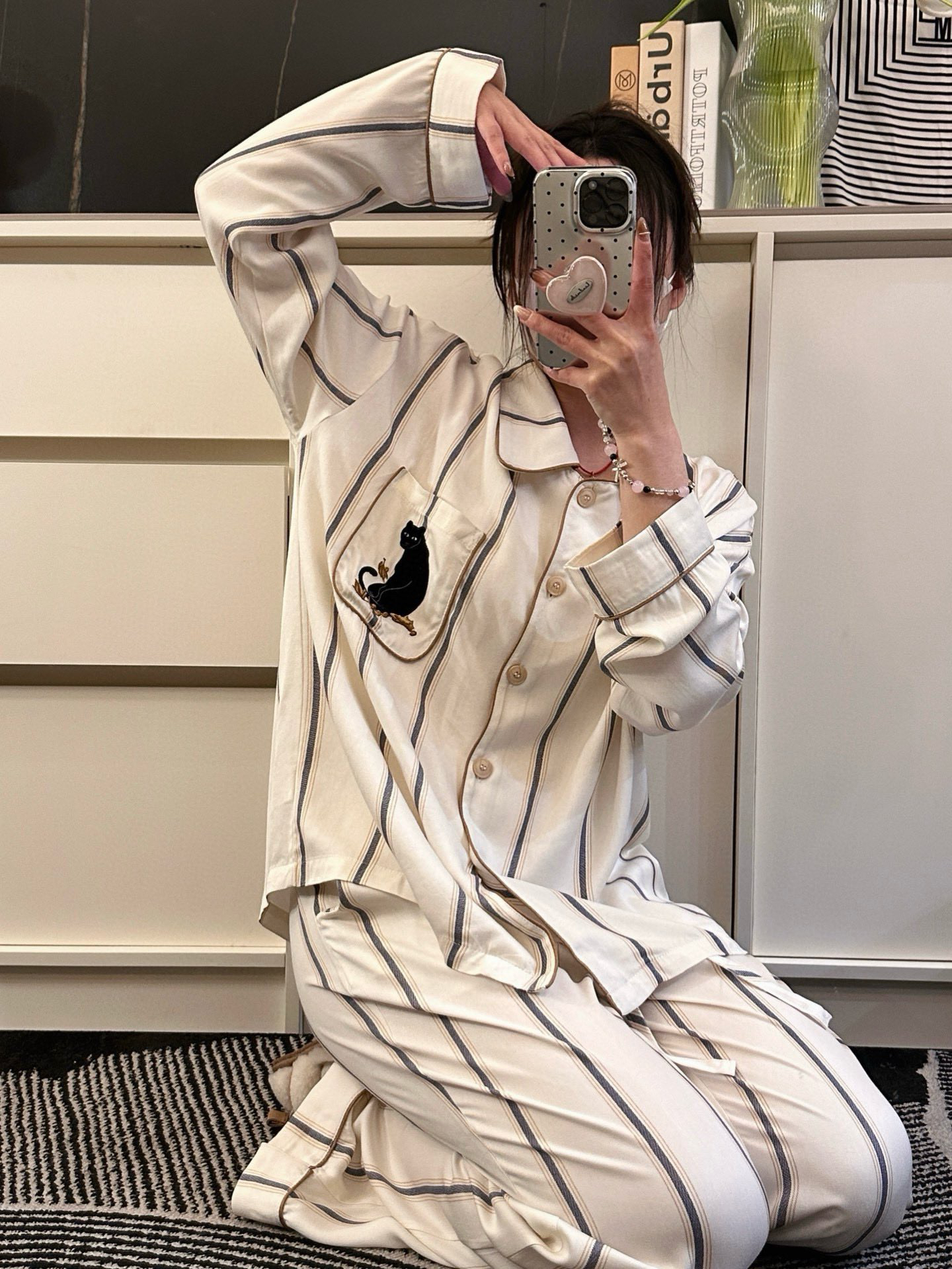 沉稳又优雅,给人一种宁静而深邃的感觉。当你穿上这套睡衣,仿佛融入了夜的怀抱,舒适与放松油然而生。