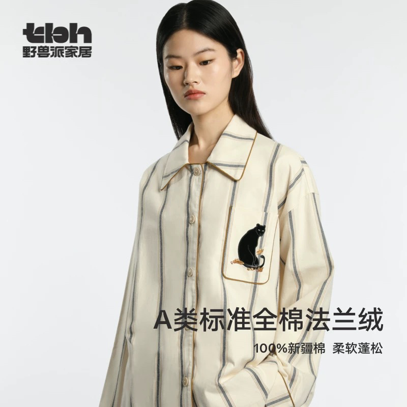 𝟏𝟗𝟔𝐠加厚全棉法兰绒面料 经过特殊起毛后整理工艺 手感蓬松柔软 贴身穿就是被棉花包裹的软绵感!
