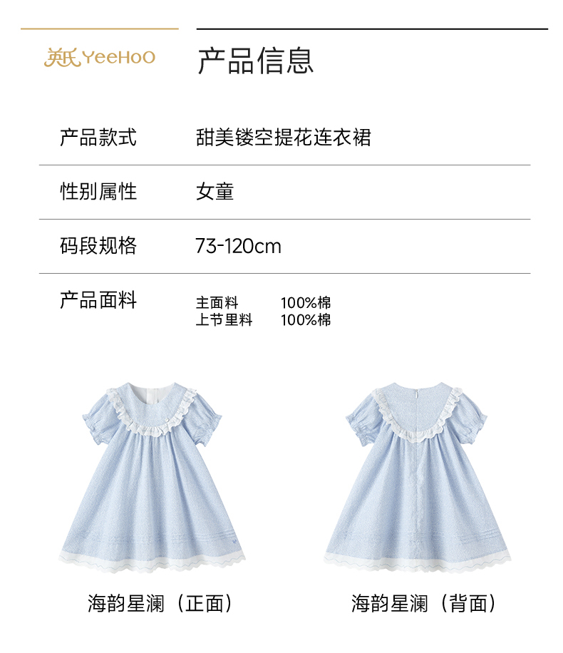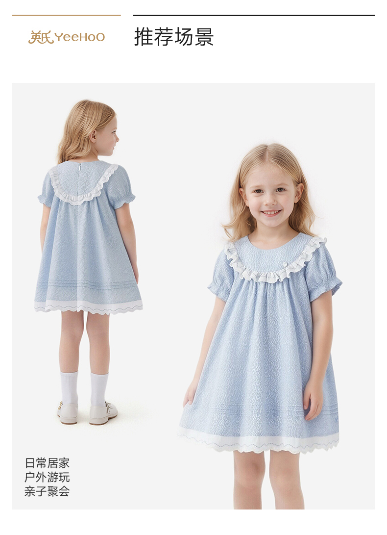 【商场同款】英氏女童连衣裙夏新款短袖纯棉裙子儿童甜美公主裙