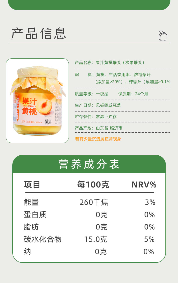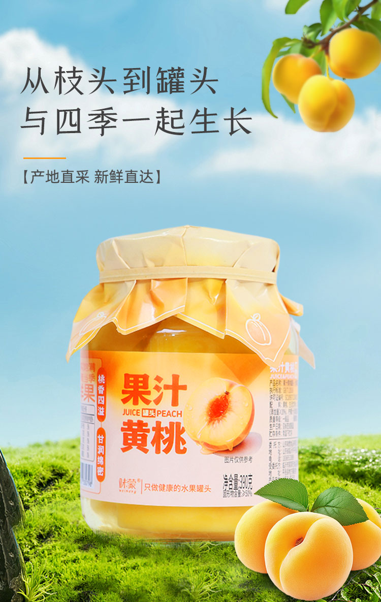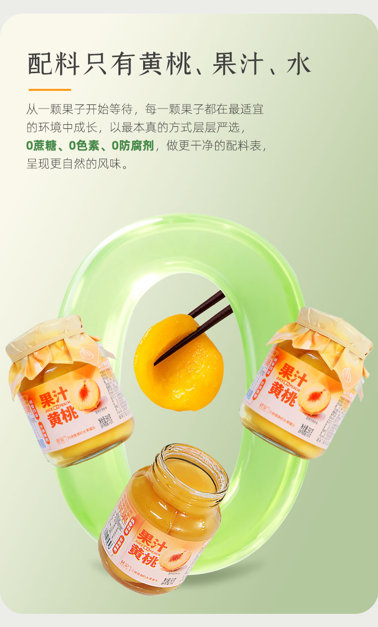 果汁黄桃罐头 优选新鲜自然成熟黄桃 酸甜清爽解腻 配料干净