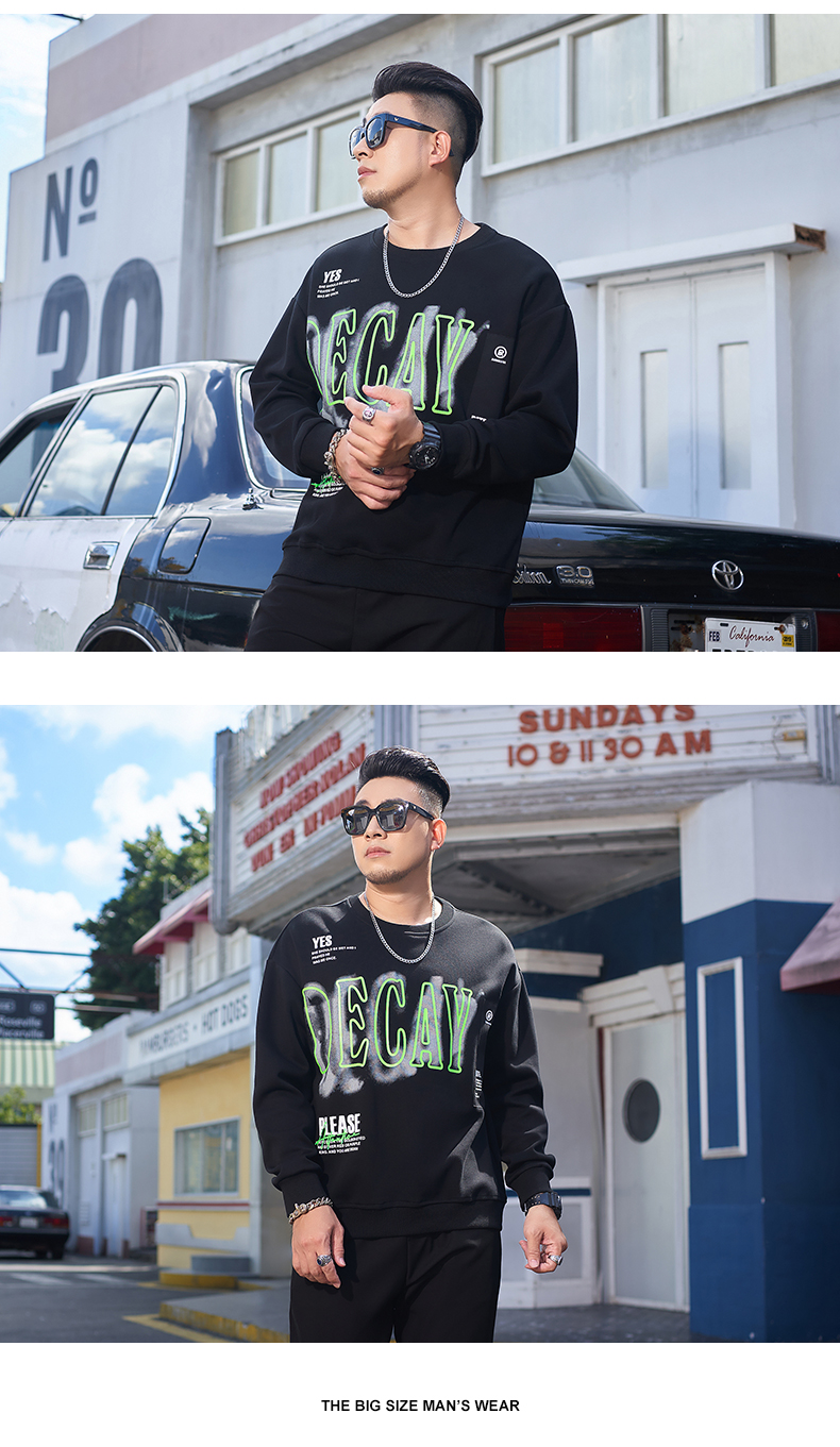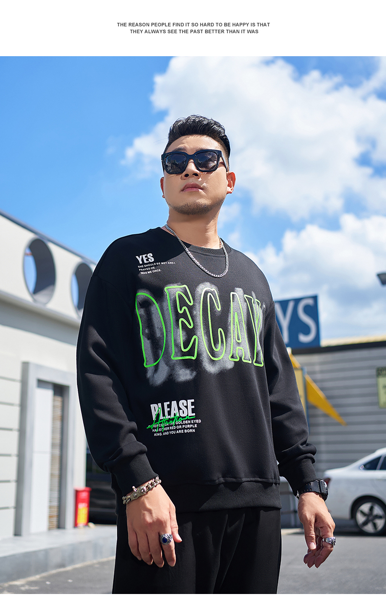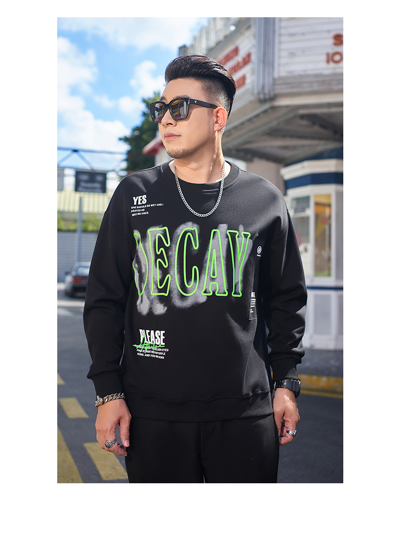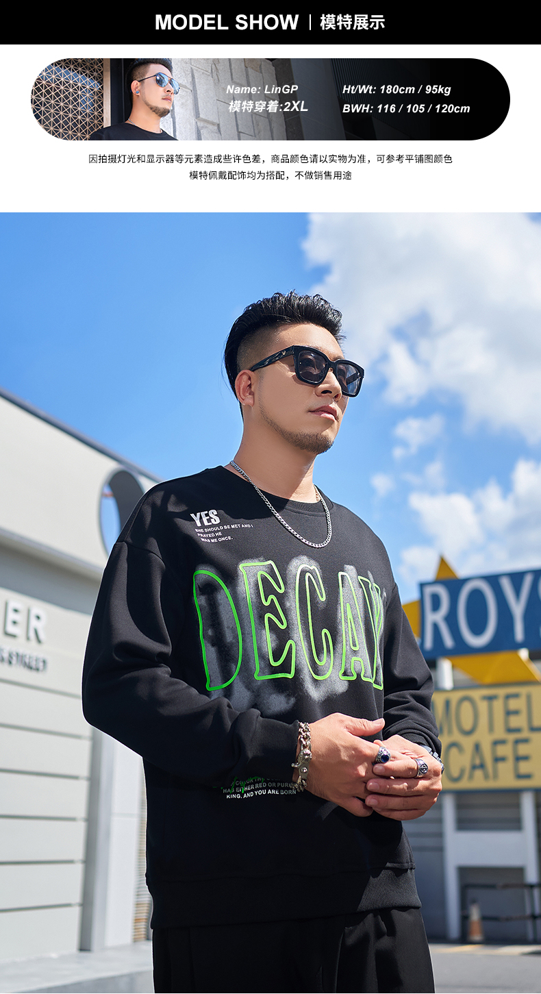 【一口价】【新款DMH】大依优型大码圆领印花卫衣长袖弹力加肥加大胖子上衣男士T恤肥佬打底男装