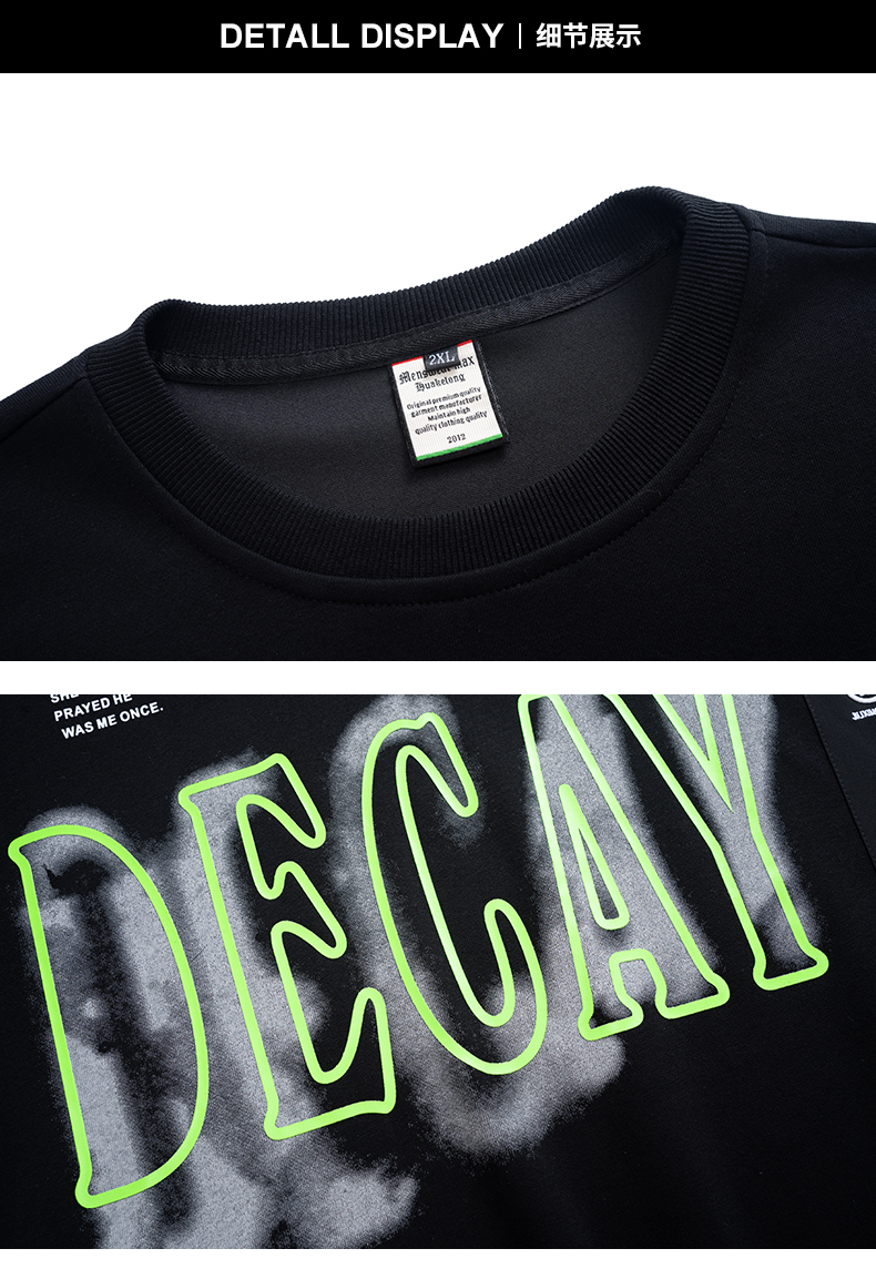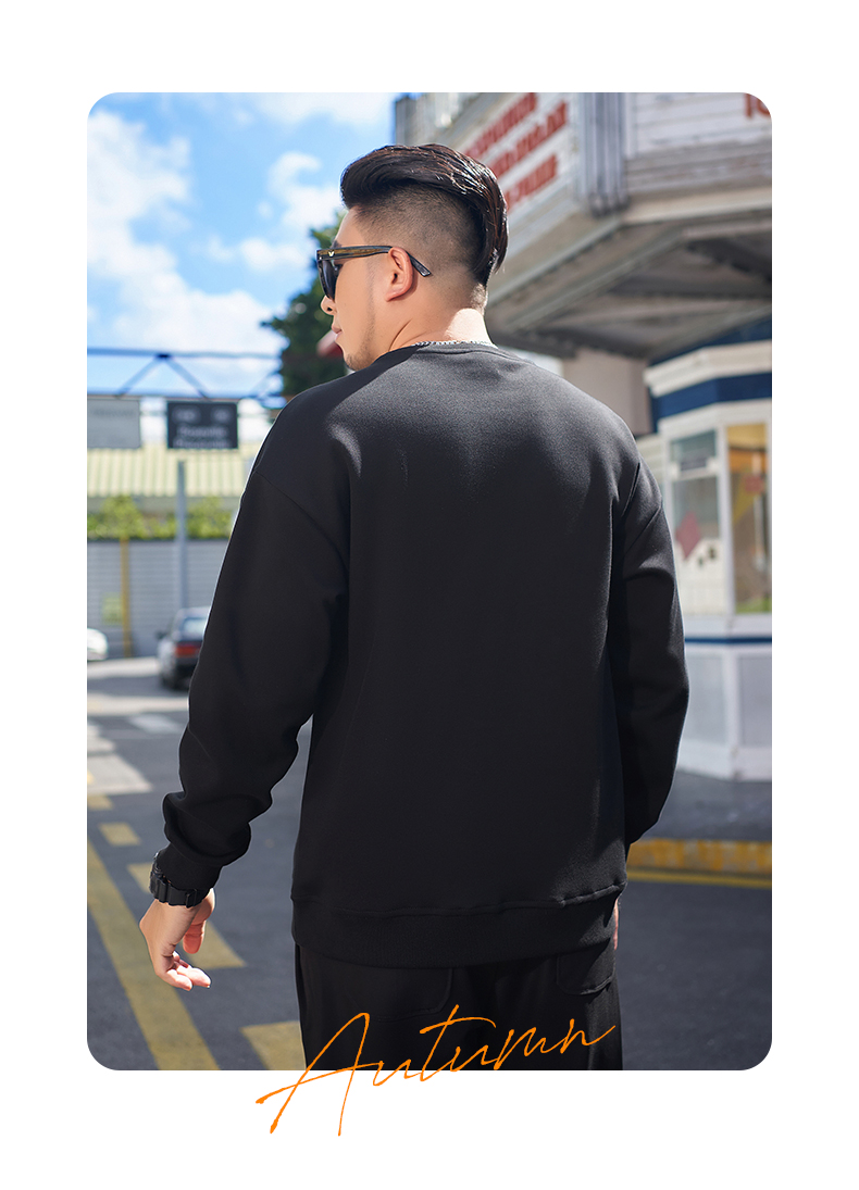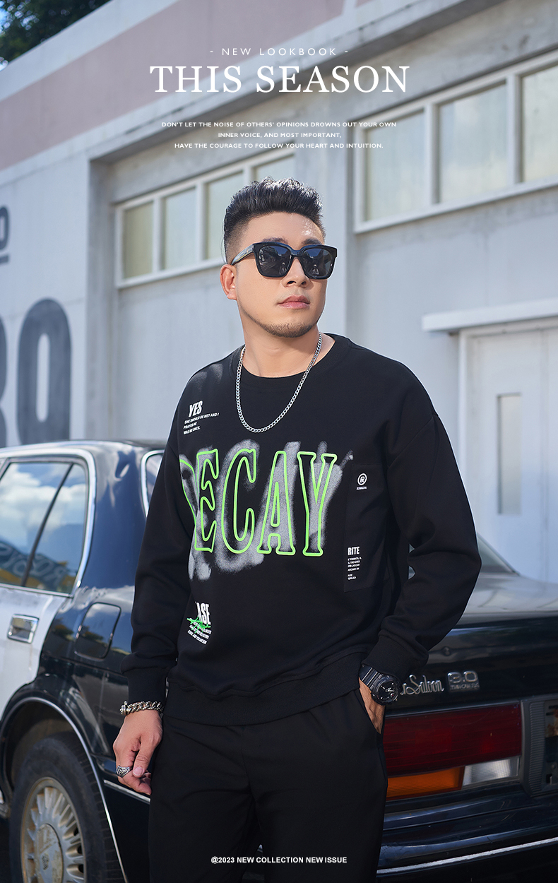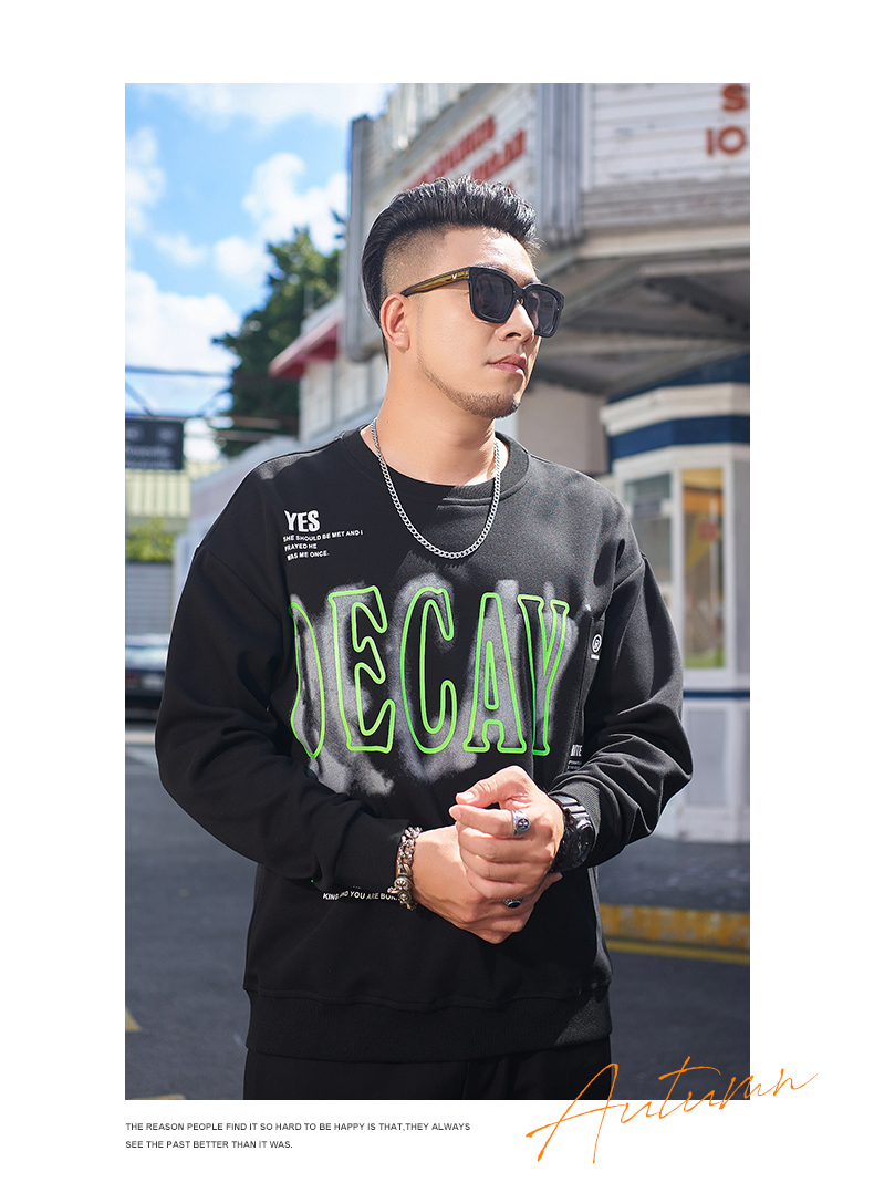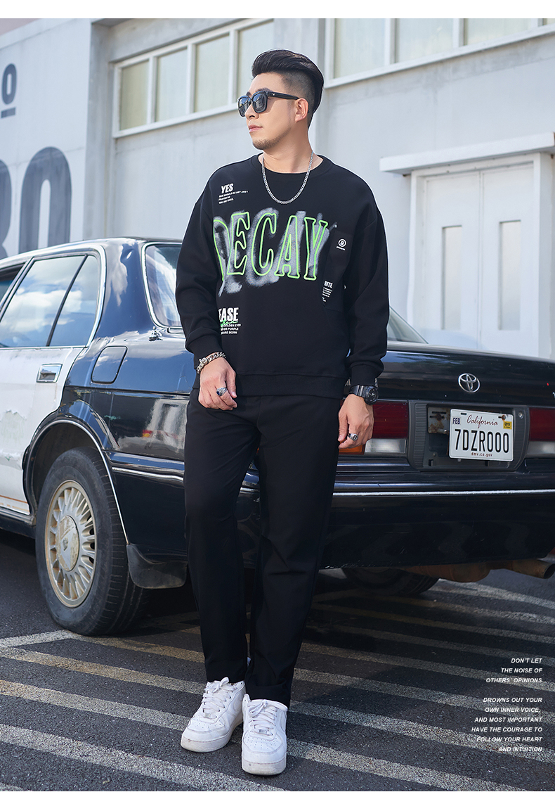 【一口价】【新款DMH】大依优型大码圆领印花卫衣长袖弹力加肥加大胖子上衣男士T恤肥佬打底男装