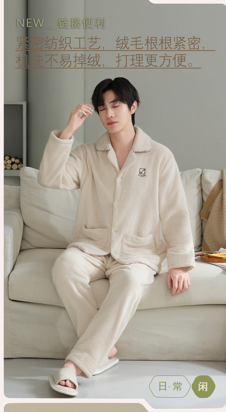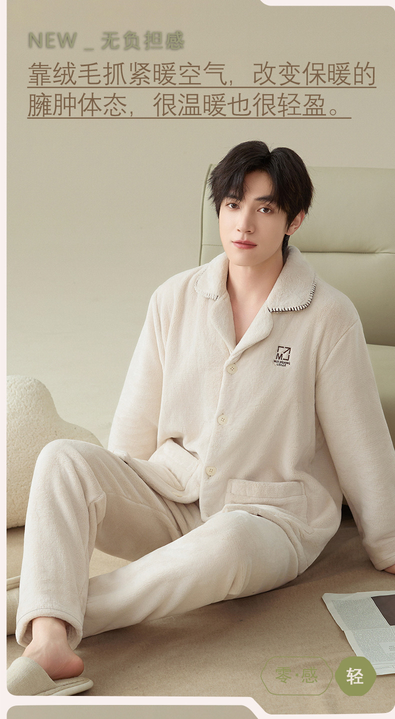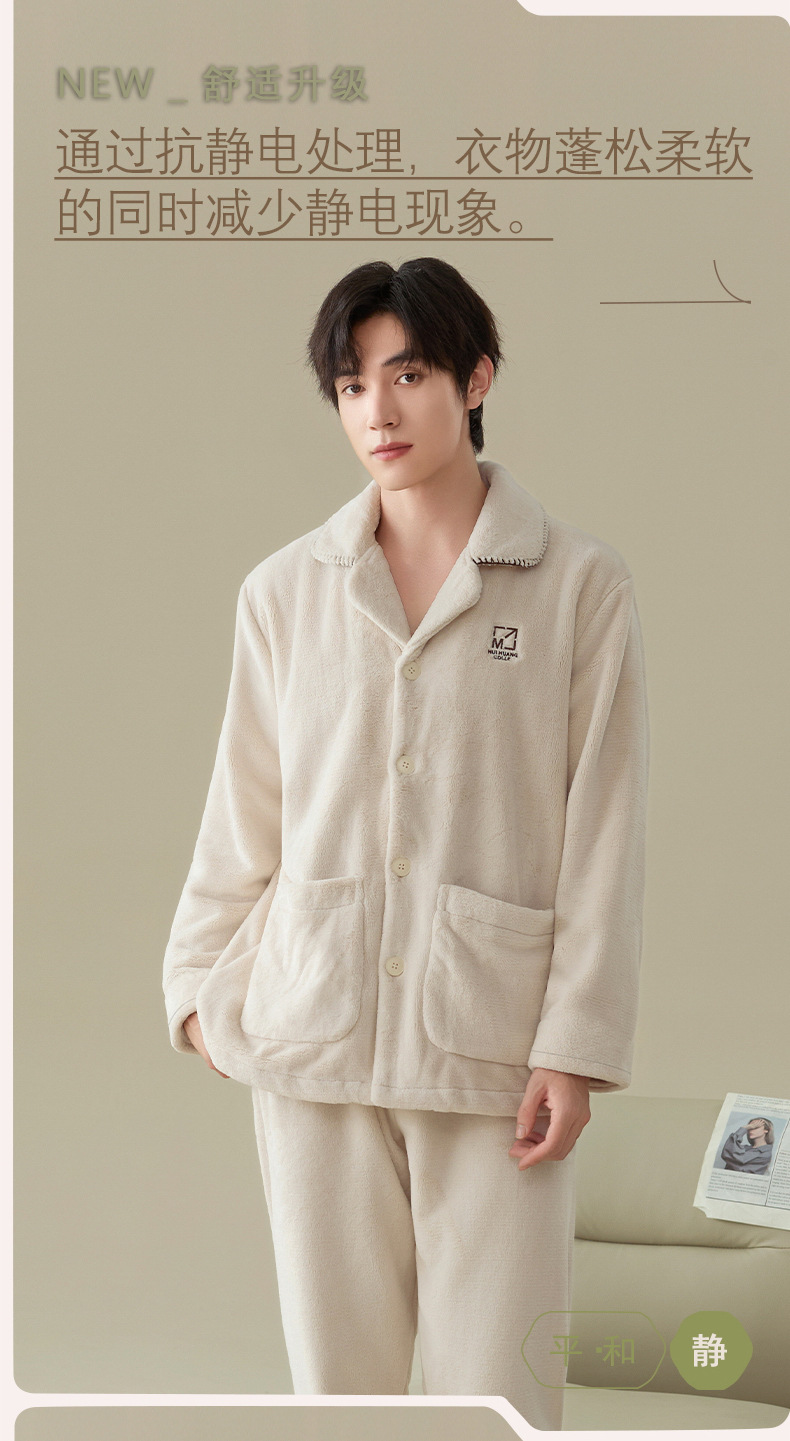雀说 冬季保暖加绒加厚柔软珊瑚绒男士睡衣 商品图4