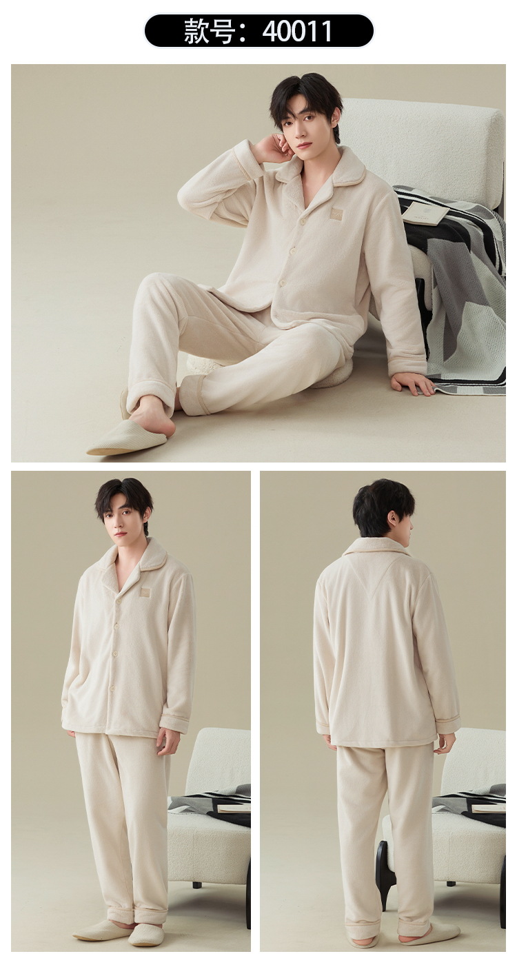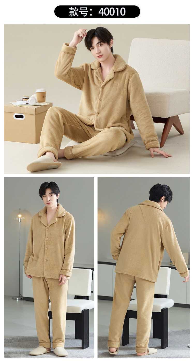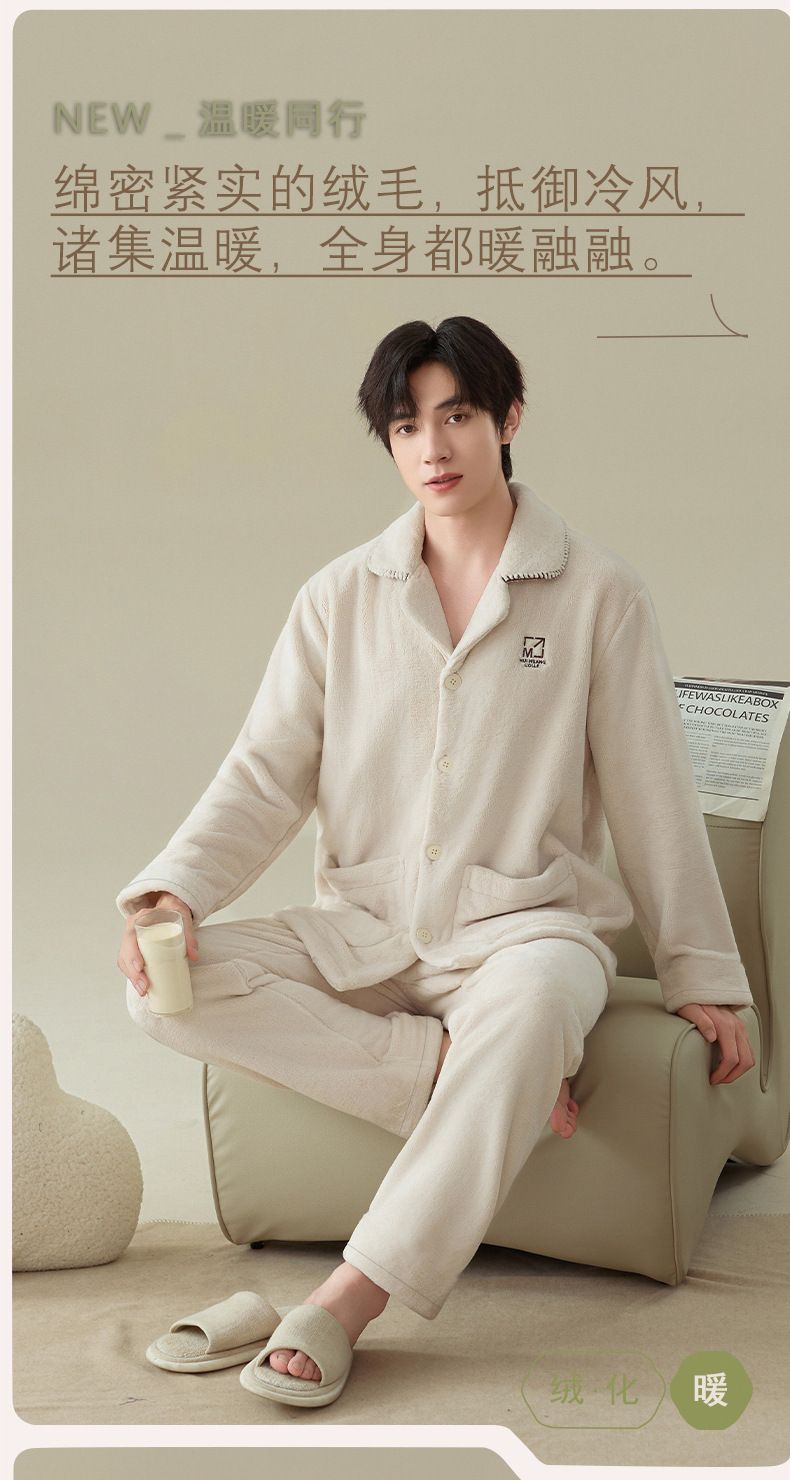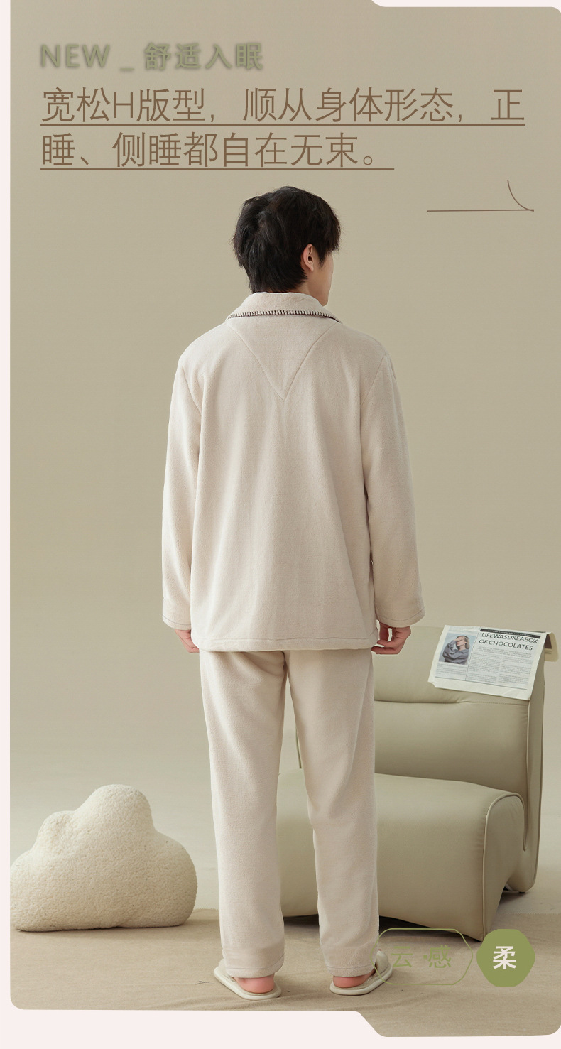 雀说 冬季保暖加绒加厚柔软珊瑚绒男士睡衣 商品图4