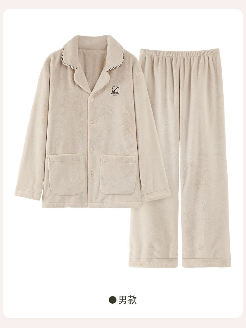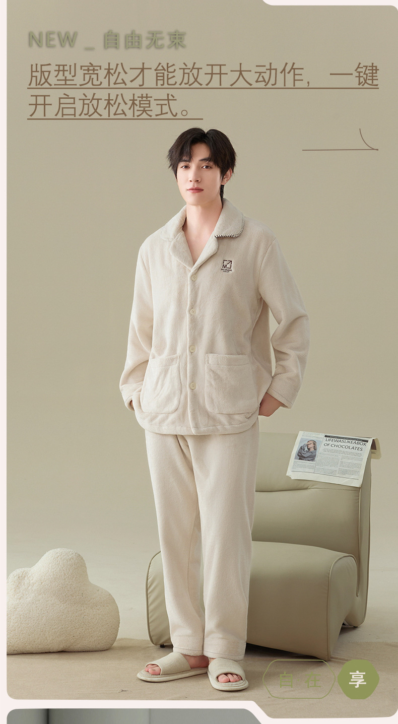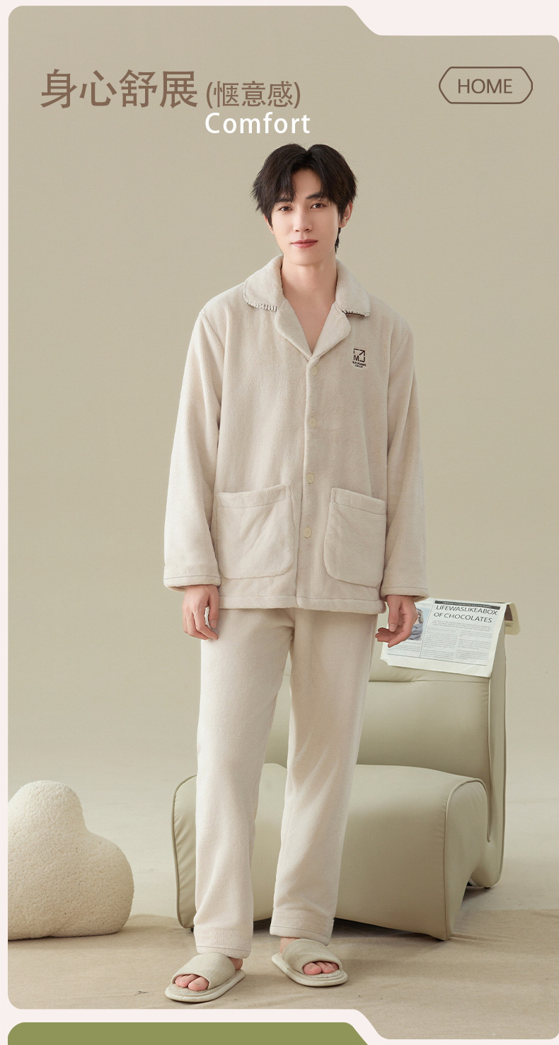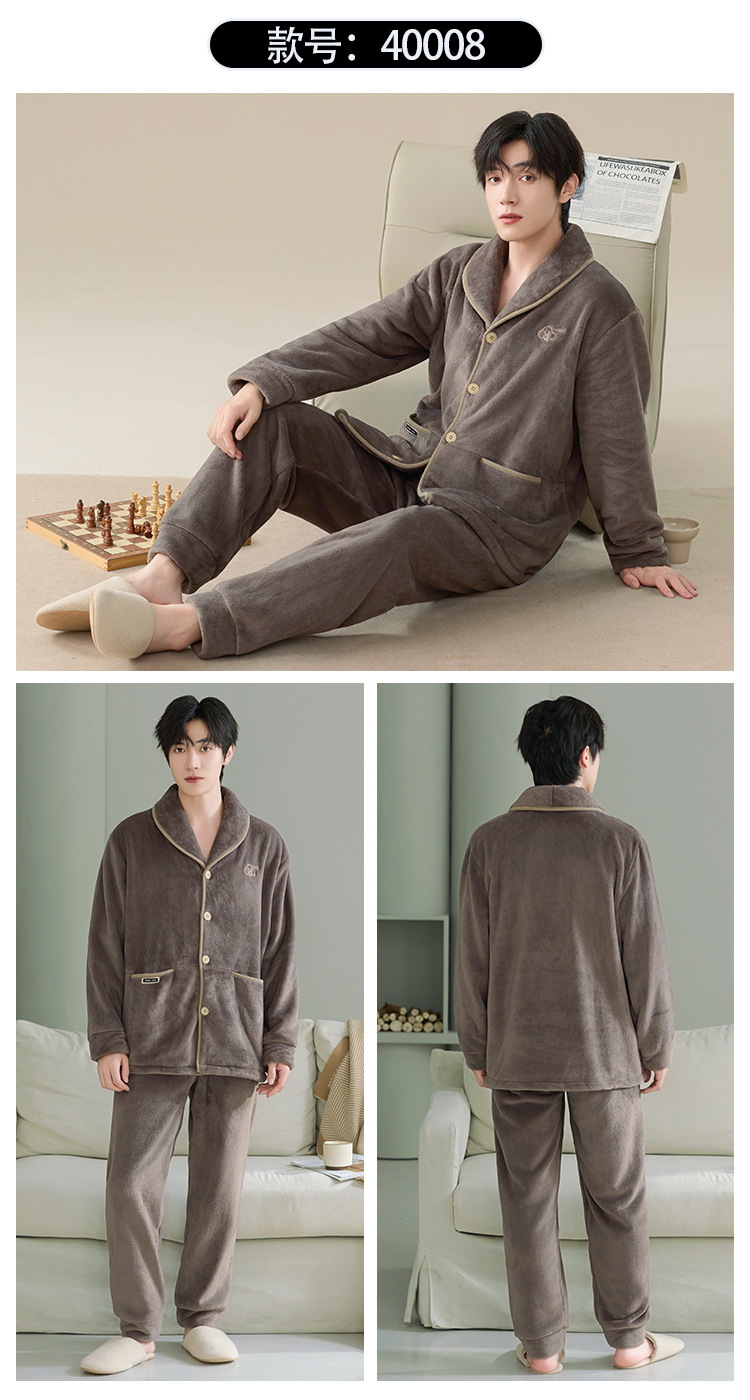 雀说 冬季保暖加绒加厚柔软珊瑚绒男士睡衣