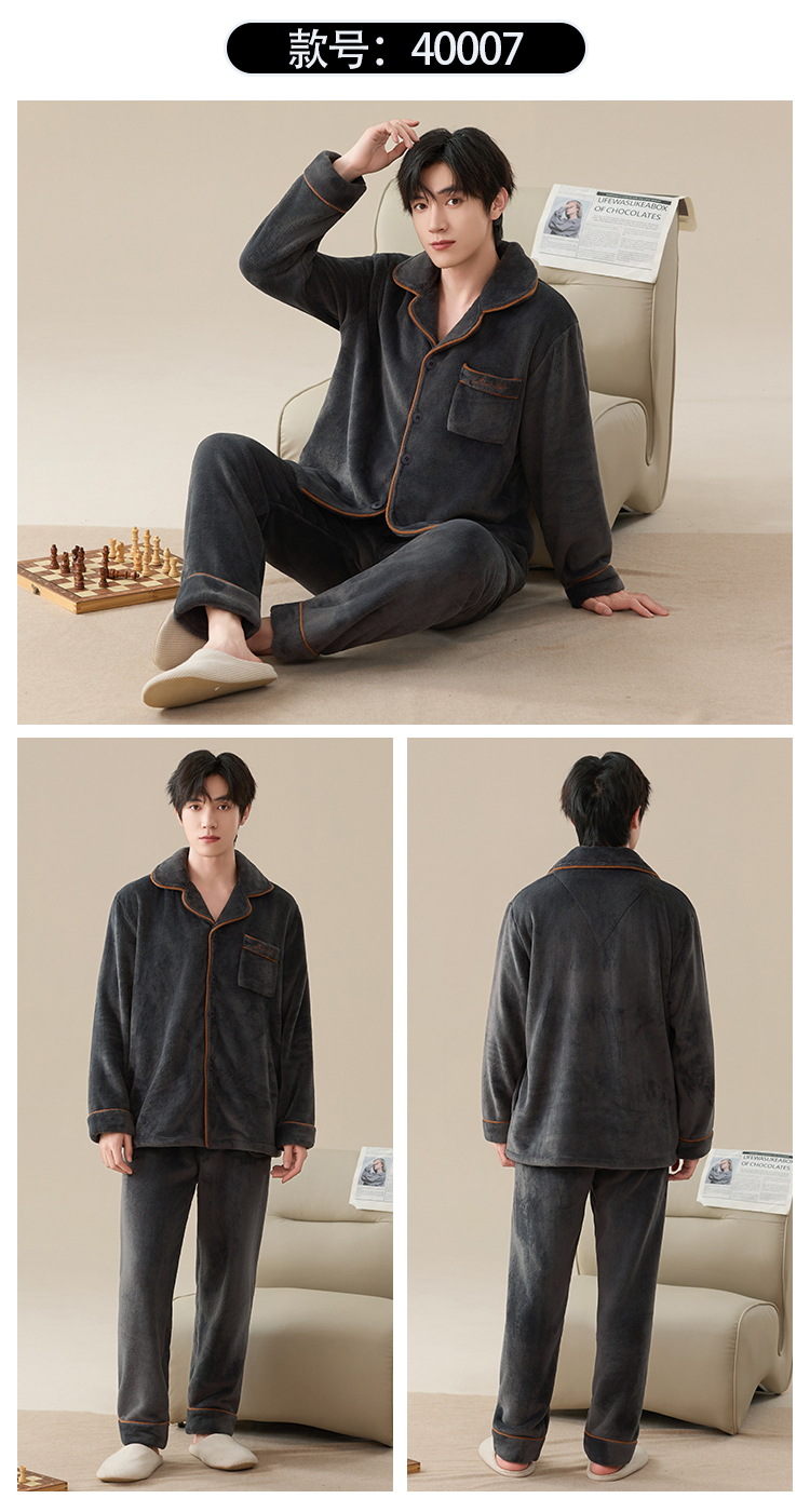 雀说 冬季保暖加绒加厚柔软珊瑚绒男士睡衣 商品图0