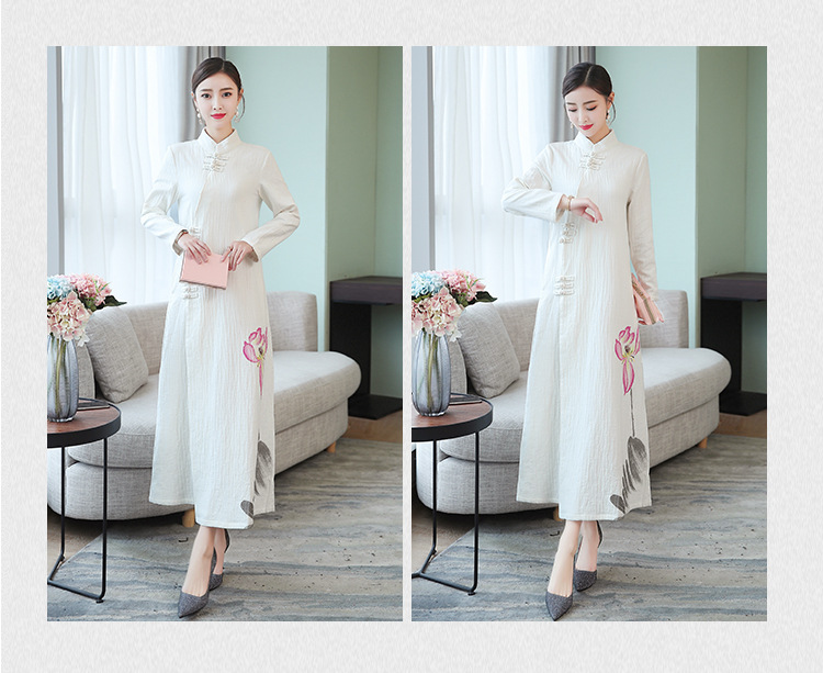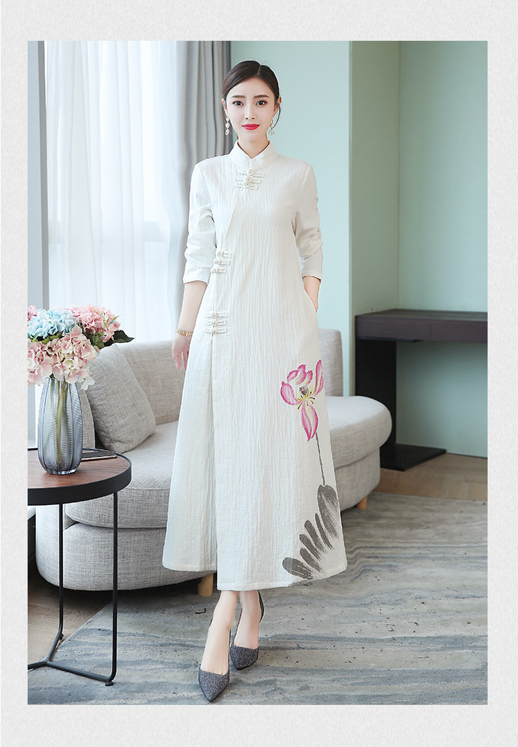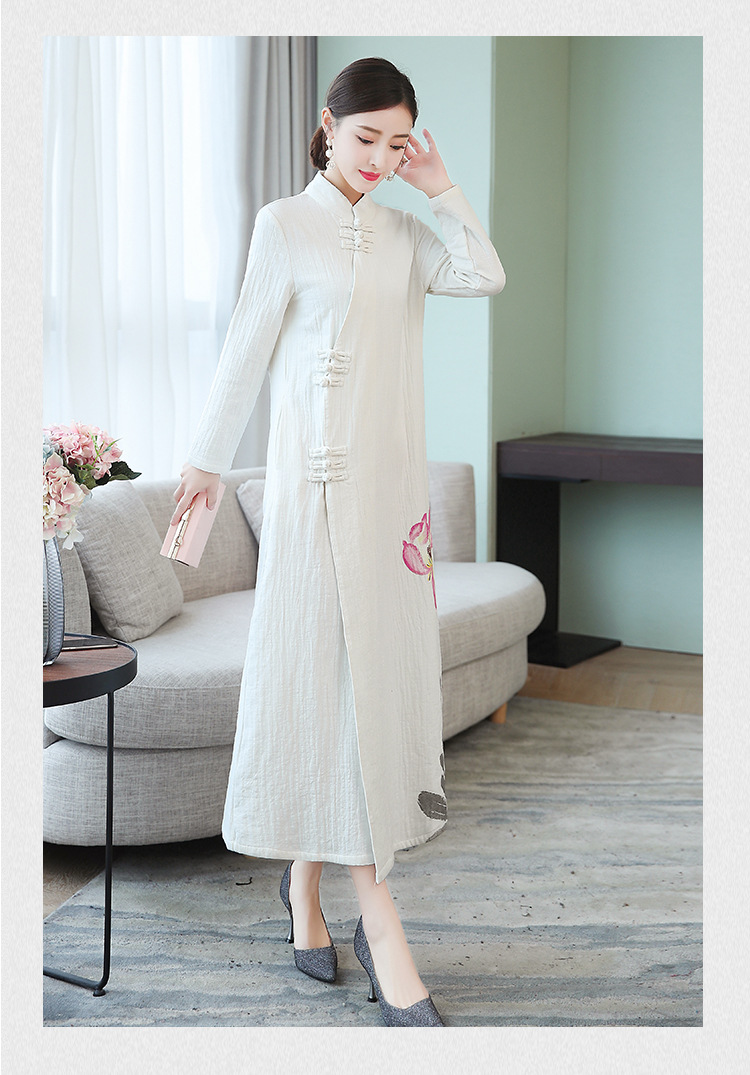 新款禅意加绒加厚手绘棉麻茶服 XY-7098#