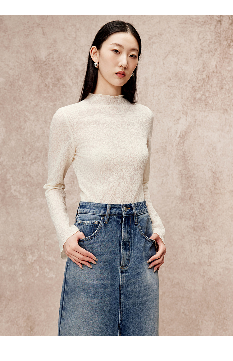 VIMAGE纬漫纪冬季新款羊毛立领气质打底修身显瘦针织衫V2213827