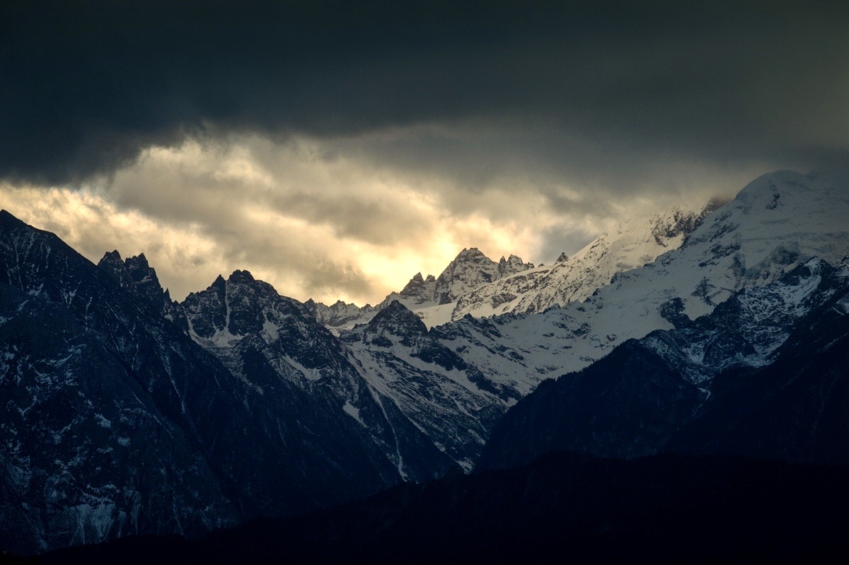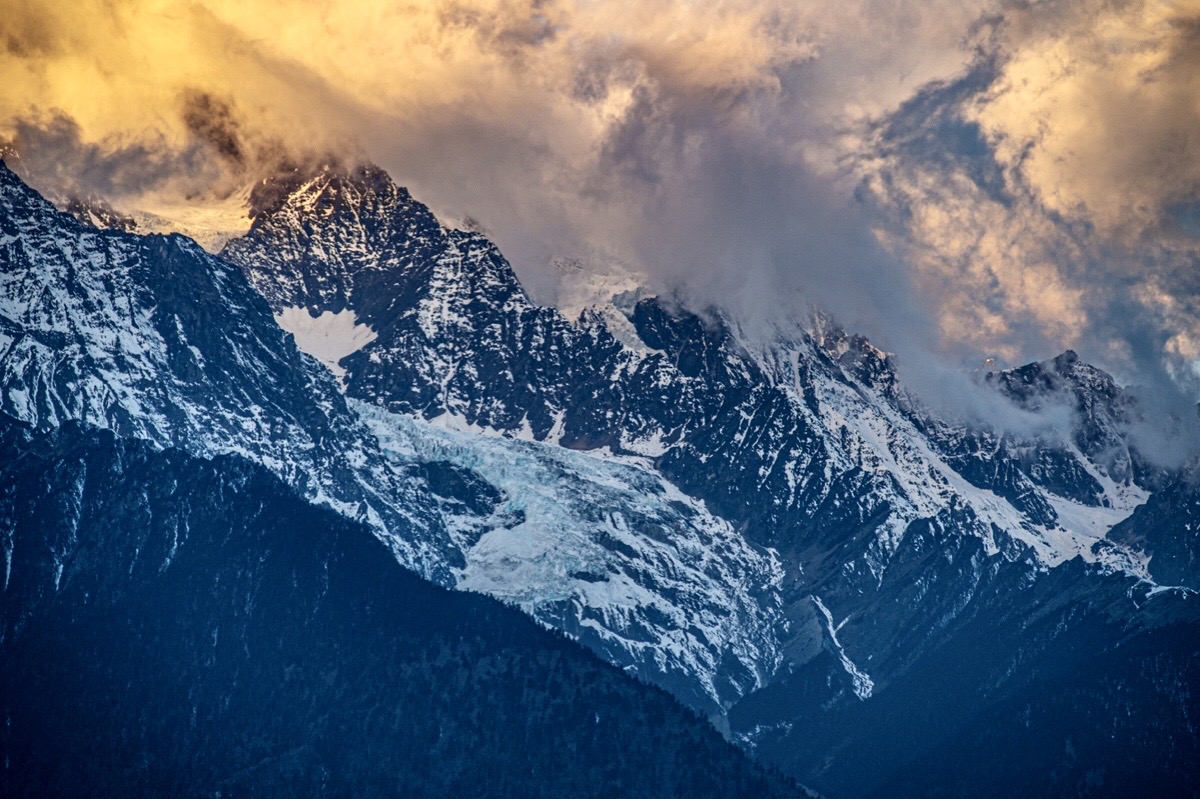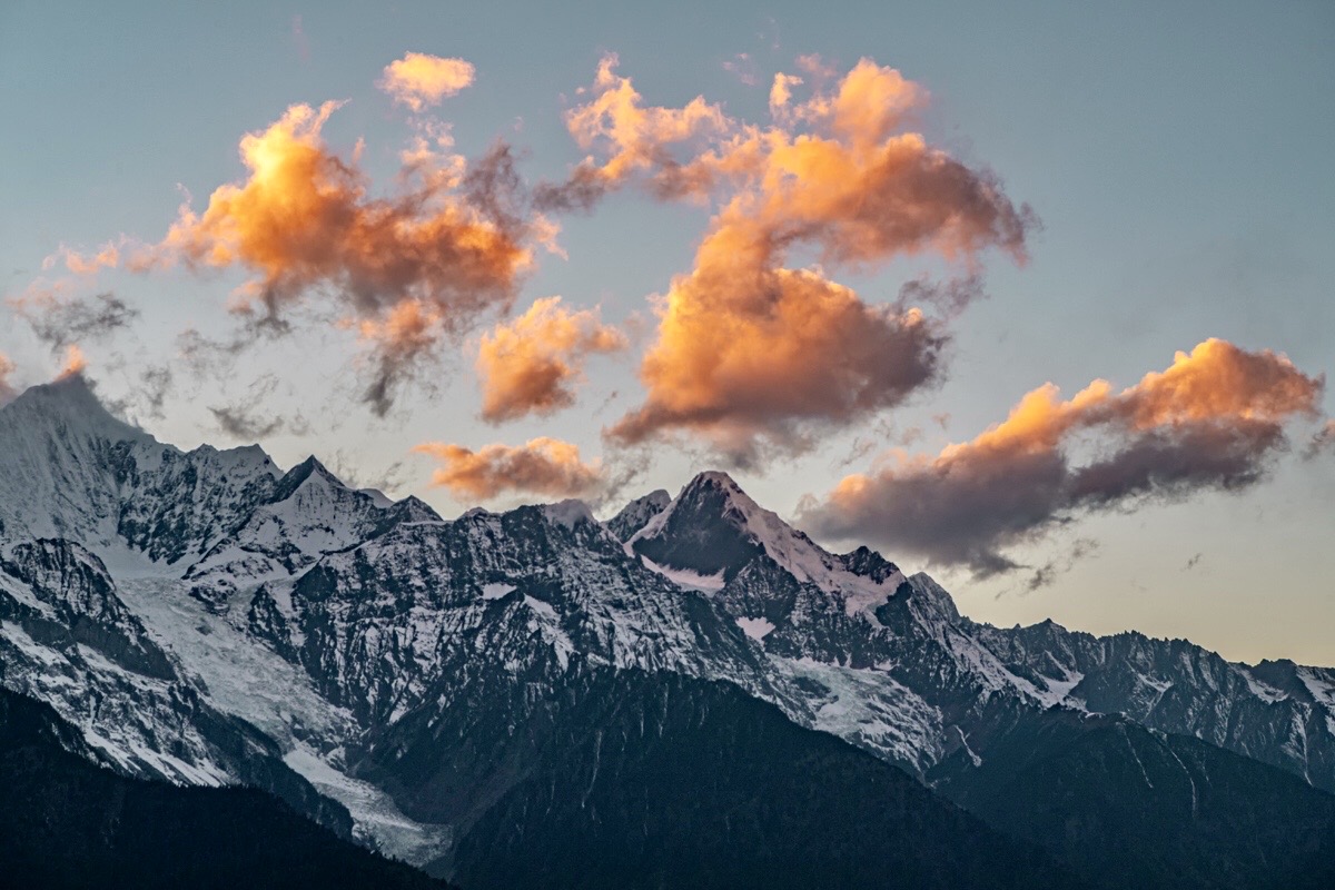 上午出发前往飞来寺,途经奔子栏,沿途拍摄。下午抵达飞来寺,傍晚拍摄梅里雪山日落。