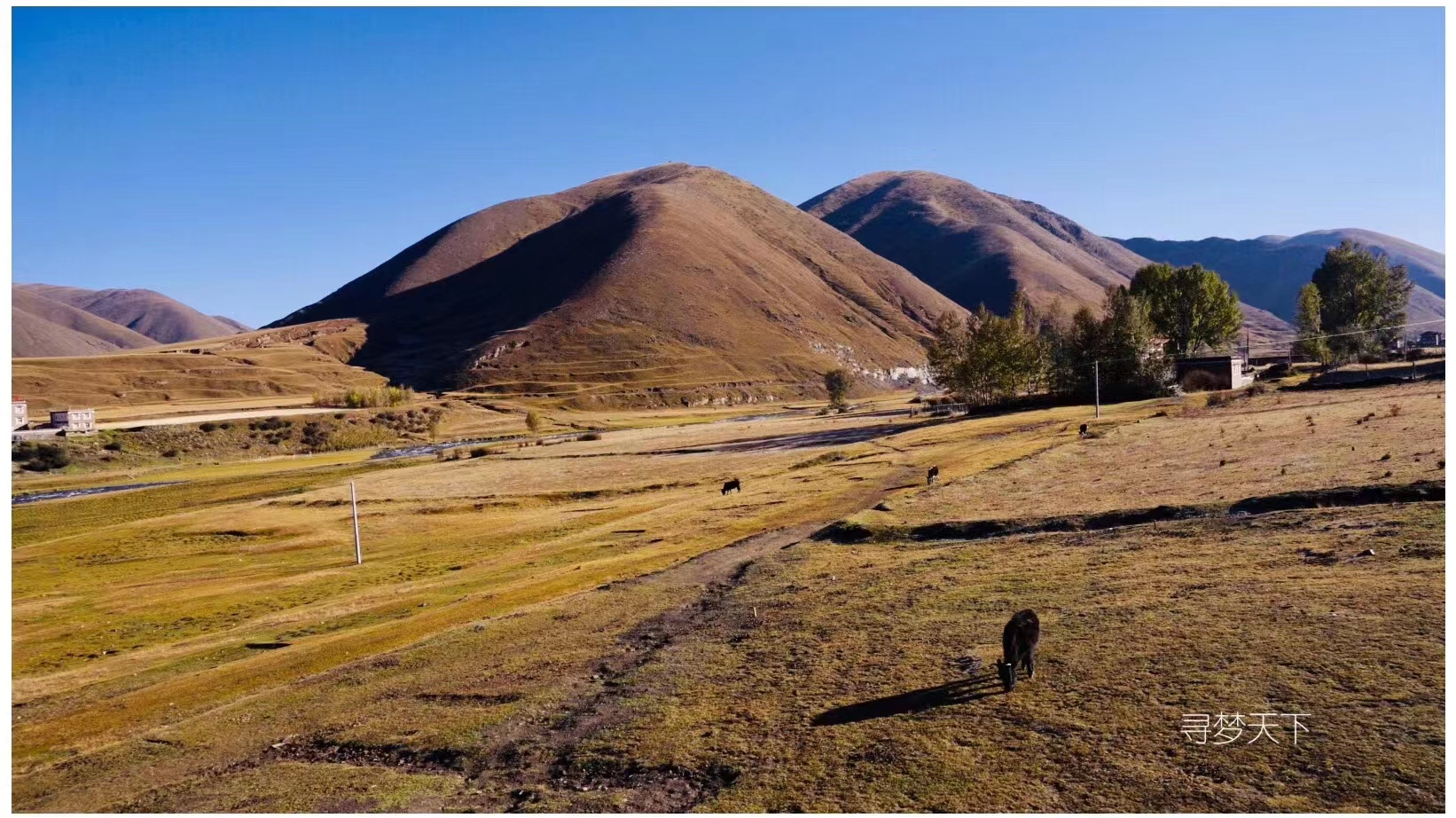 “摄影的天堂”,光与影的世界。是一片如诗如画的世外桃源。神奇的光线,无垠的草原,弯弯的小溪,金黄的柏杨,山峦连绵起伏,藏寨散落其间,牛羊安详地吃草……