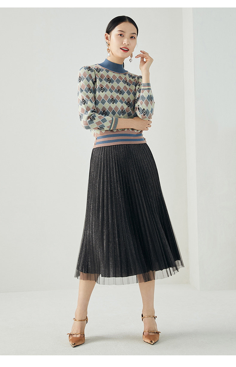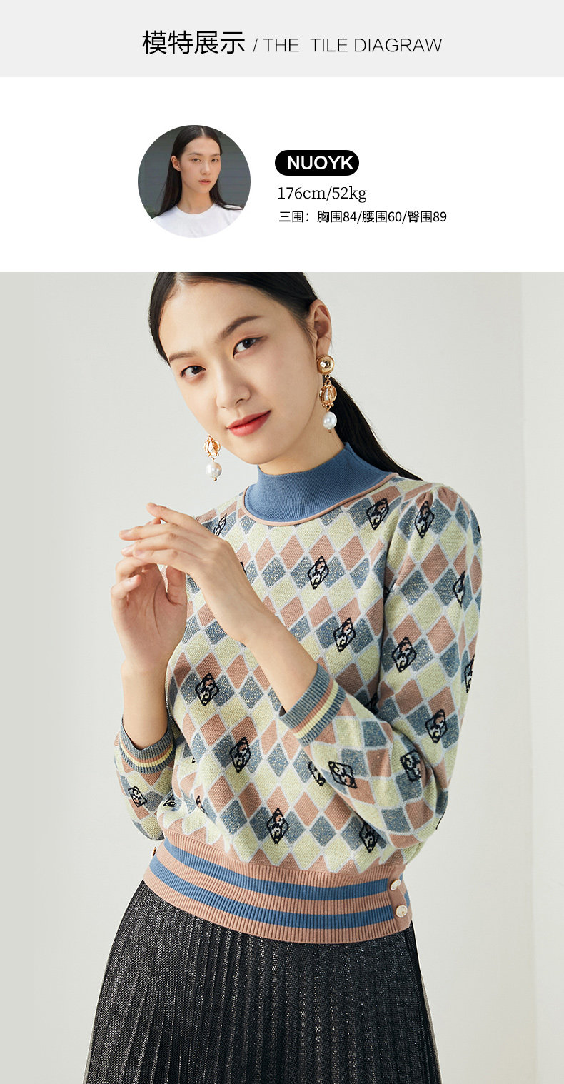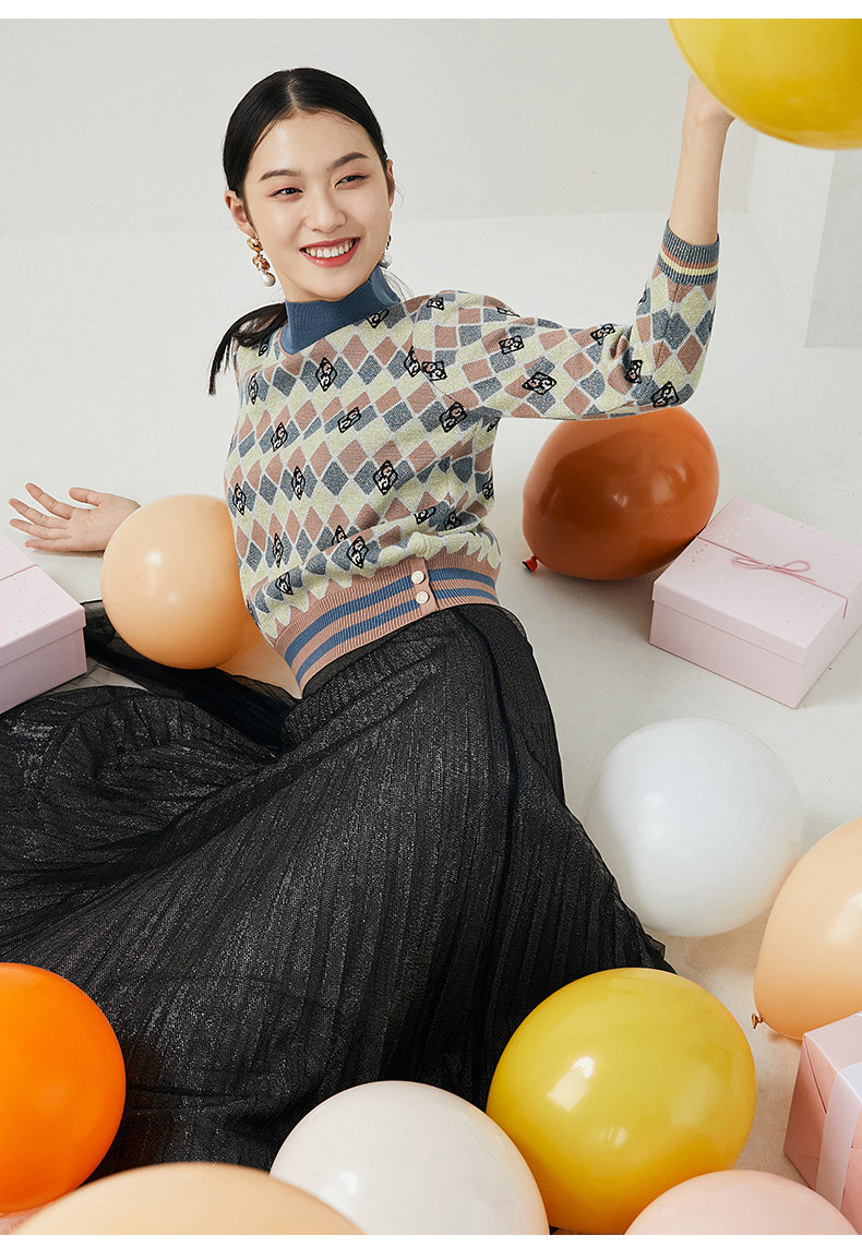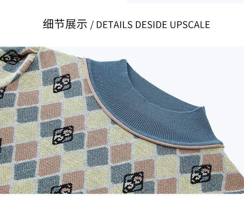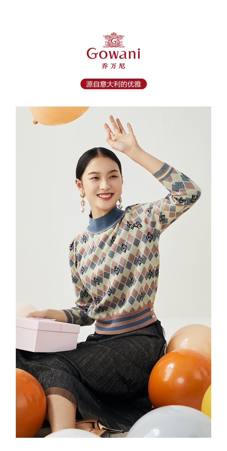 乔万尼秋冬新款羊毛撞色休闲舒适减龄设计感百搭立领套头毛衫ES4M413