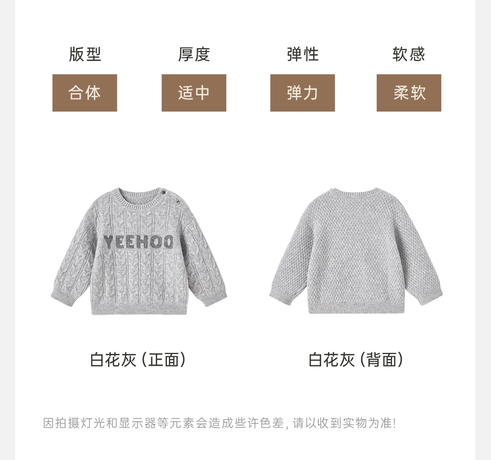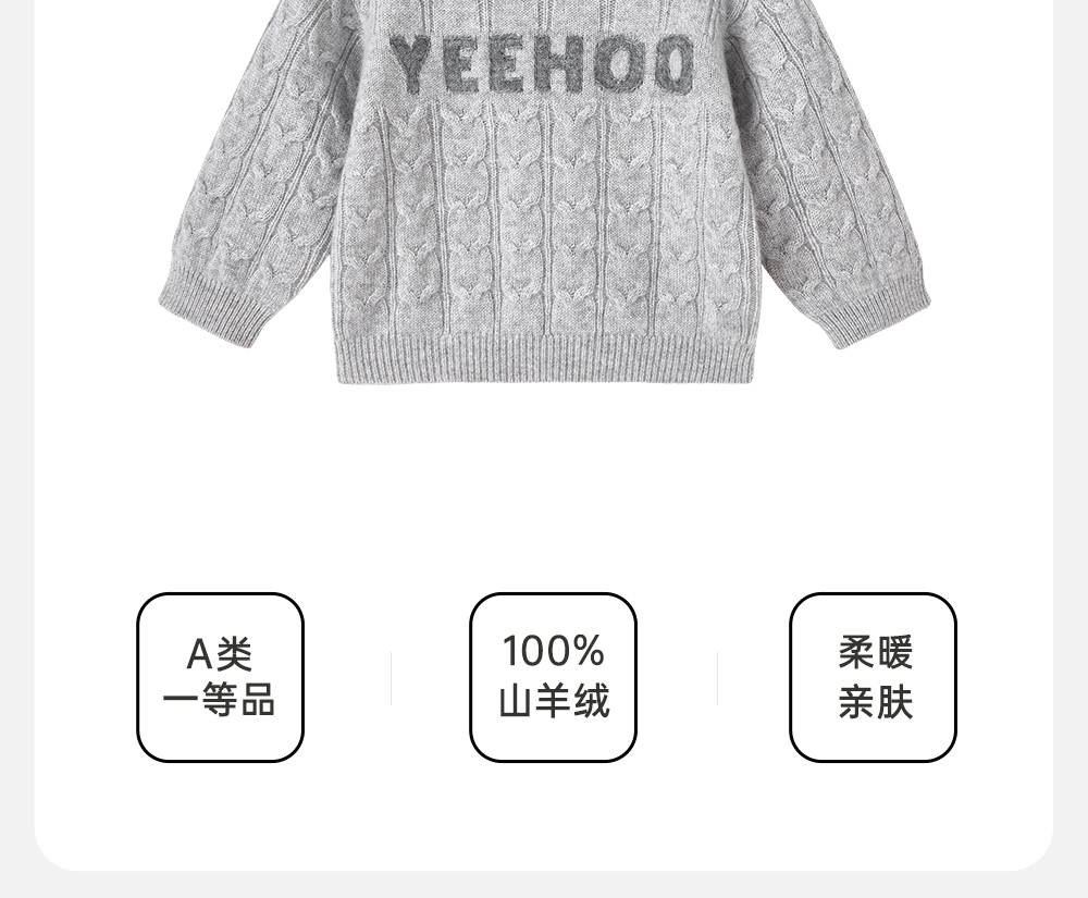 【高定系列】英氏儿童高定纯羊绒衫春秋季男童毛衣百搭休闲针织衫