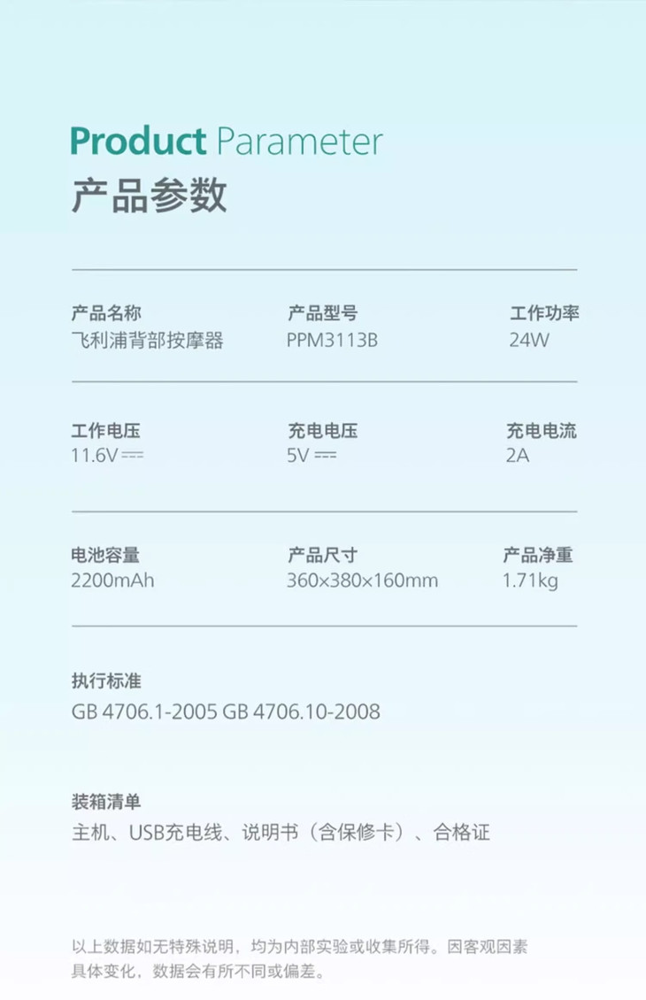 PHILIPS飞利浦3D萌爪背部按摩器(PPM3113B)