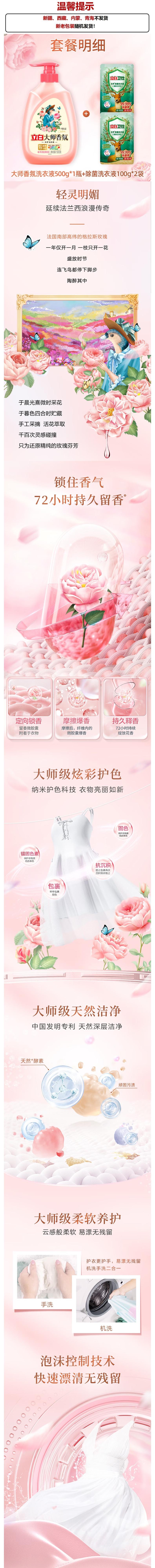 立白 大师香氛玫瑰洗衣液500g*1瓶+卫仕洗衣液100g*2袋 BODW12P0D