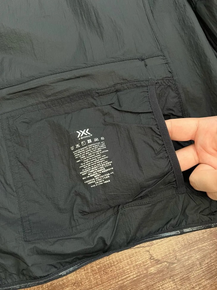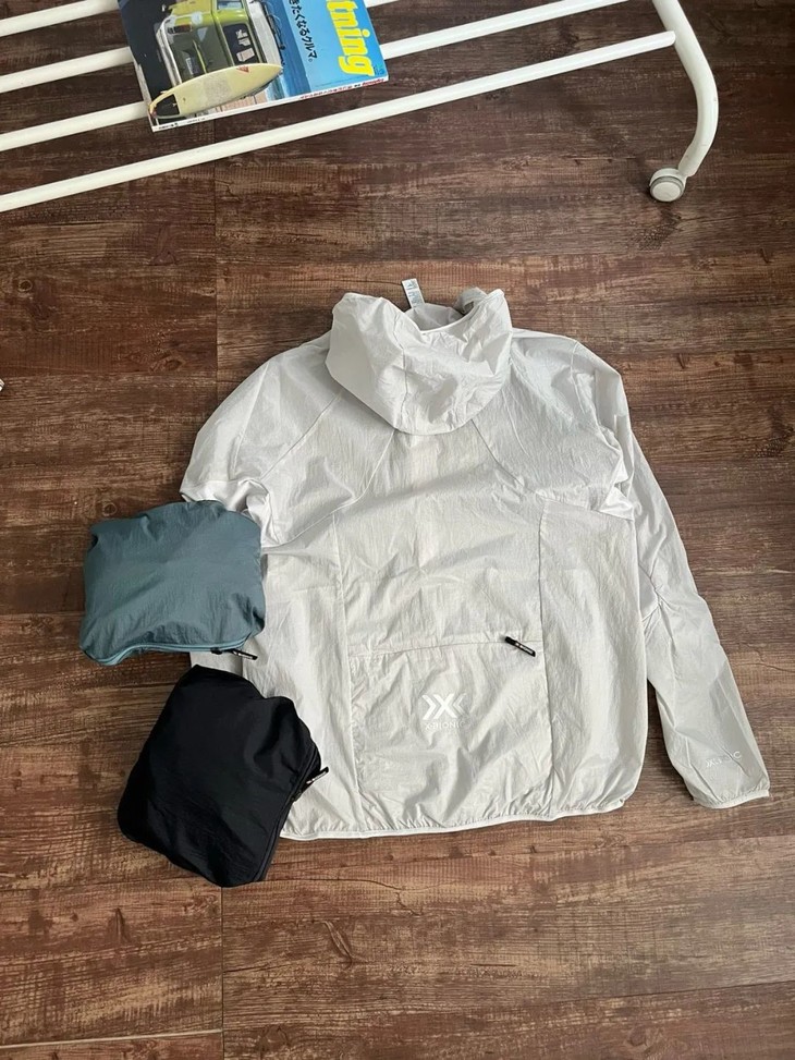 X-BIONIC XJM-23607N 飞逸轻量防风连帽防晒皮肤衣风壳夹克,线上旗舰店同步在售2490。一件可以满足你春夏出游 户外运动 登山 徒步 攀岩的功能性需求,也可以都市休闲 通勤穿搭的防晒轻量化皮肤衣。 薄如蝉翼!超轻量化科技面料,单件重量100克出头!UPF40+防晒性能!后背有拉链口袋设计,可以折叠收纳成一个小包,方便户外携带!腋下两侧弹力面料拼接设计,便于运动时大幅度动作的延展!两侧拉链口袋设计!胸口及手臂XB反光印花点缀! 帽檐到袖口到下摆,定制logo弹力细包边设计,防风效果拉满! 纯原订单,喜欢高逼格户外防晒装备的兄弟,一定要冲这一款!珊珊而来的好货!