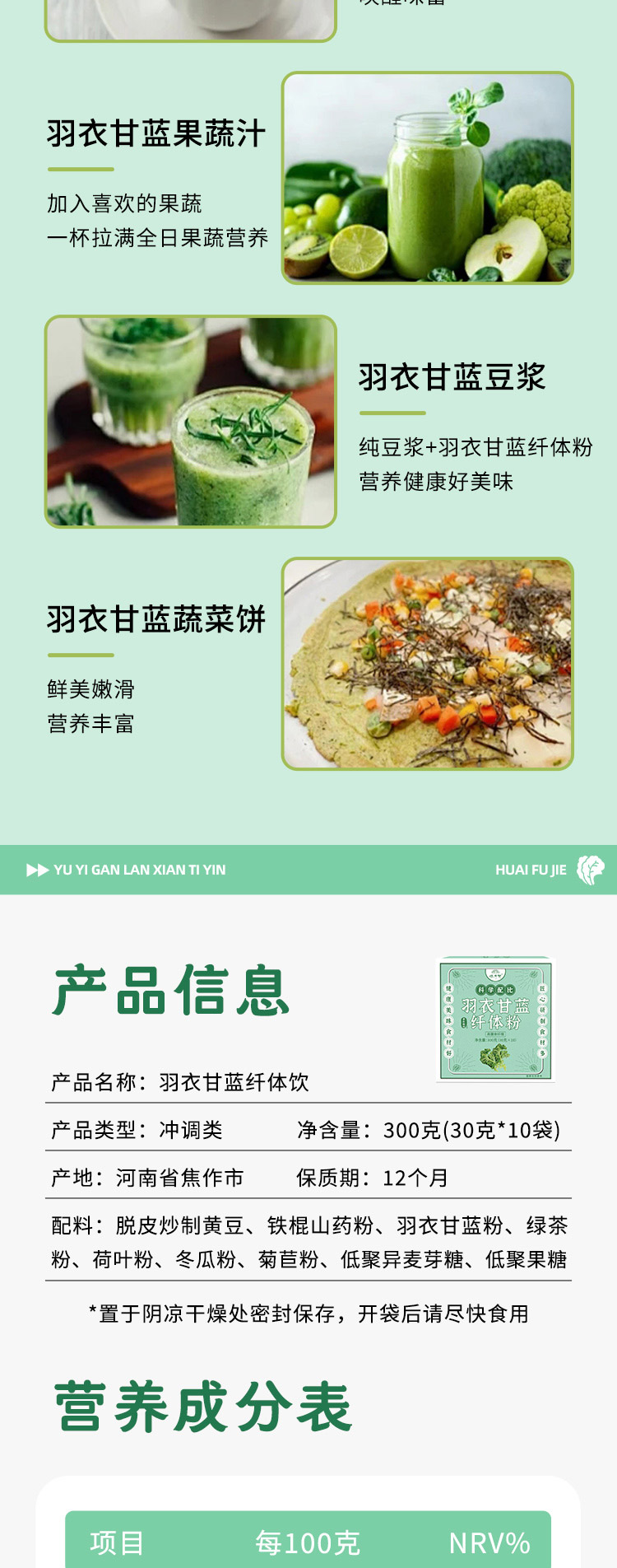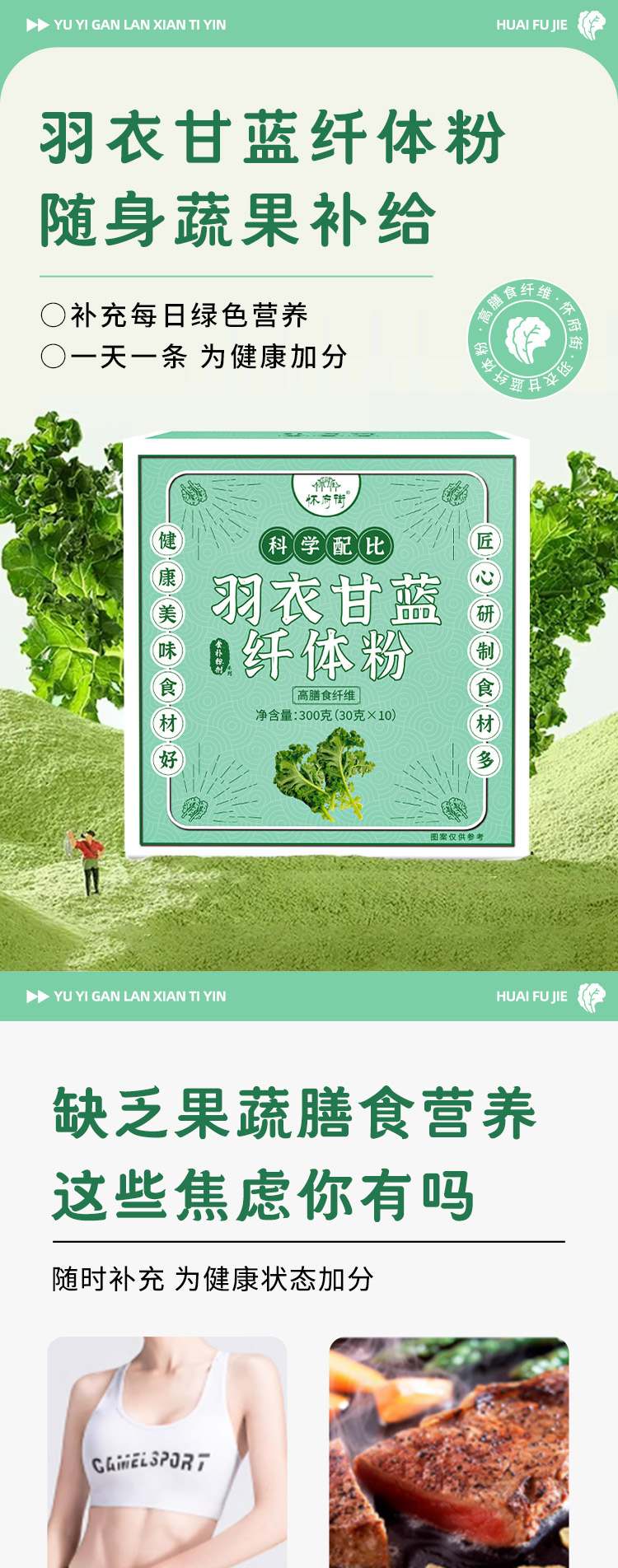 怀府街 | 羽衣甘蓝纤体粉 随身蔬果营养补给 高膳食纤维口感丝滑即冲即饮30g*10条