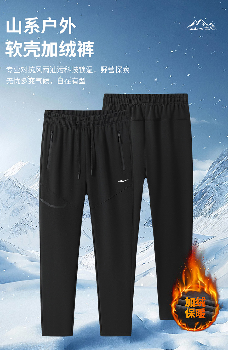 【高密摇粒绒 防泼防风 锁温御寒】鸿星尔克新款户外休闲运动软壳裤(EK-HM2265)