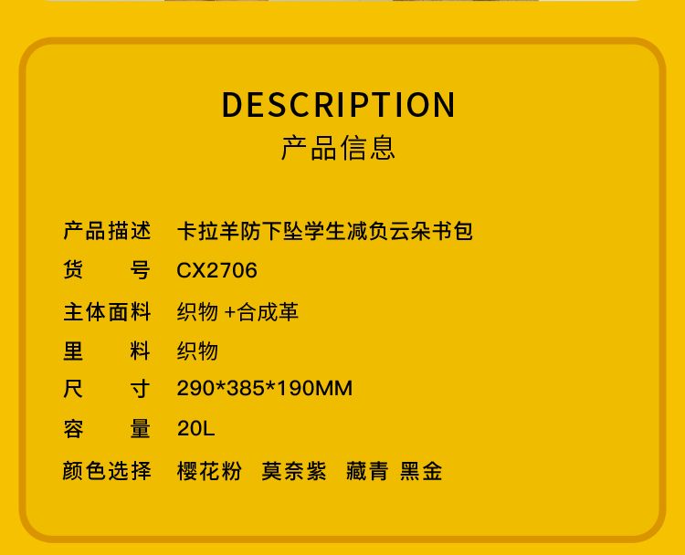 【宝可梦正版联名】卡拉羊六维减负22L小学3-6年级云朵书包CX2706