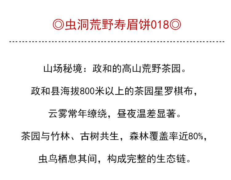 茶香记 虫洞荒野寿眉饼018 政和老白茶 高山荒野茶 果香清甜