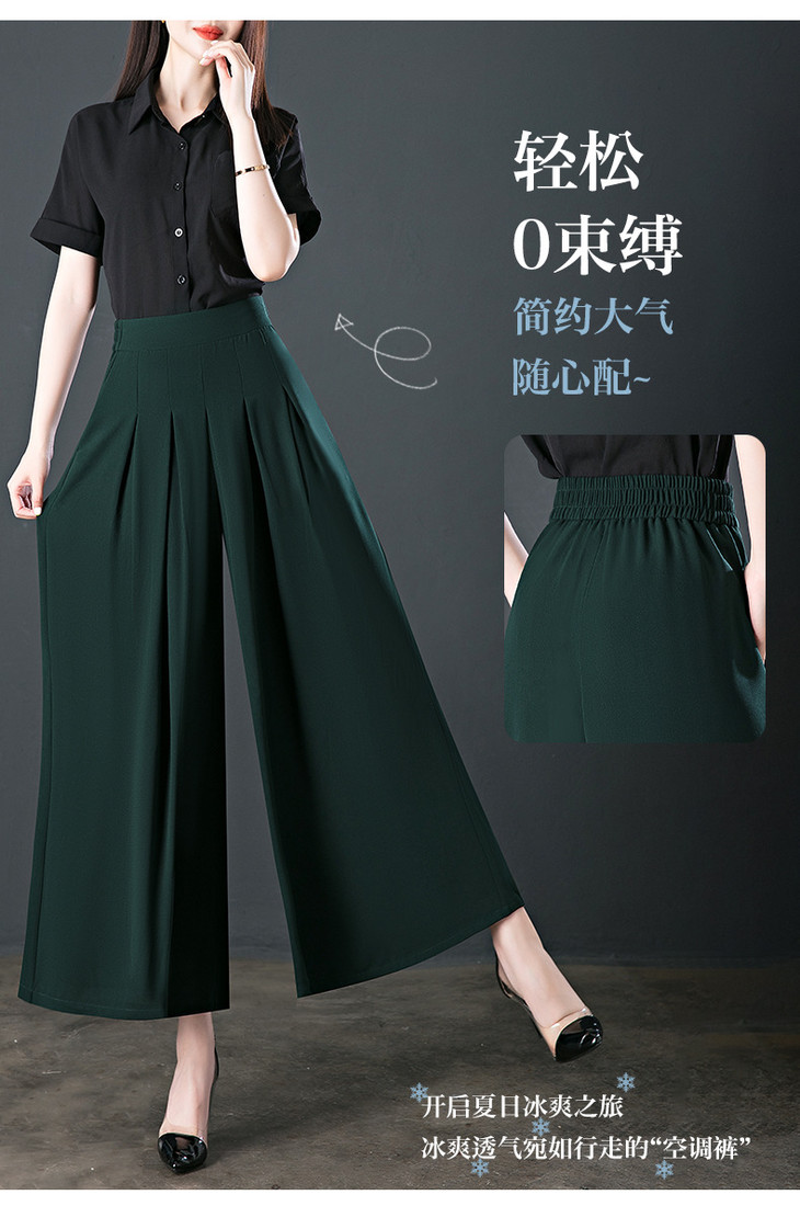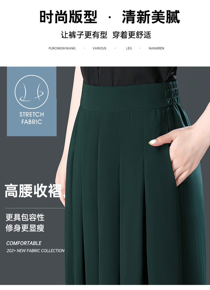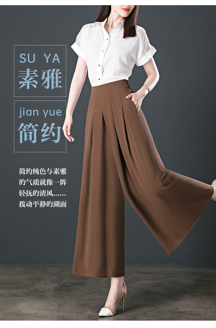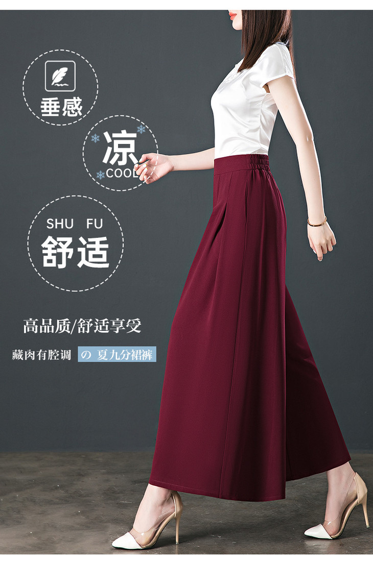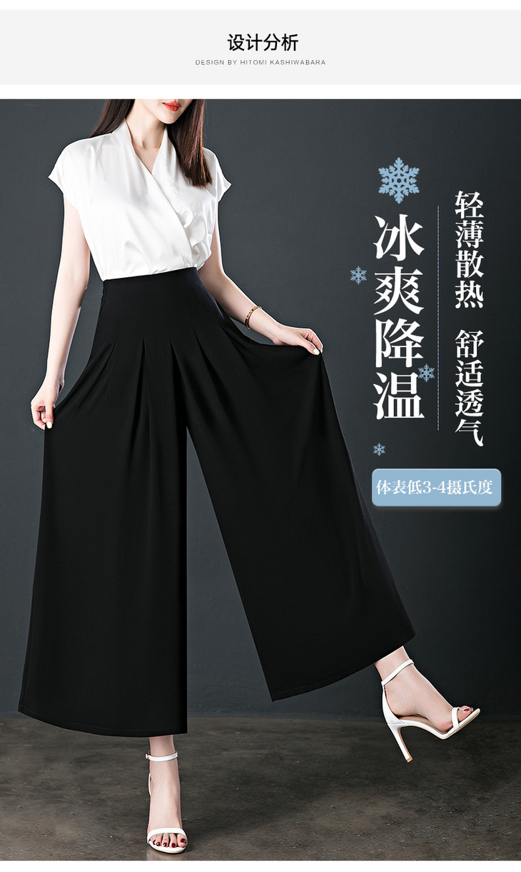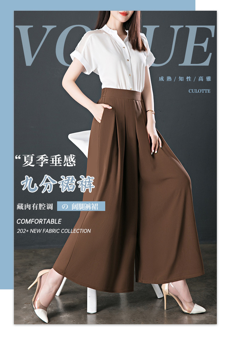 HSS 2580雪纺高腰阔腿裤薄款气质垂感休闲九分裤
