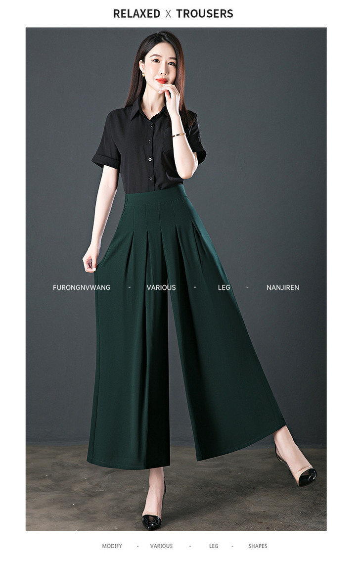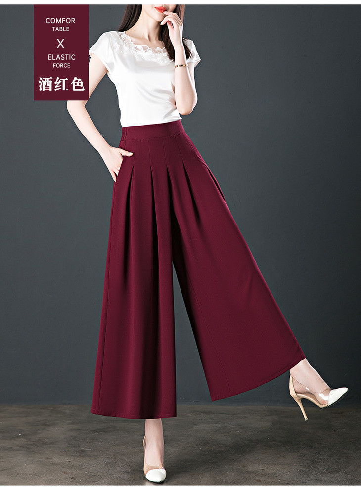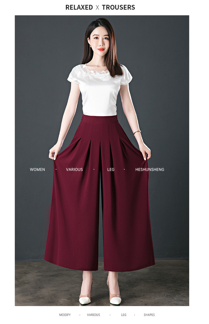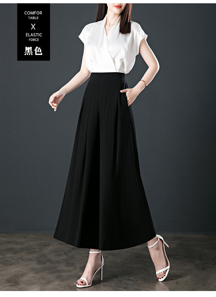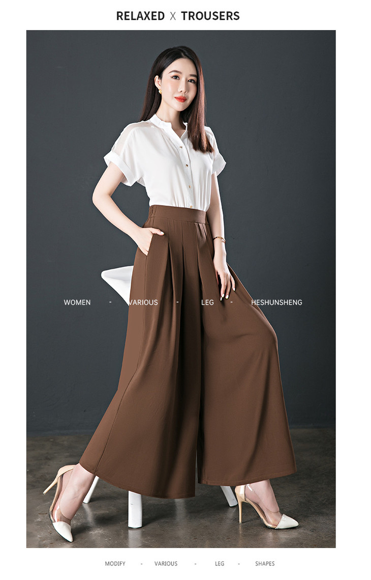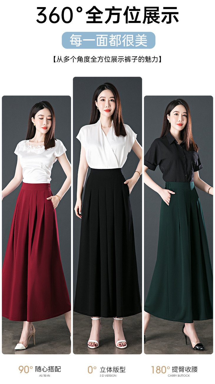HSS 2580雪纺高腰阔腿裤薄款气质垂感休闲九分裤