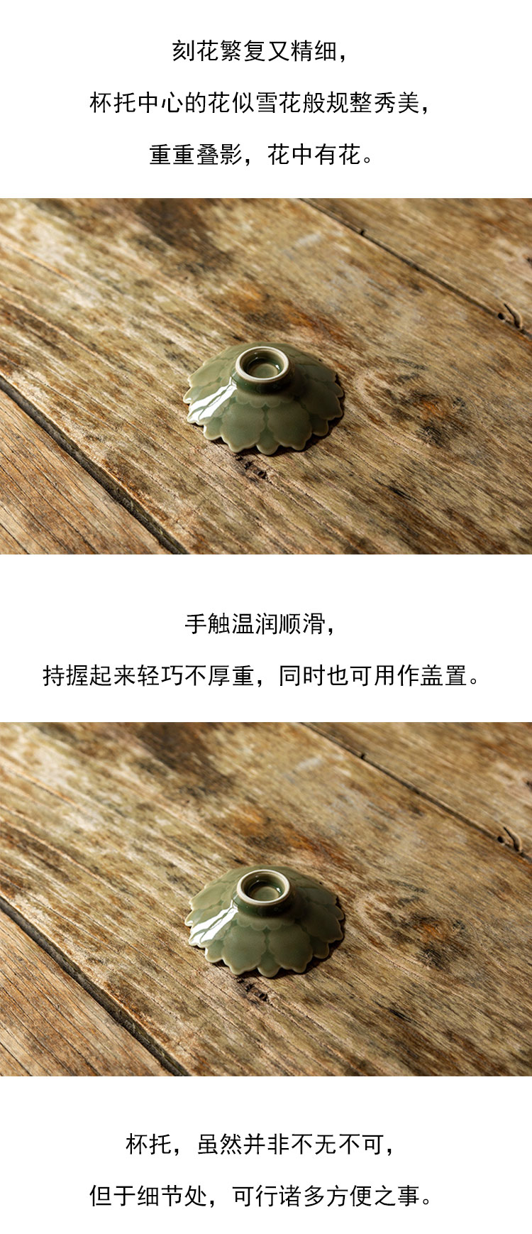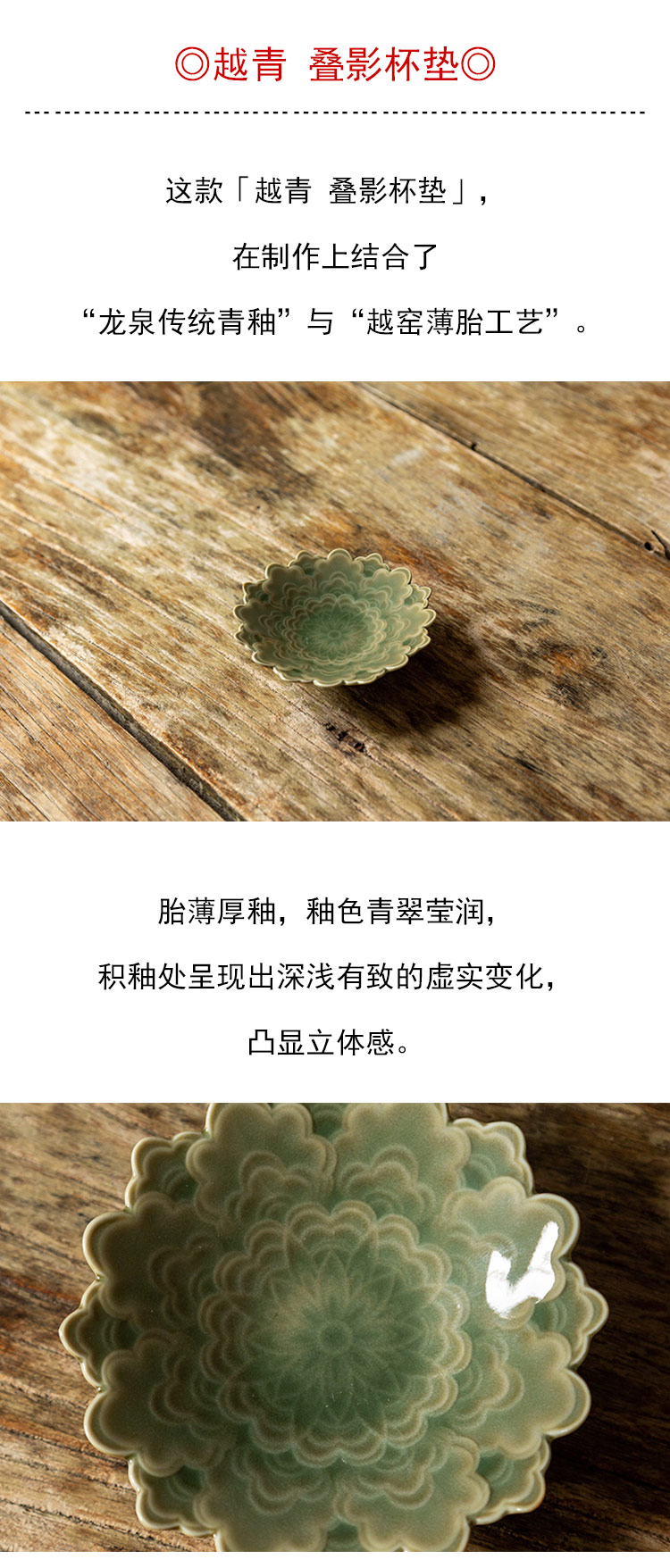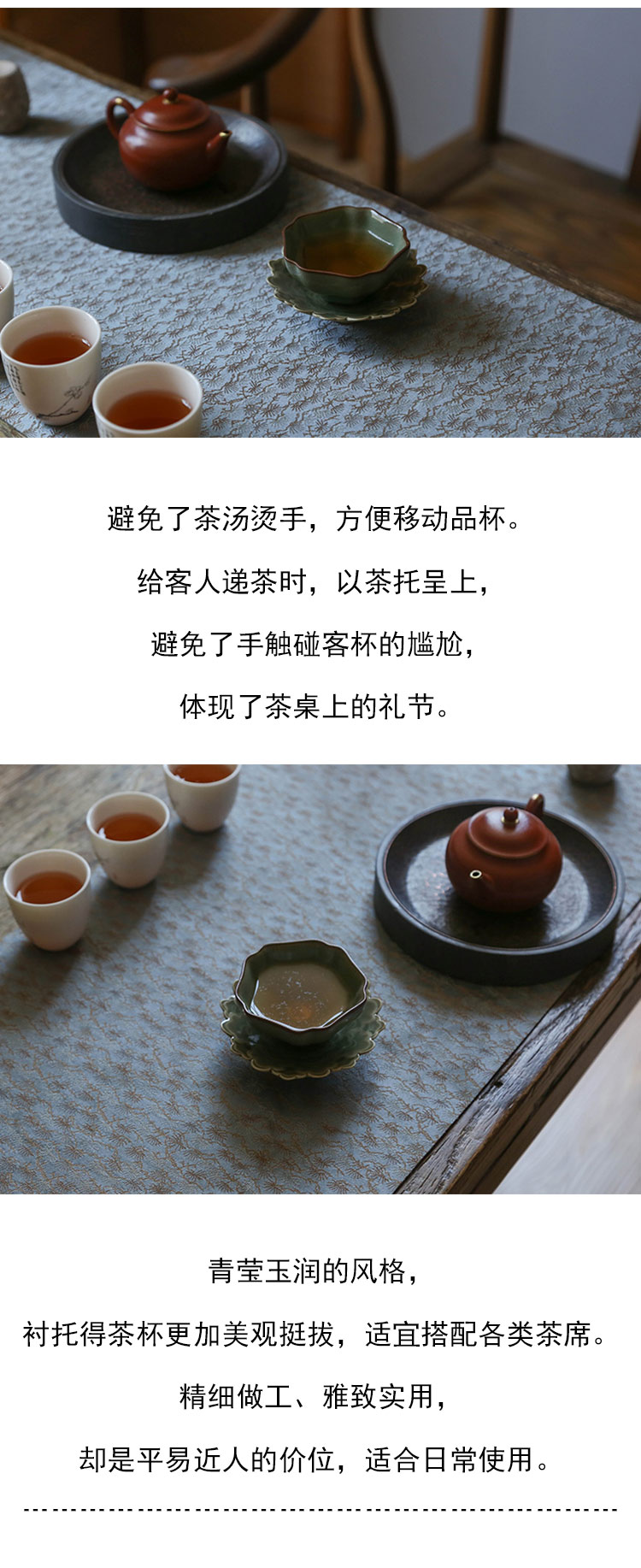 茶香记 越青 叠影杯垫 杯托 胎薄厚釉 青翠莹润 雅致实用