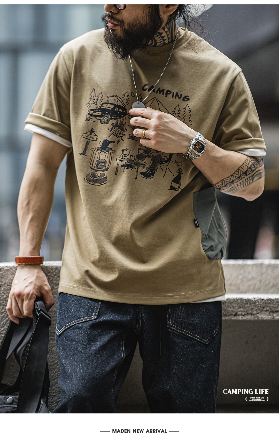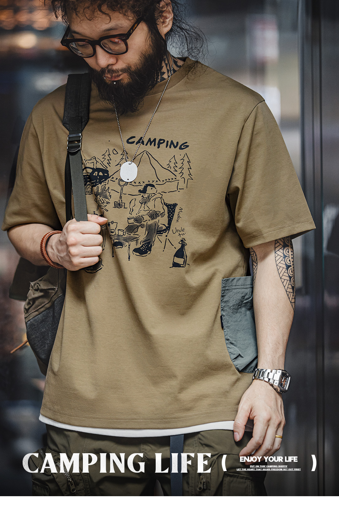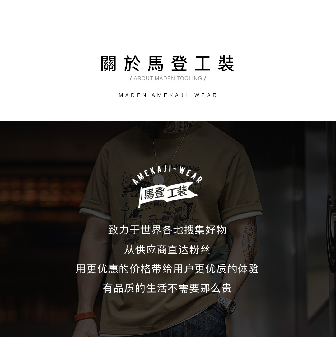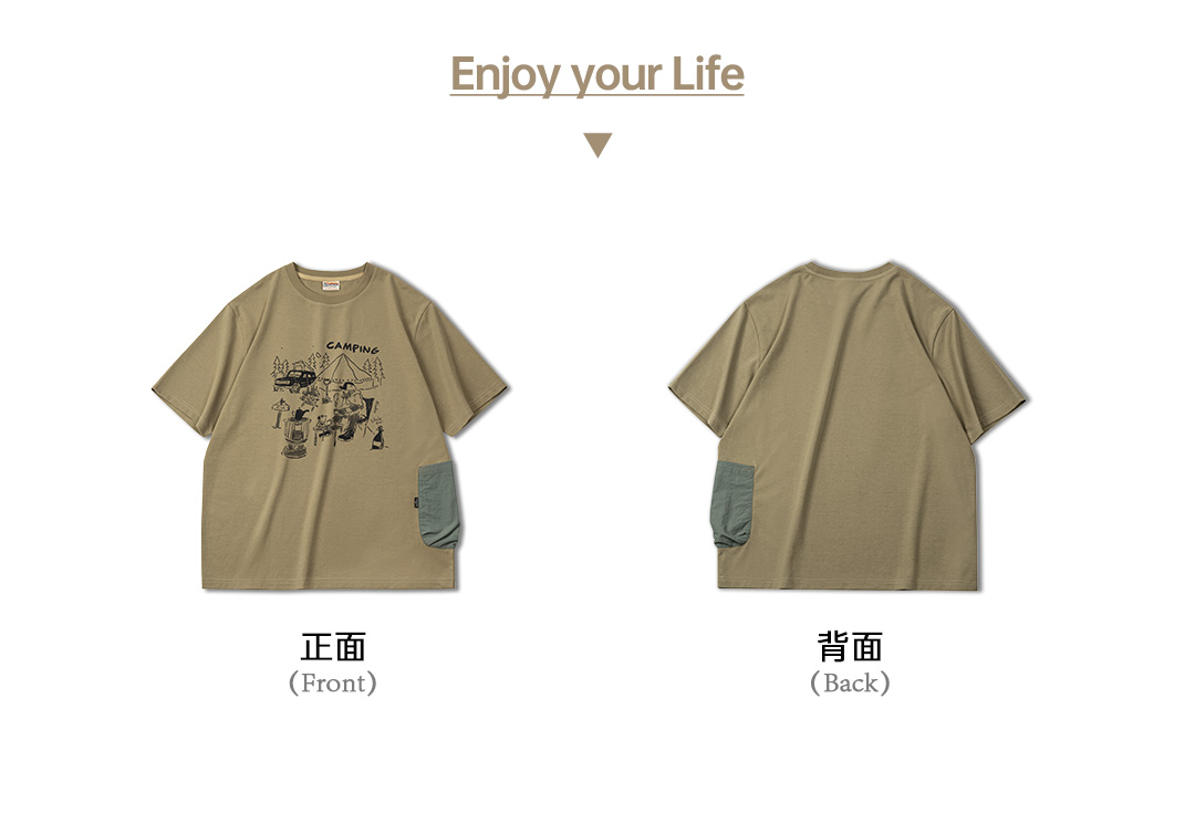 【露营手绘印花设计 军事风口袋 防泼耐磨】马登工装 山系户外趣味印花短袖T恤
