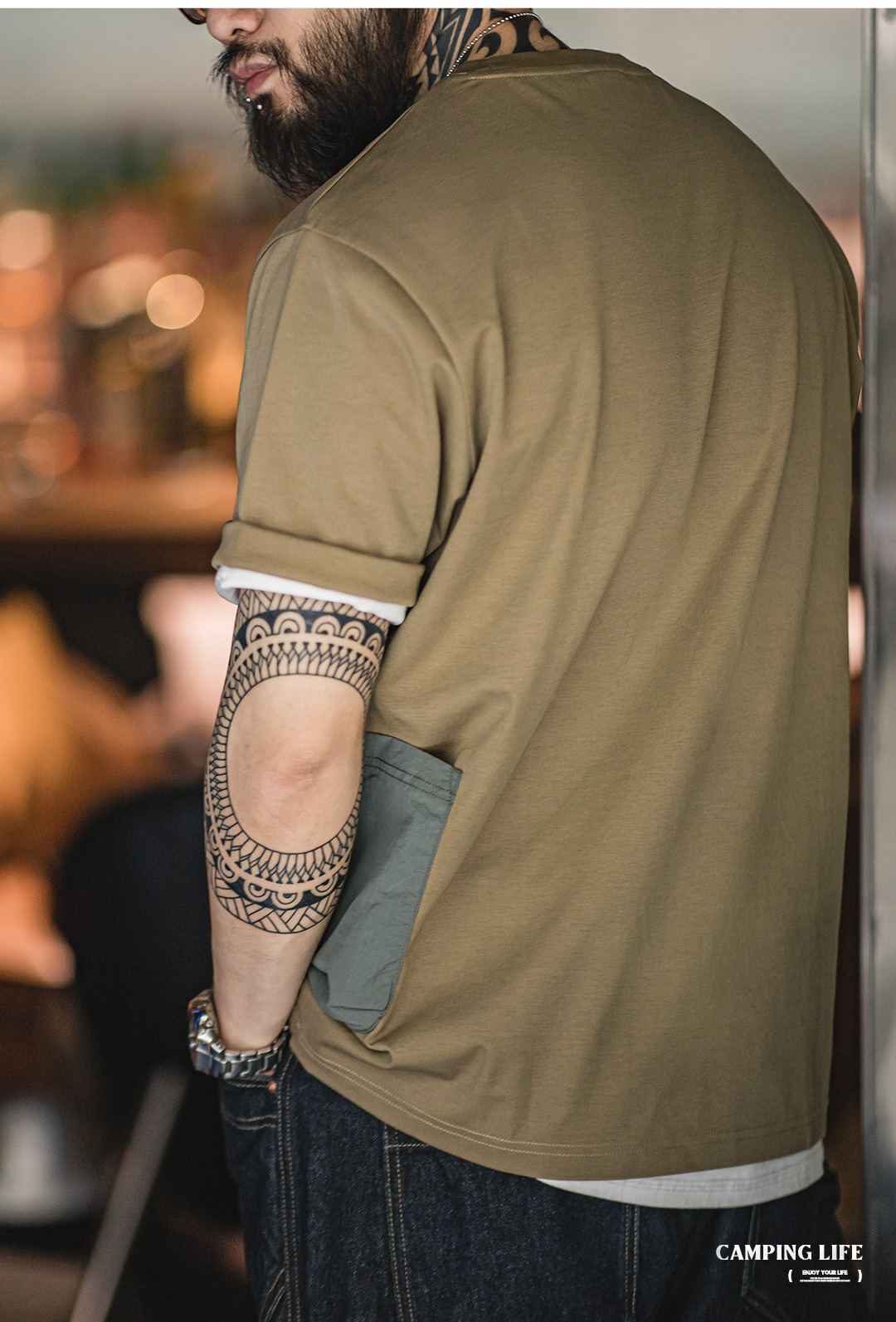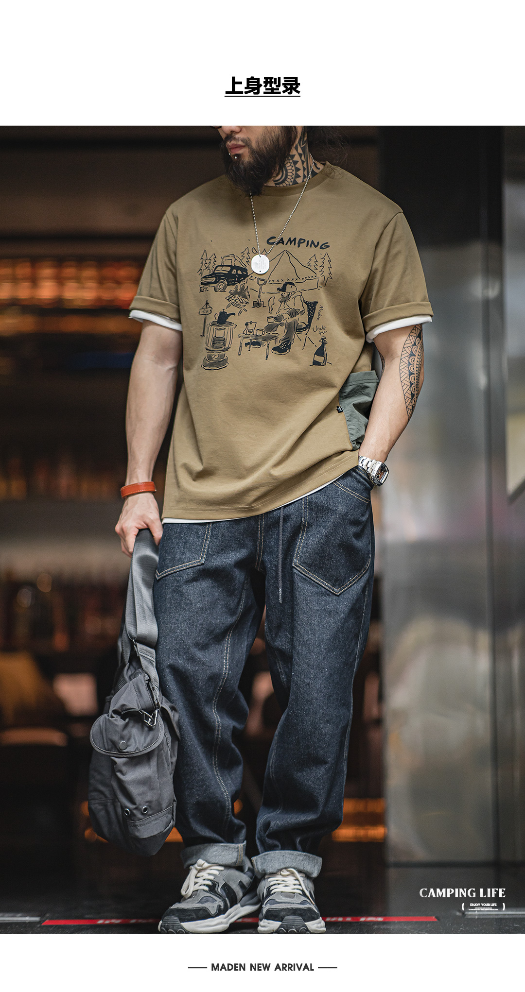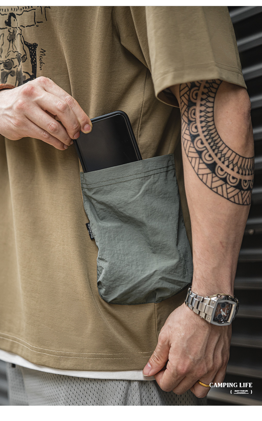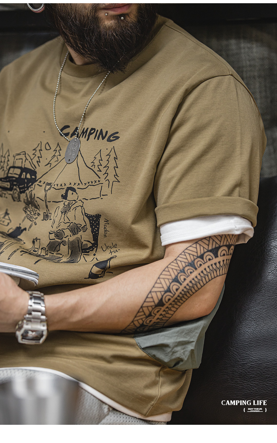 【露营手绘印花设计 军事风口袋 防泼耐磨】马登工装 山系户外趣味印花短袖T恤