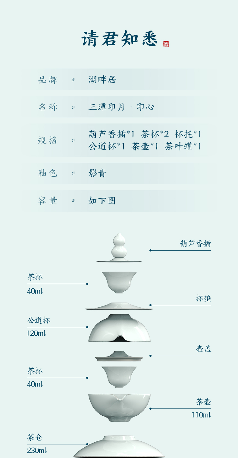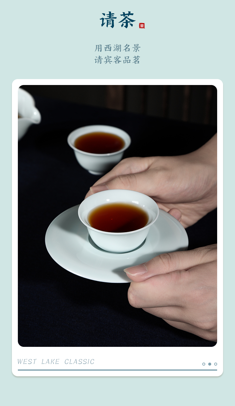 湖畔居西湖三潭印月青瓷茶具套装功夫茶具送礼套装