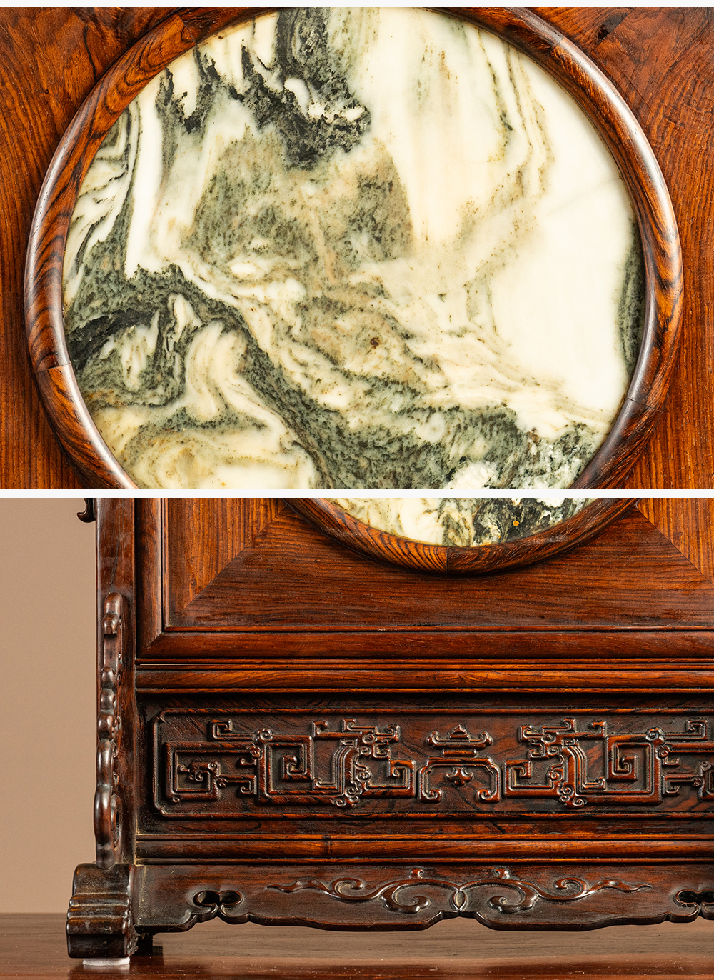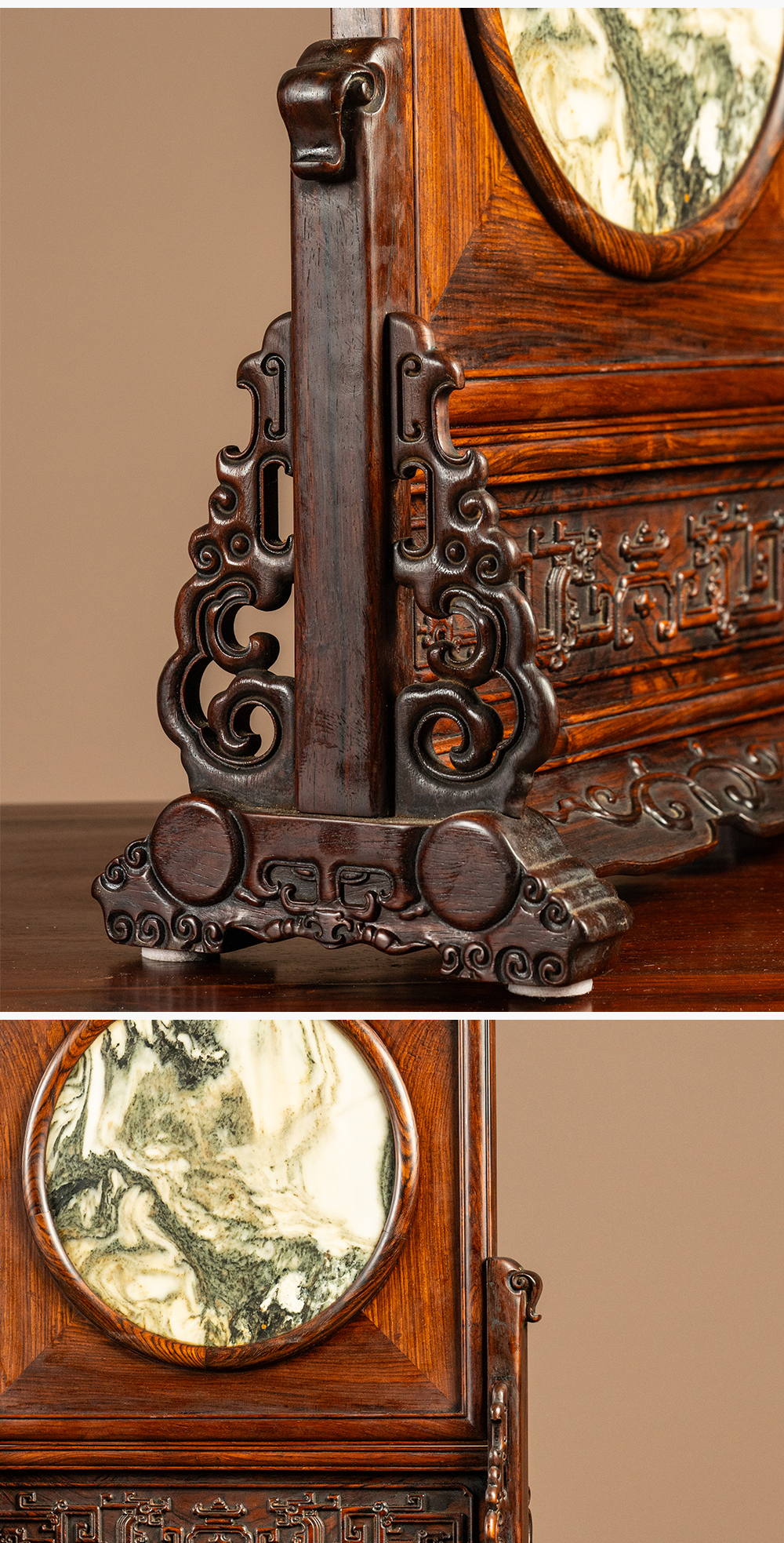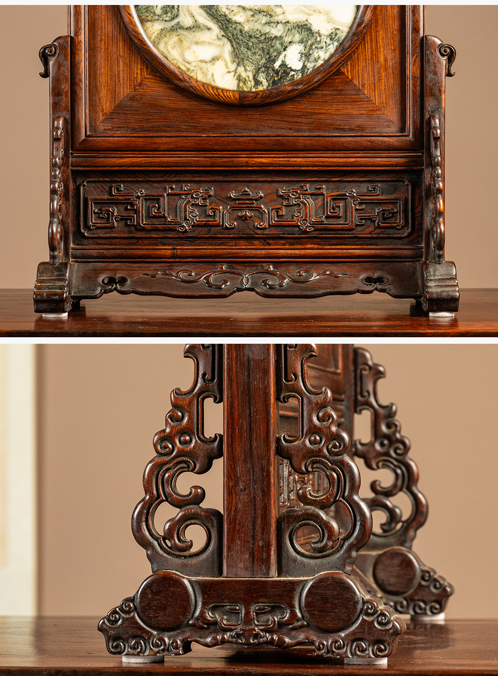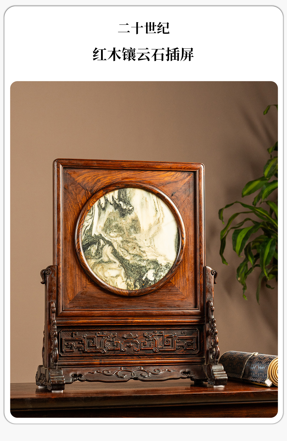二十世纪 红木镶云石插屏